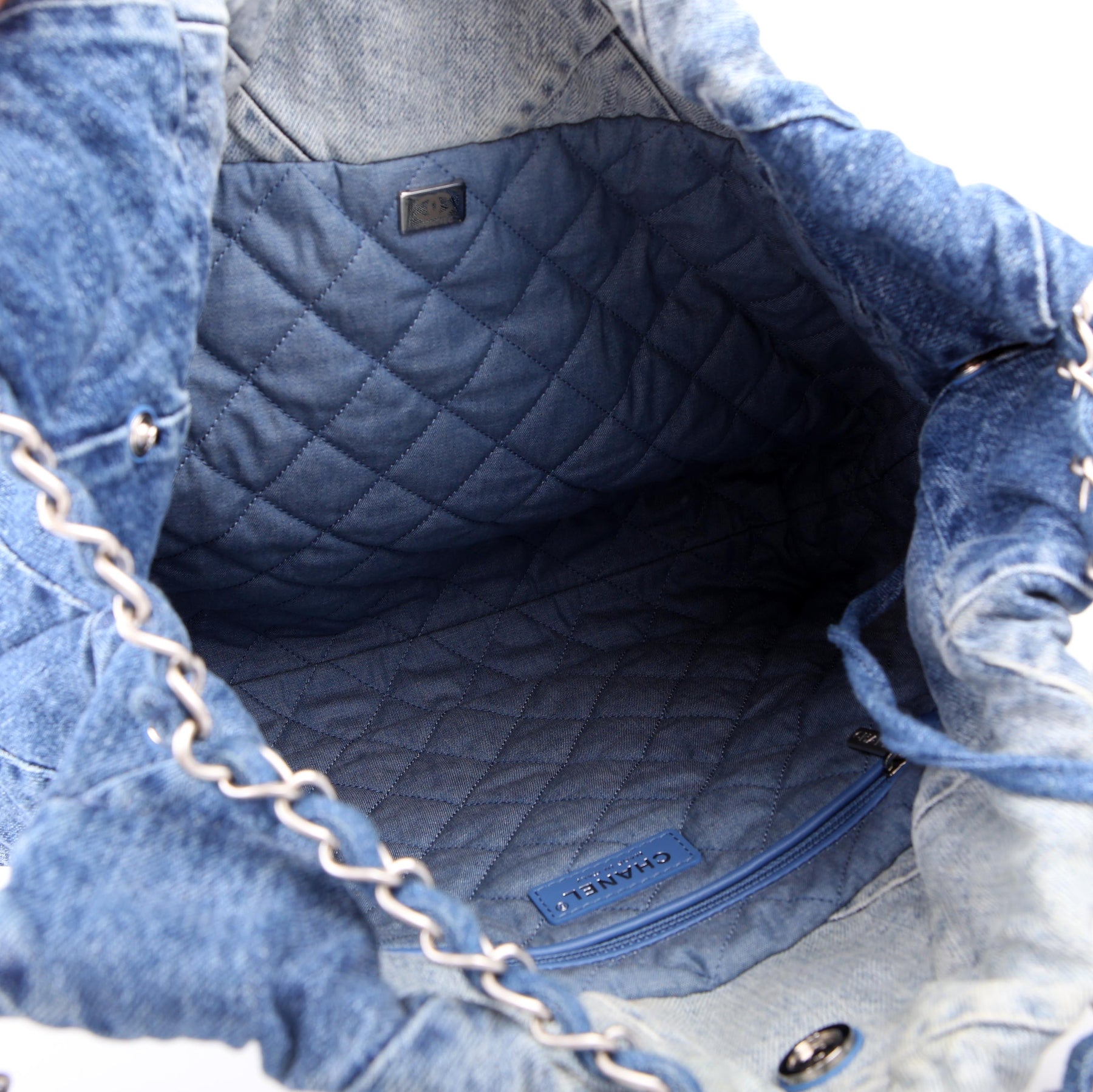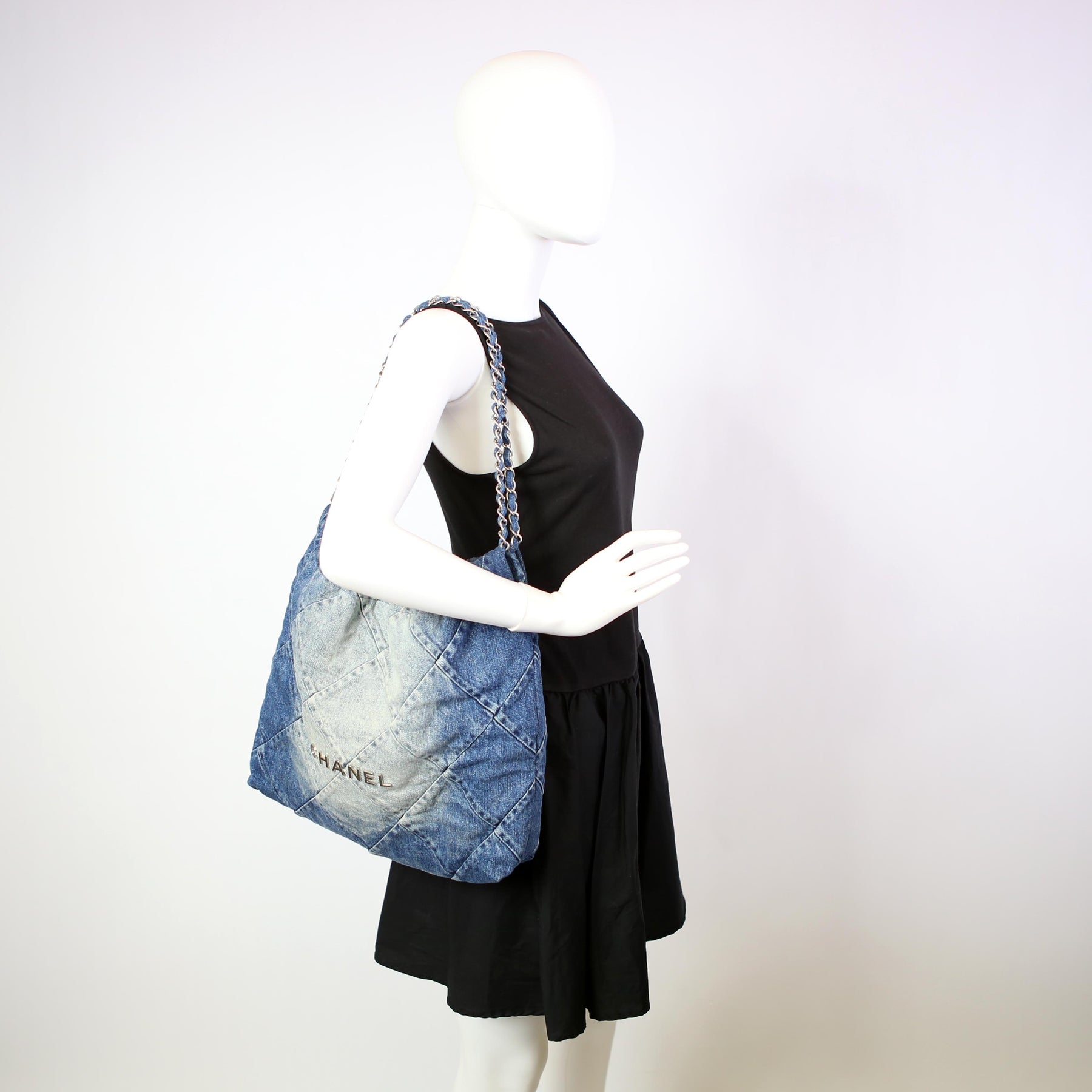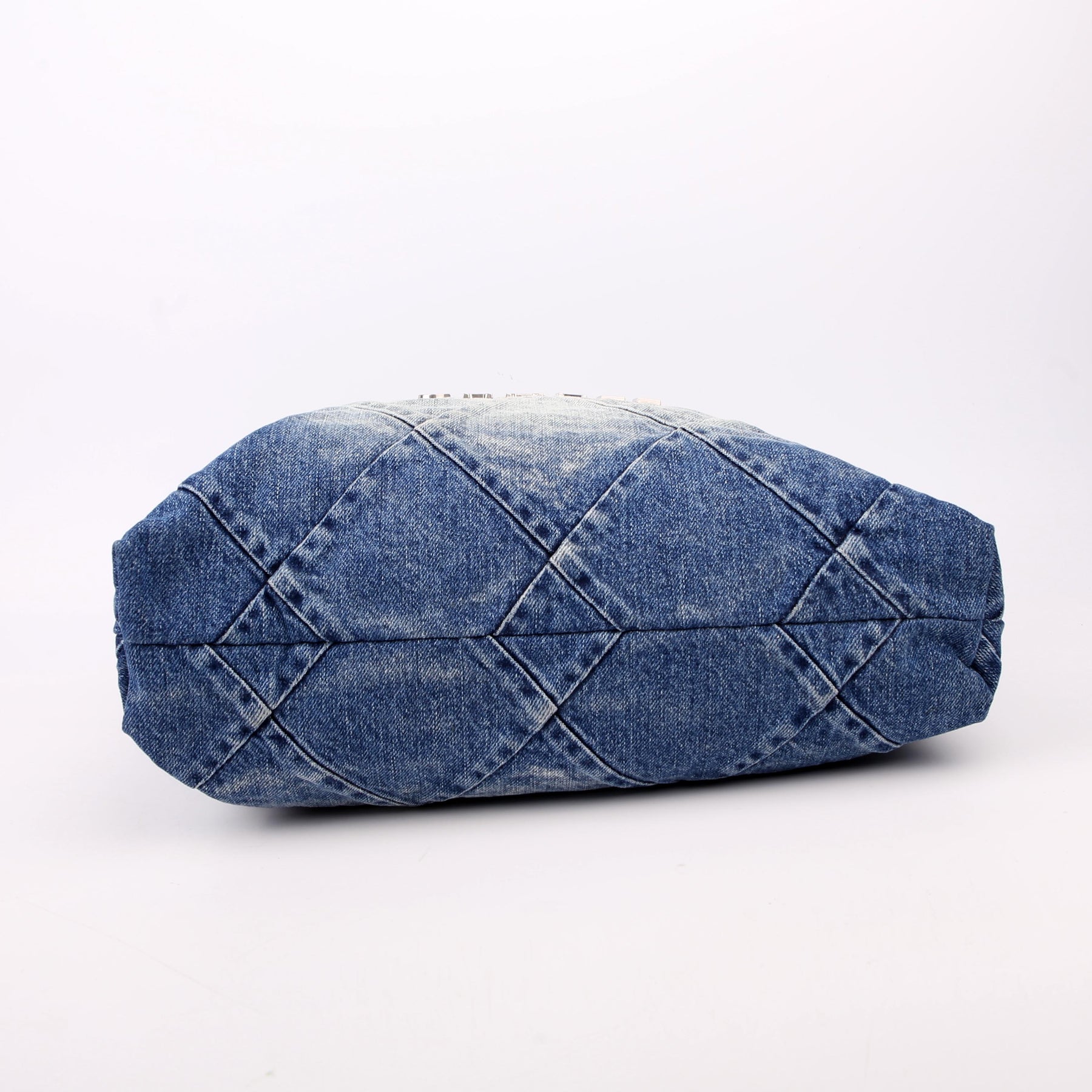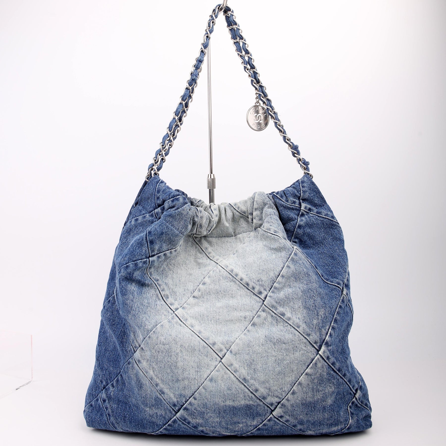 This pre-owned Chanel 22 Quilted Denim Hobo is guaranteed 100% authentic.