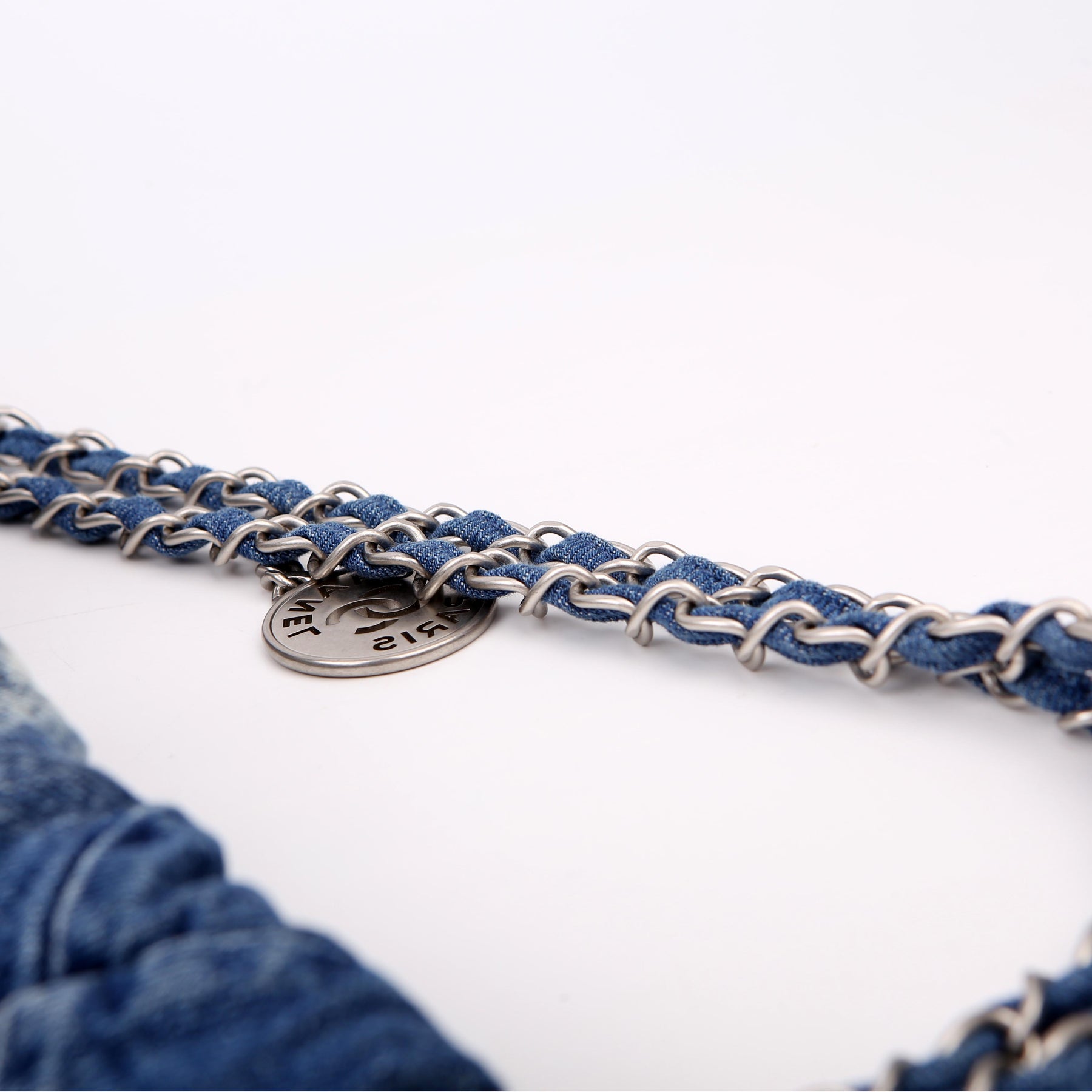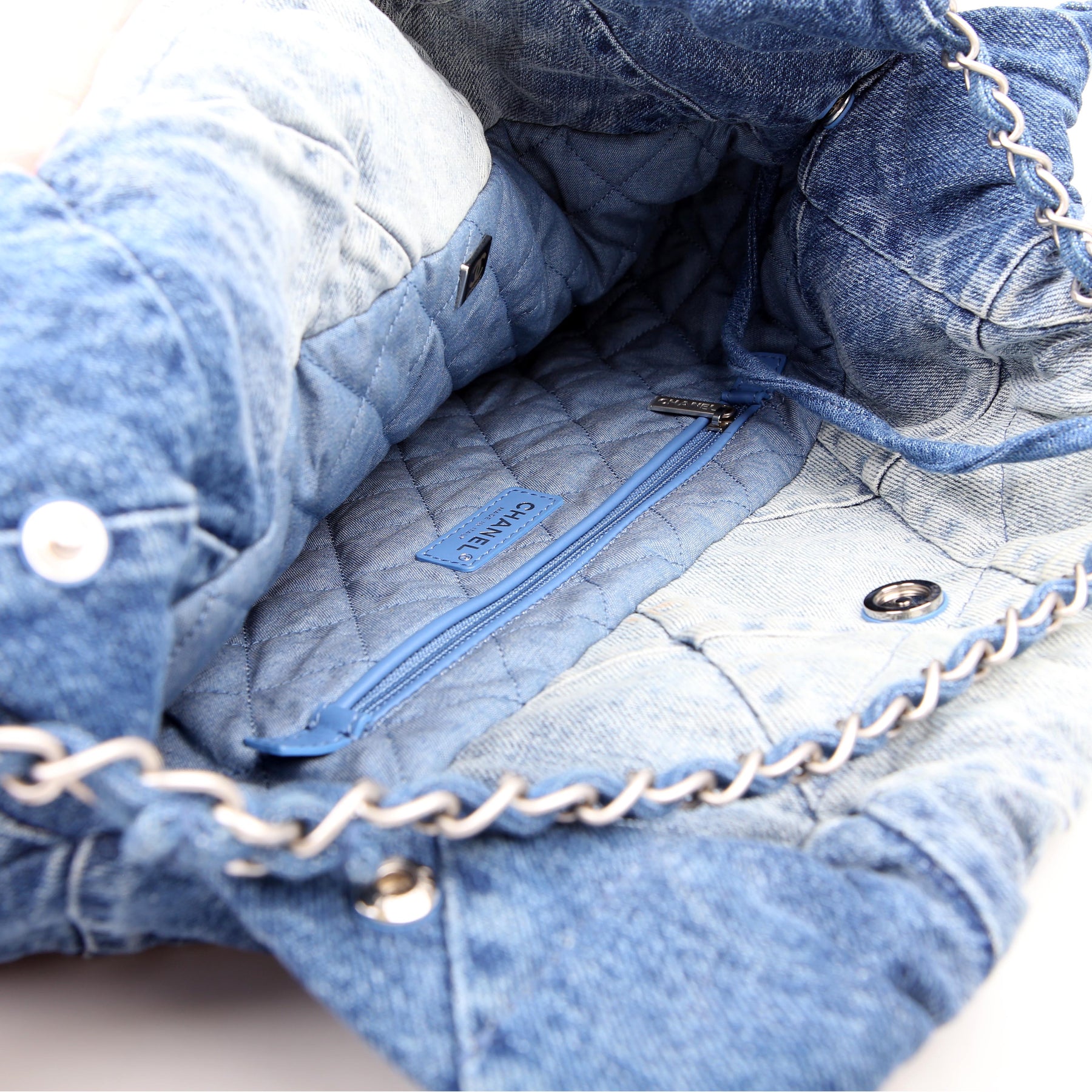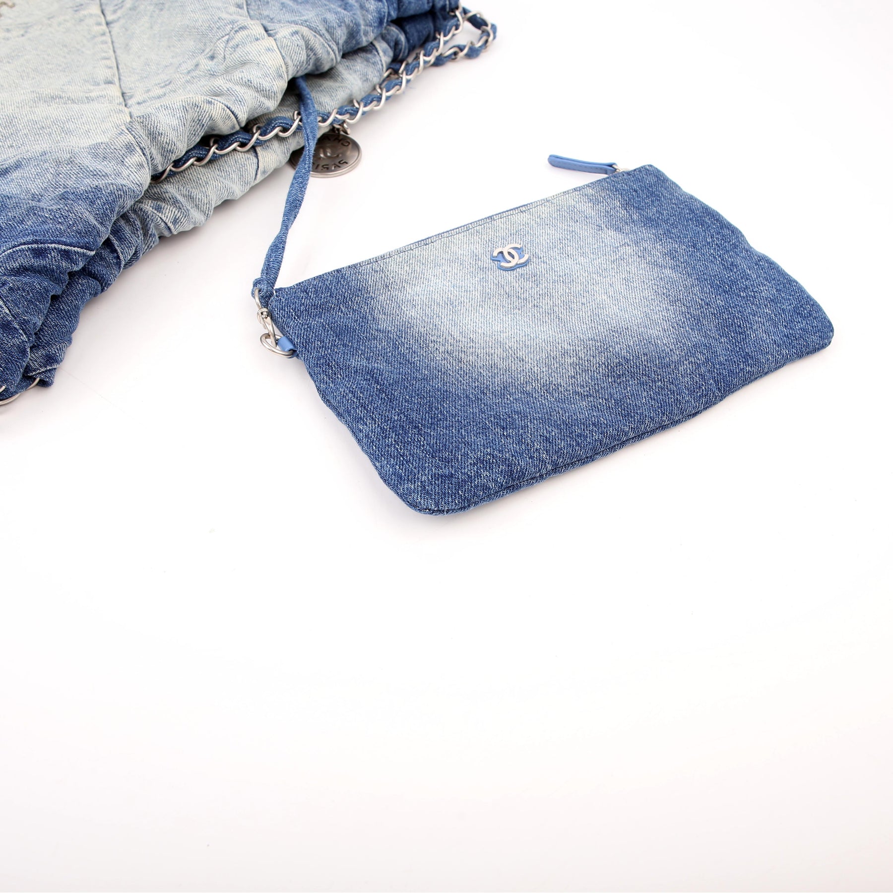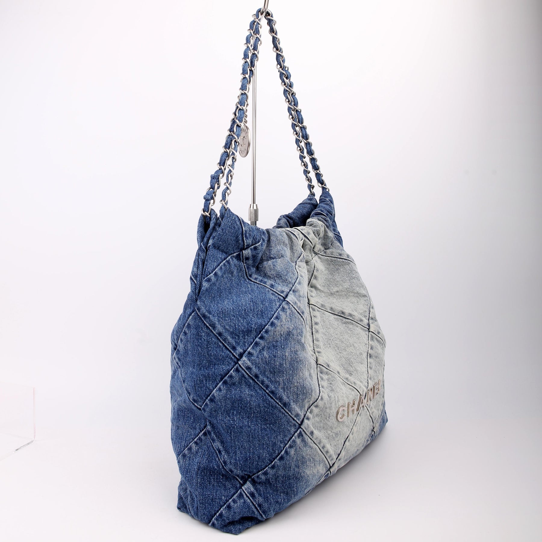 This pre-owned Chanel 22 Quilted Denim Hobo is guaranteed 100% authentic.