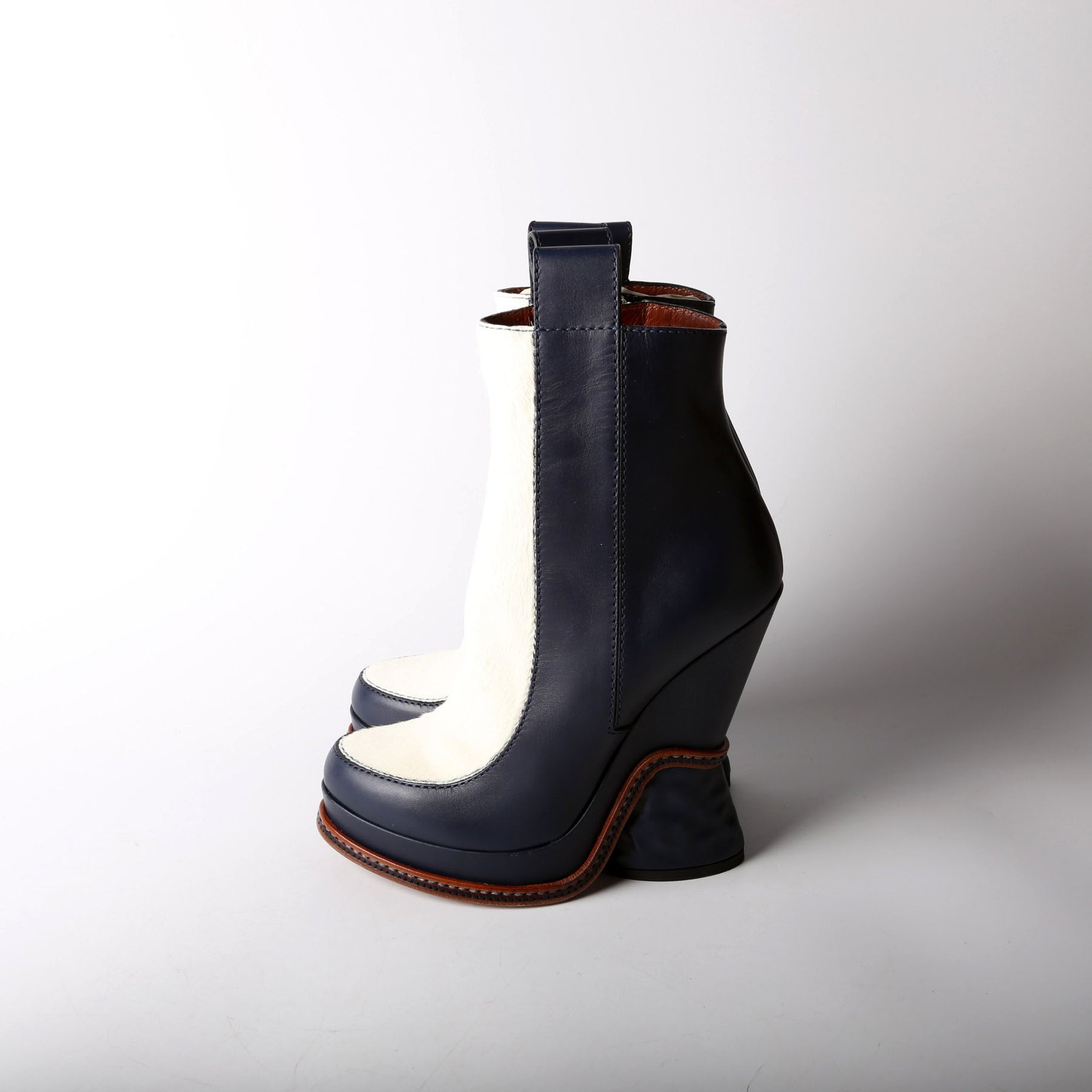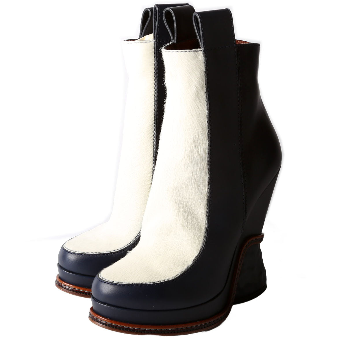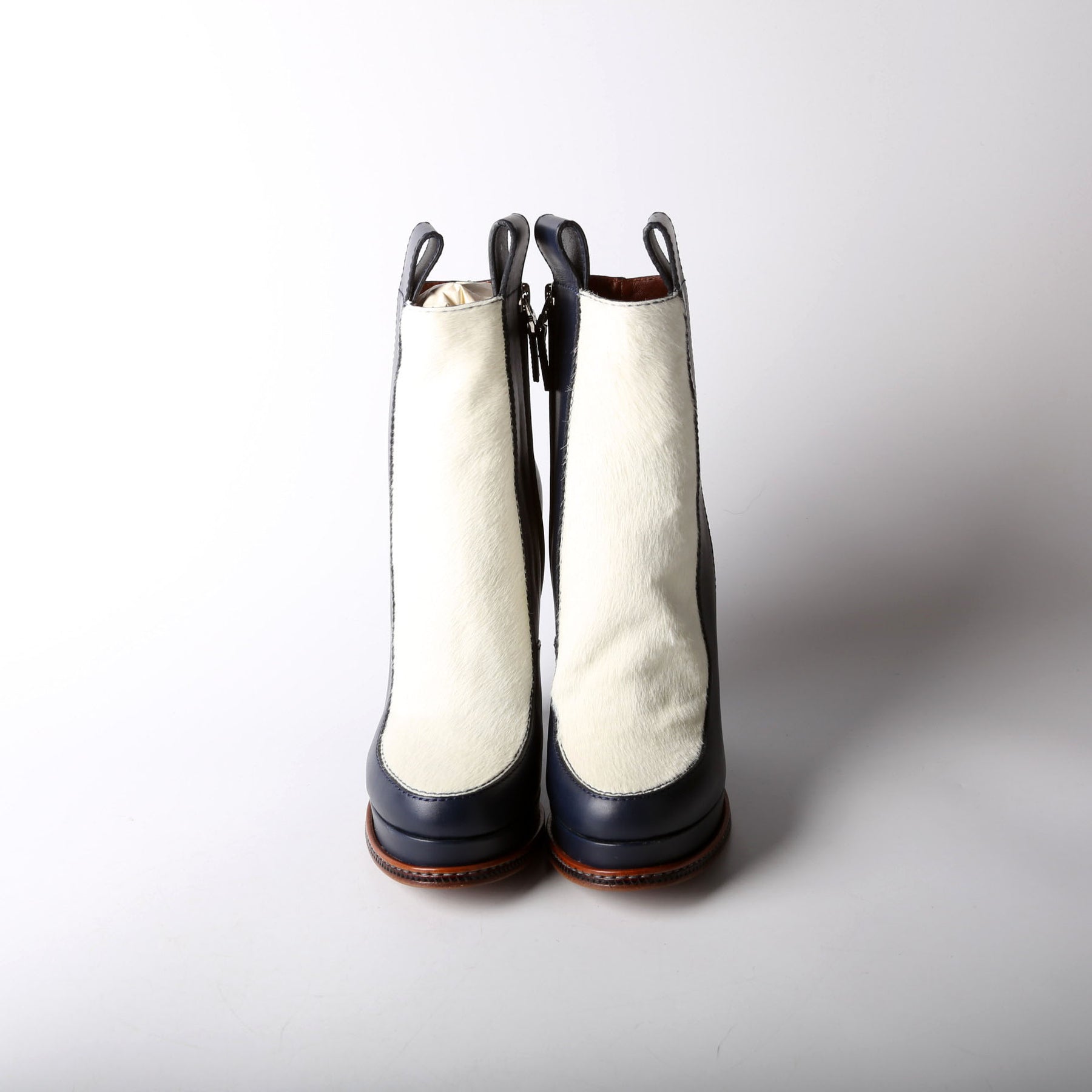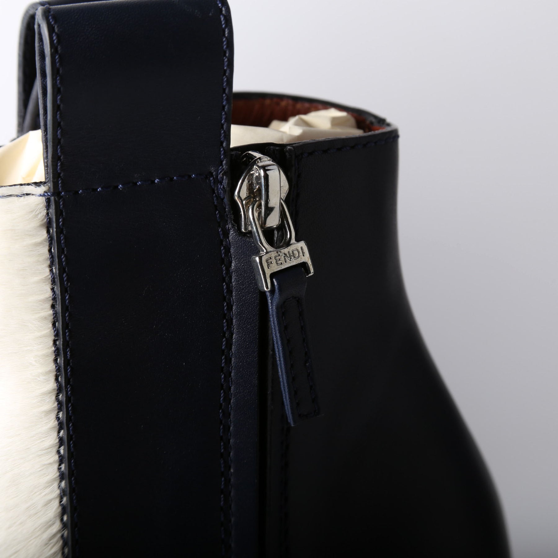 Color: Navy Blue Calfskin and White Fur