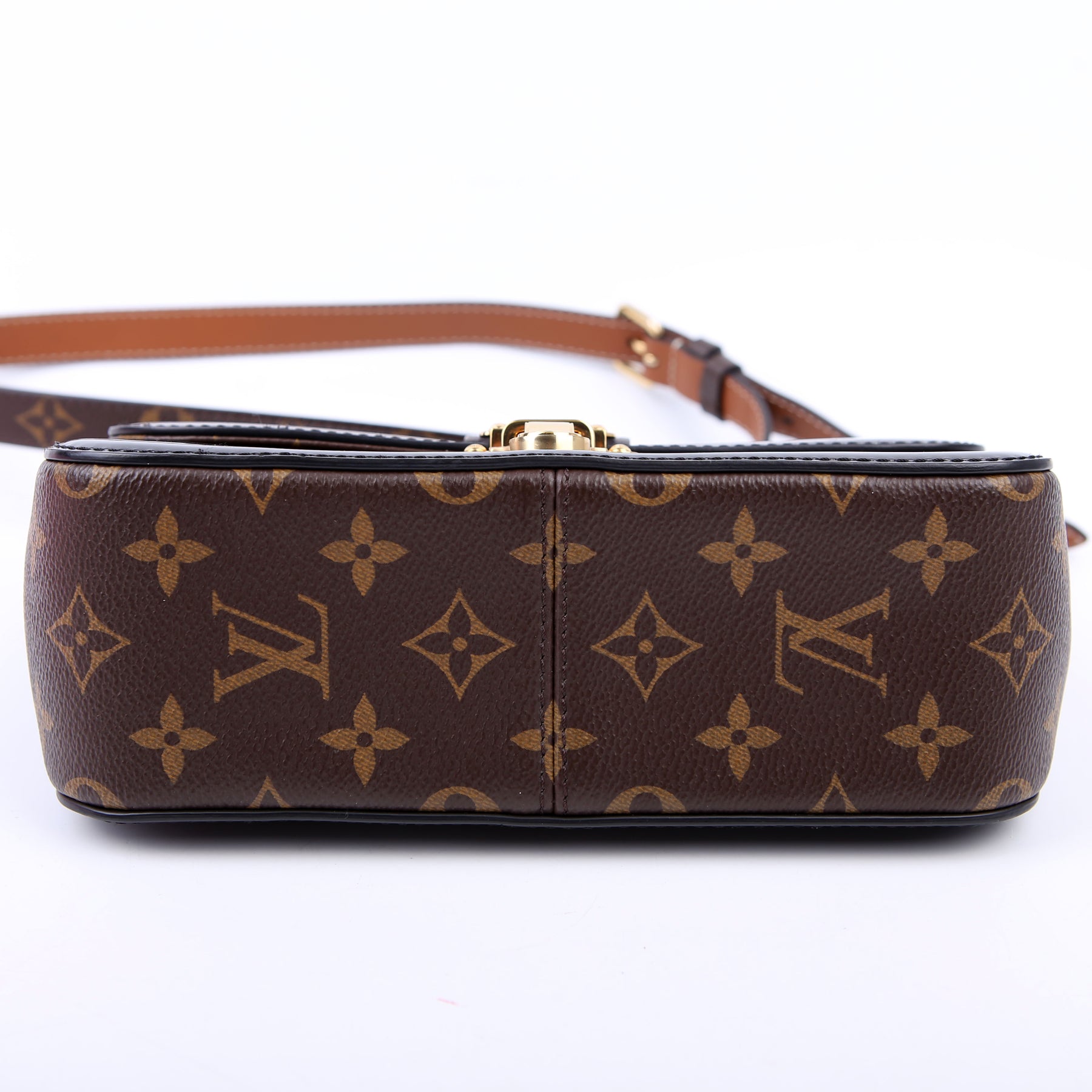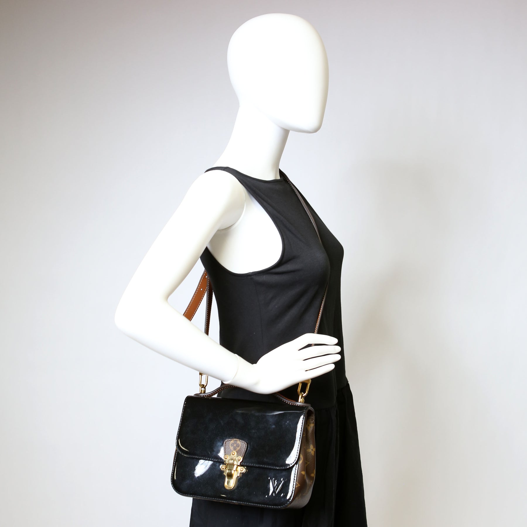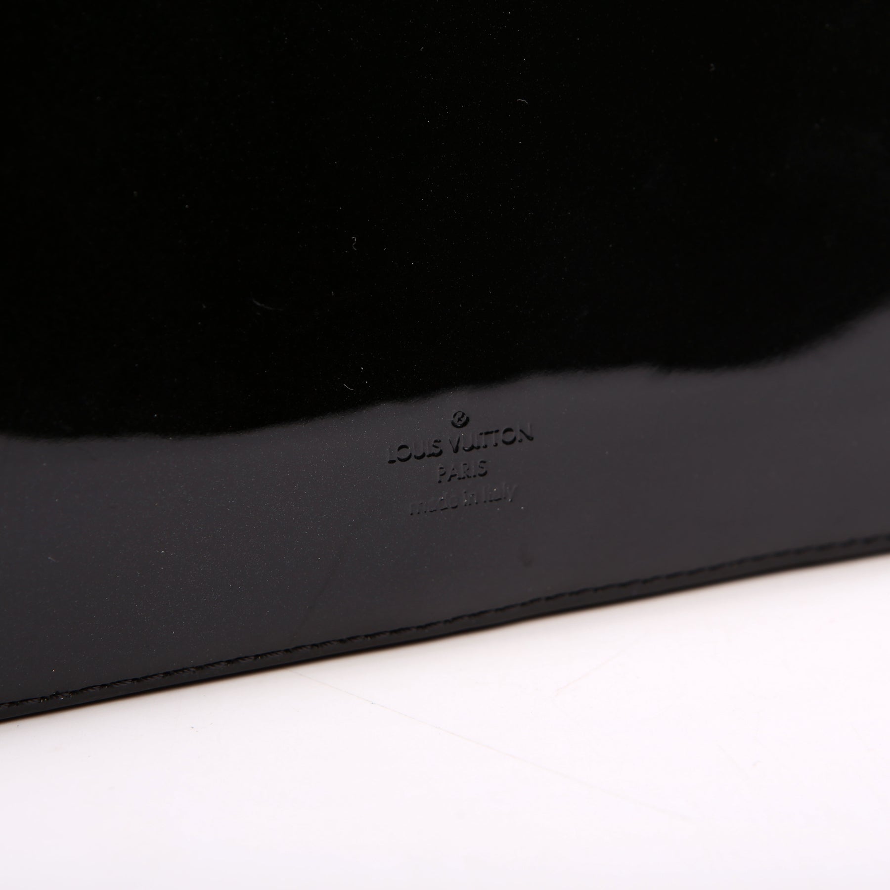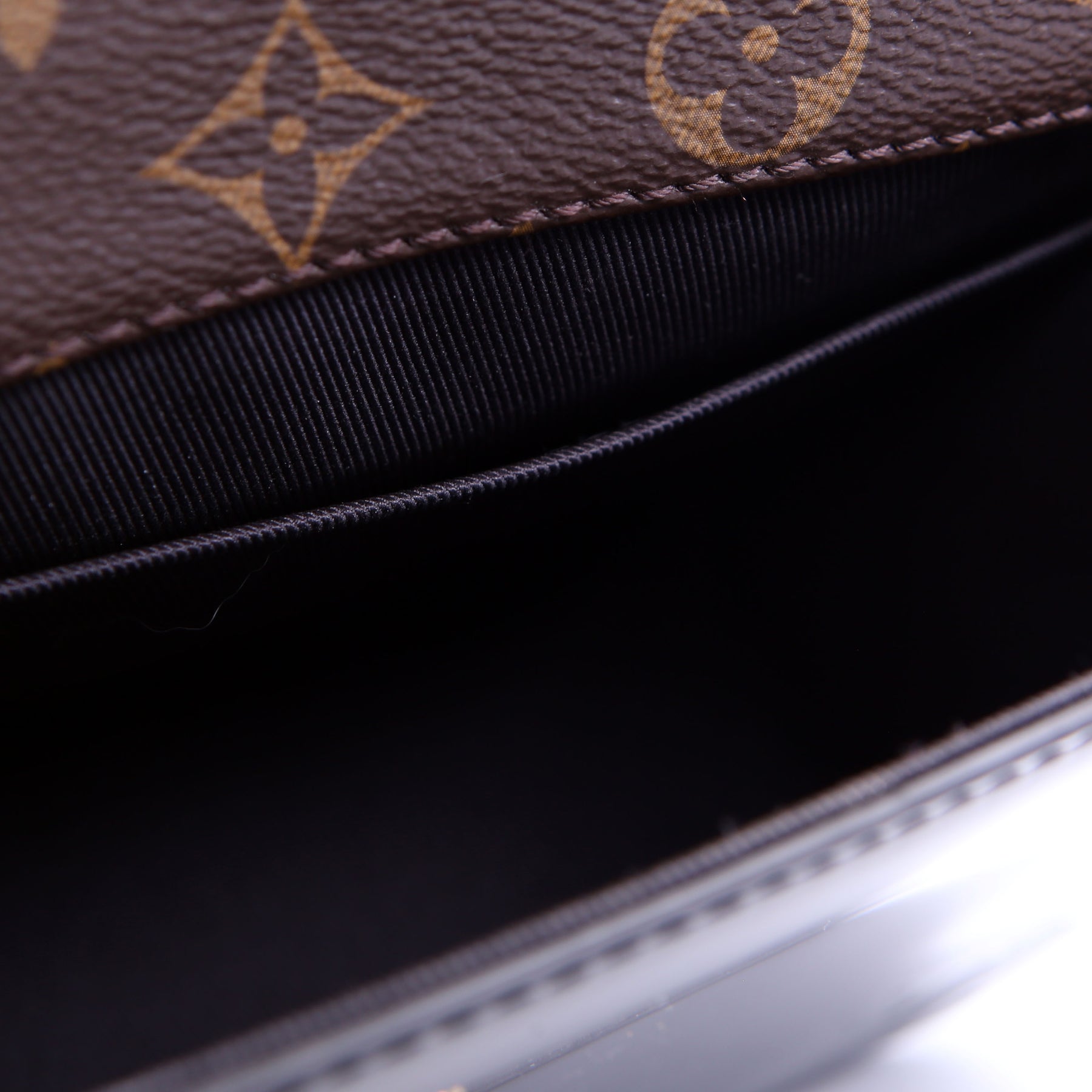 This pre-owned Louis Vuitton Cherrywood BB is guaranteed 100% authentic. The exterior is in the classic Louis Vuitton patent leather and monogram coated canvas.
