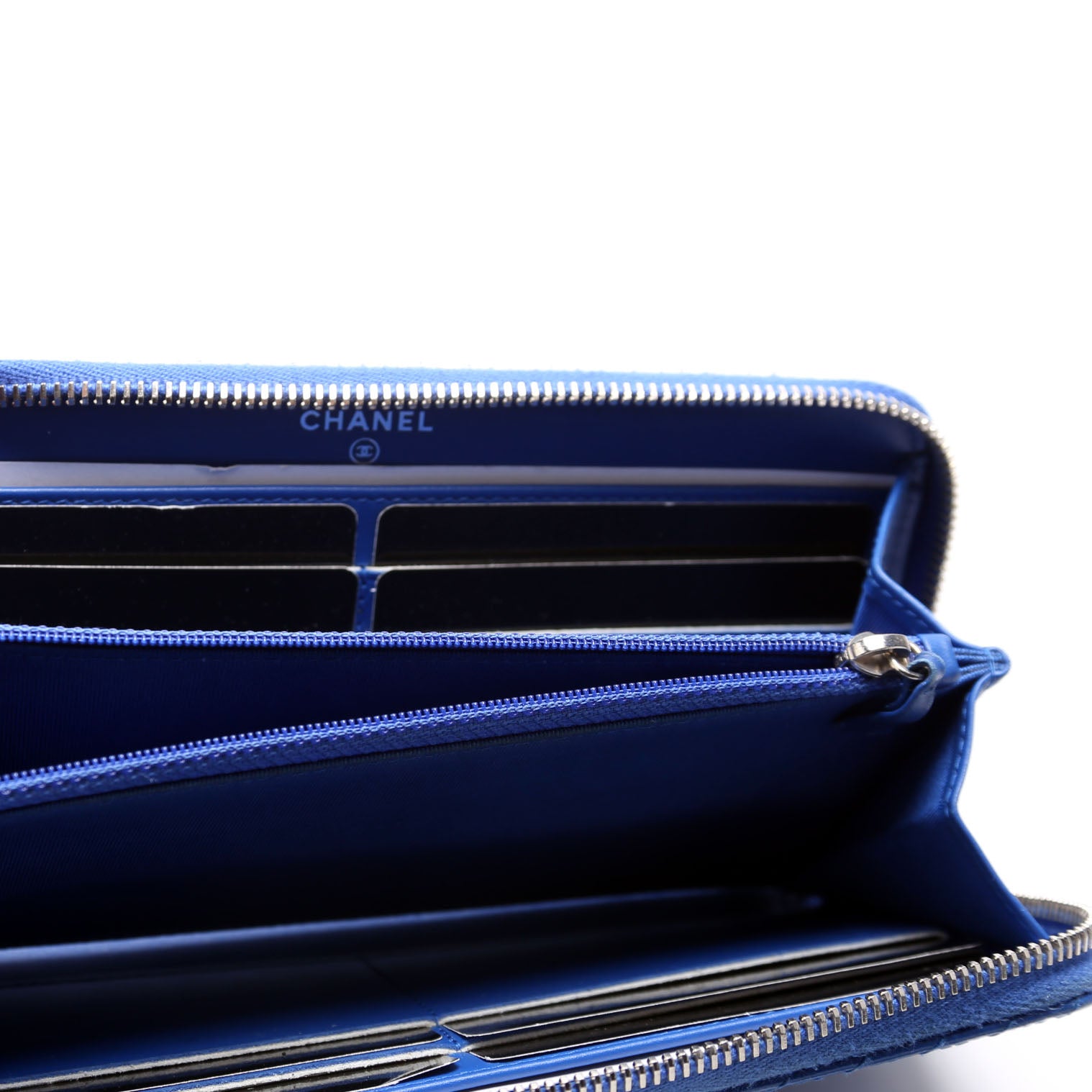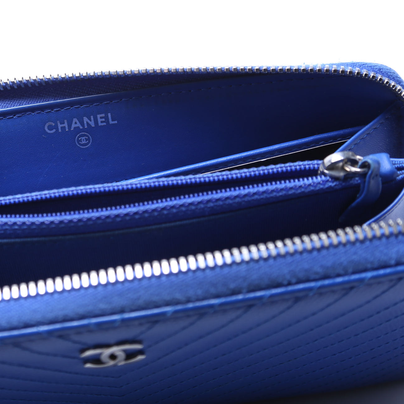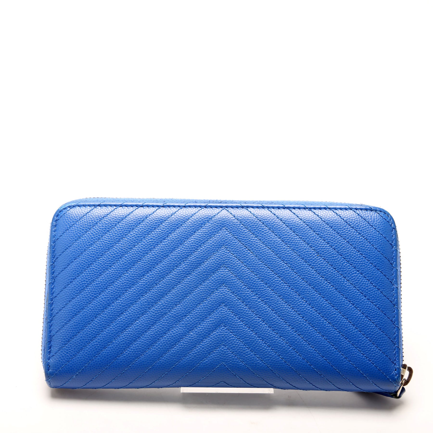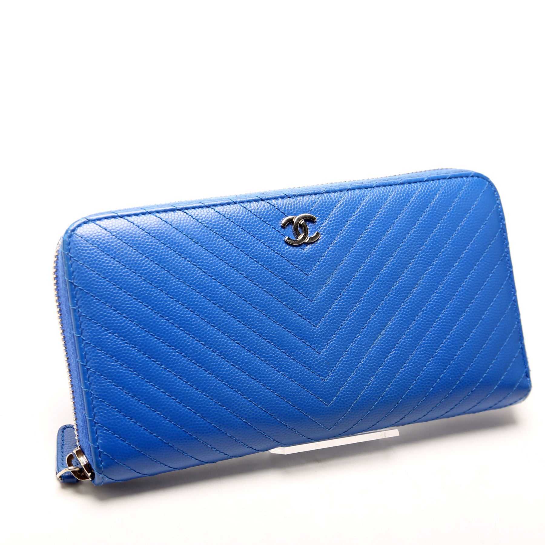 This pre-owned Chanel Chevron Zip Around Wallet is guaranteed 100% authentic. The exterior is in the classic Caviar leather.