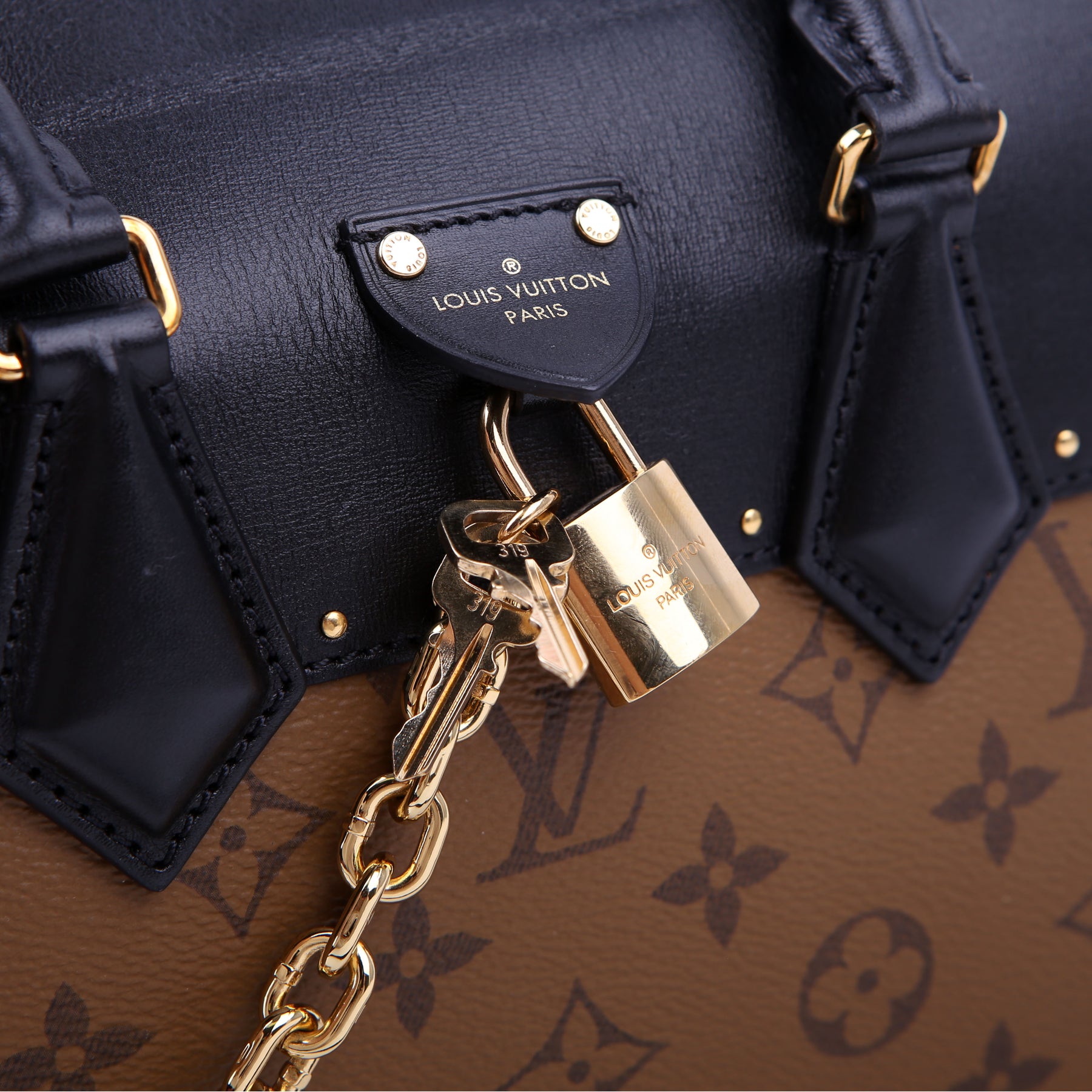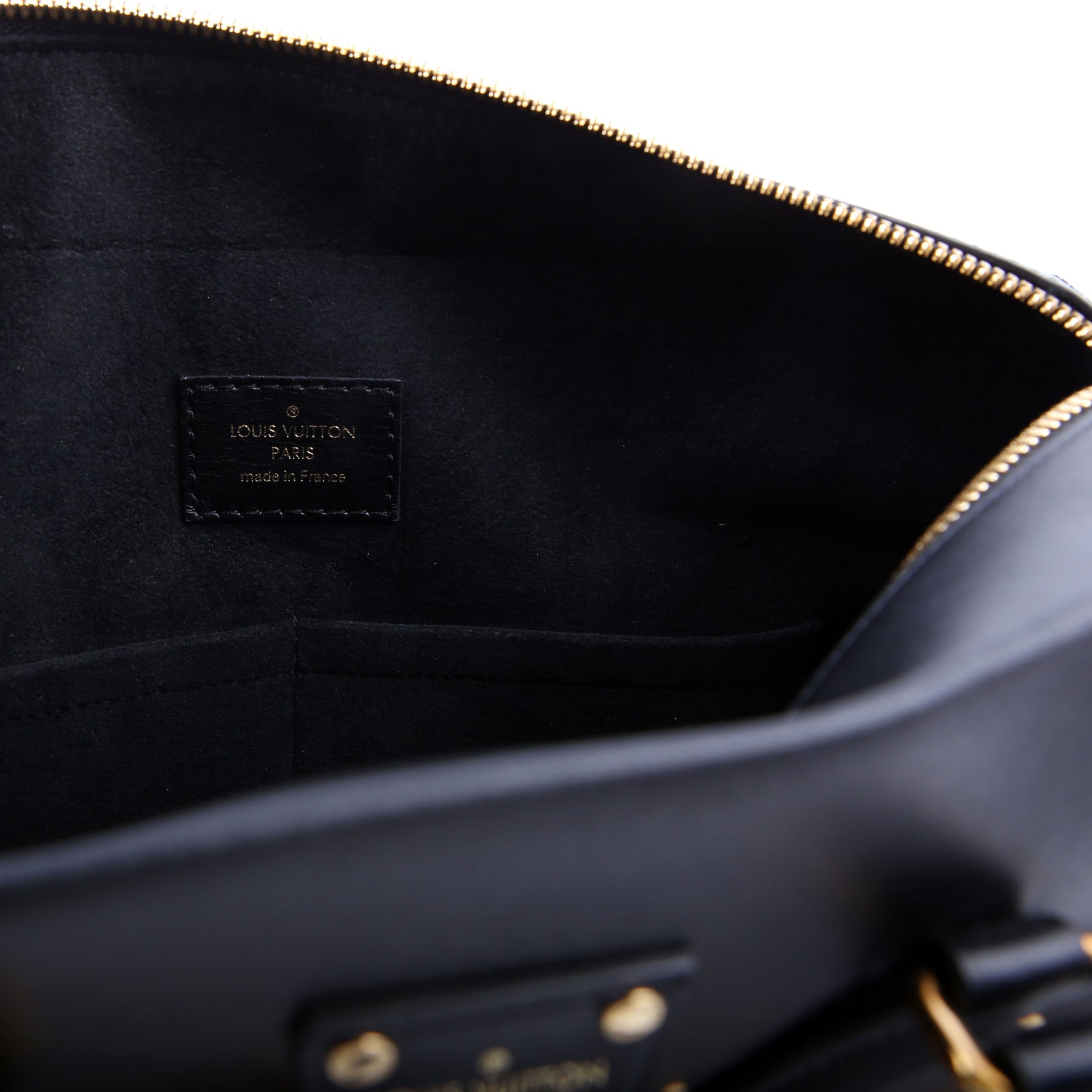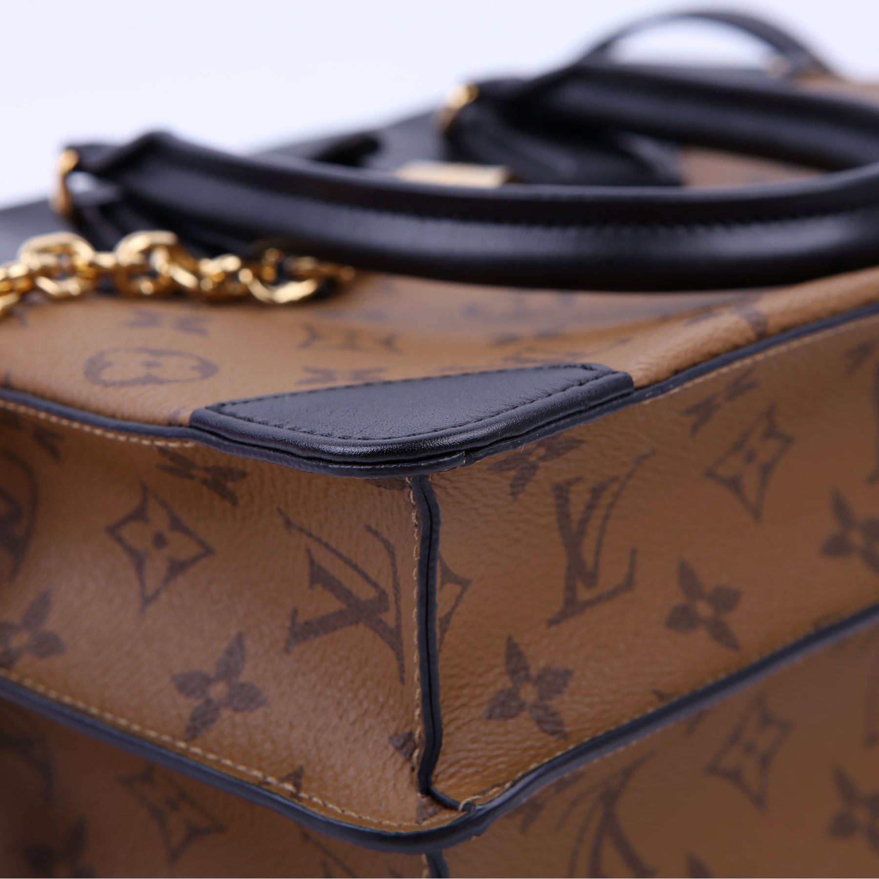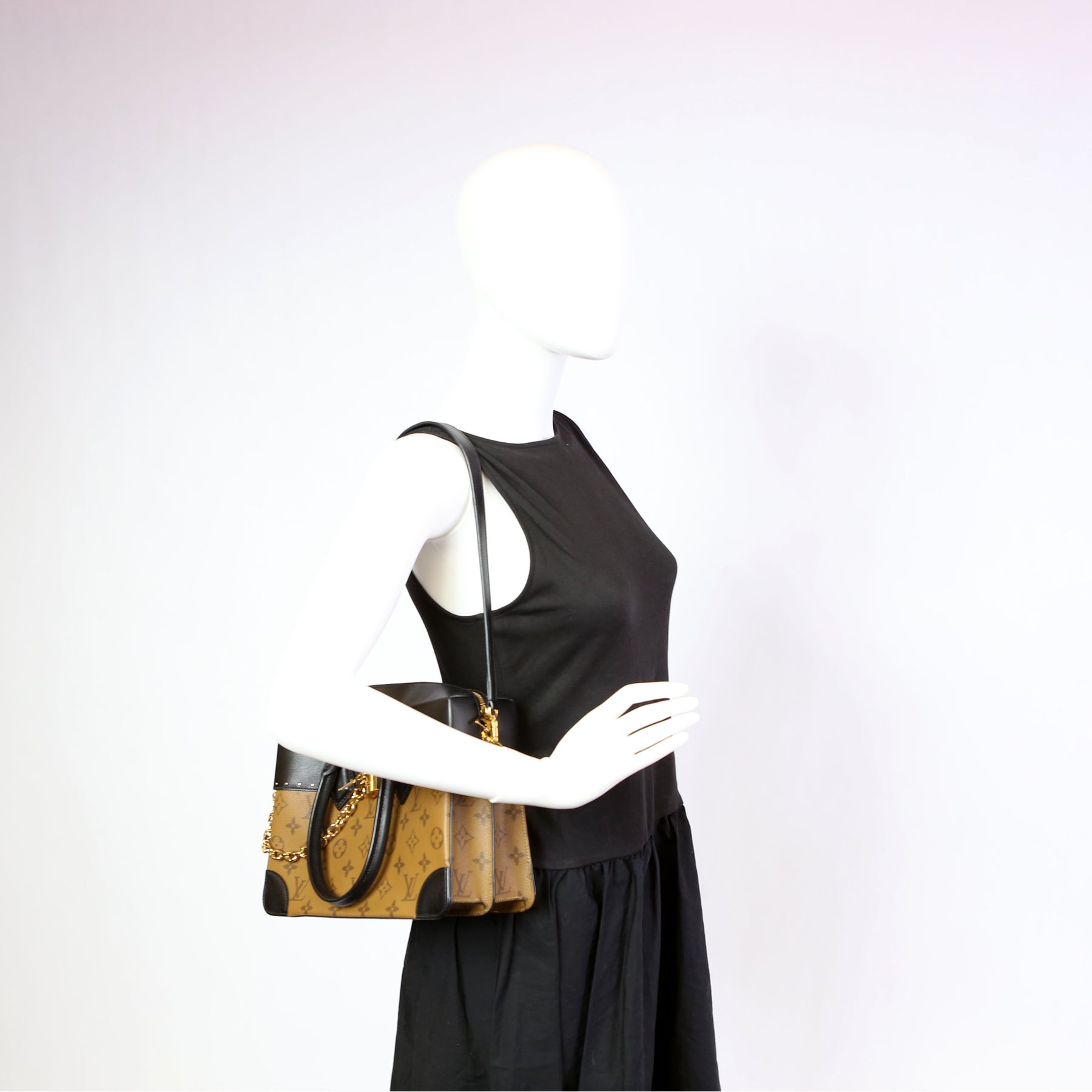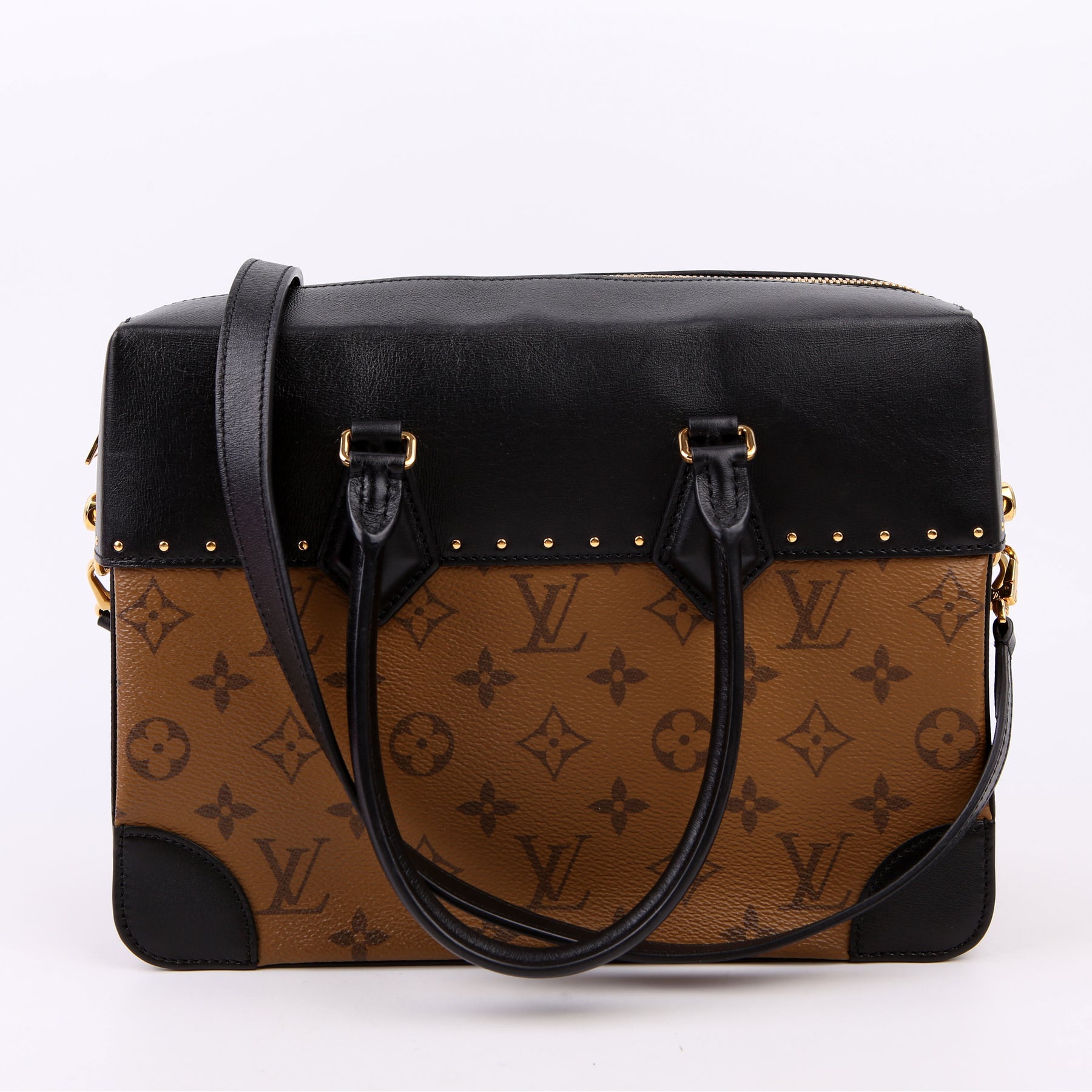 This pre-owned Louis Vuitton City Malle MM is guaranteed 100% authentic. The exterior is in the classic Louis Vuitton Reverse Monogram coated canvas.