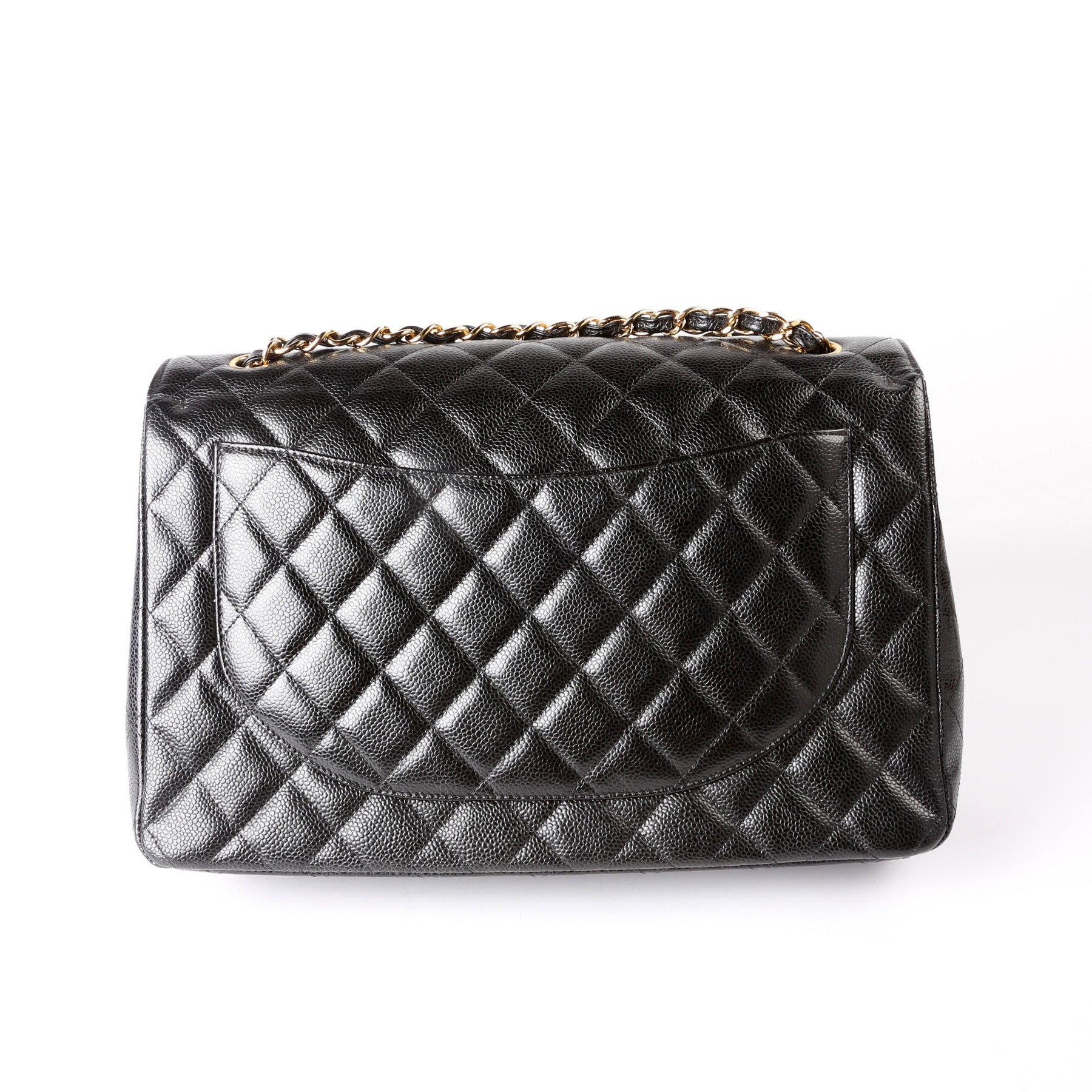 This pre-owned Chanel Classic Flap Max Caviar 14M-16M is guaranteed 100% authentic. The exterior is in the classic Chanel caviar leather.