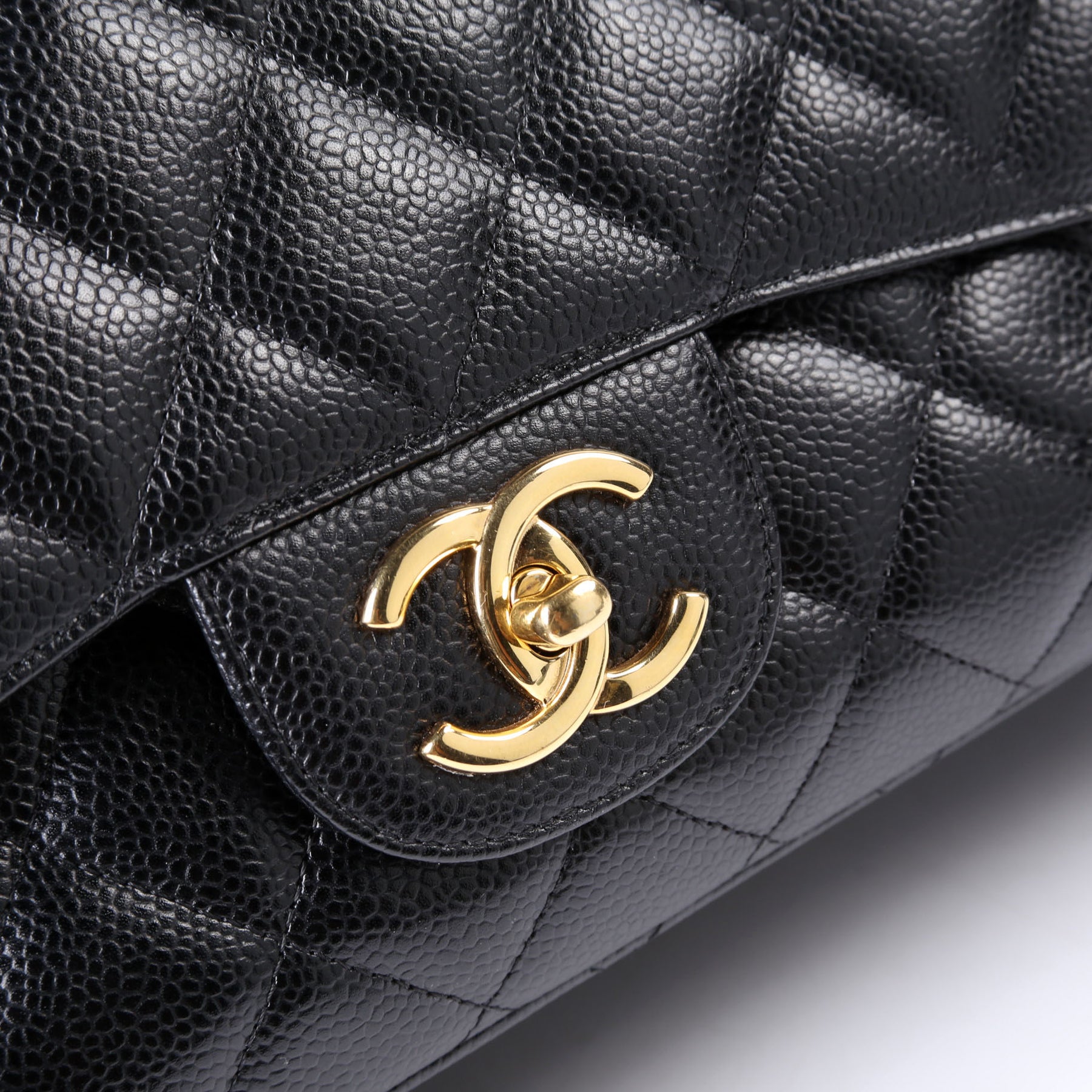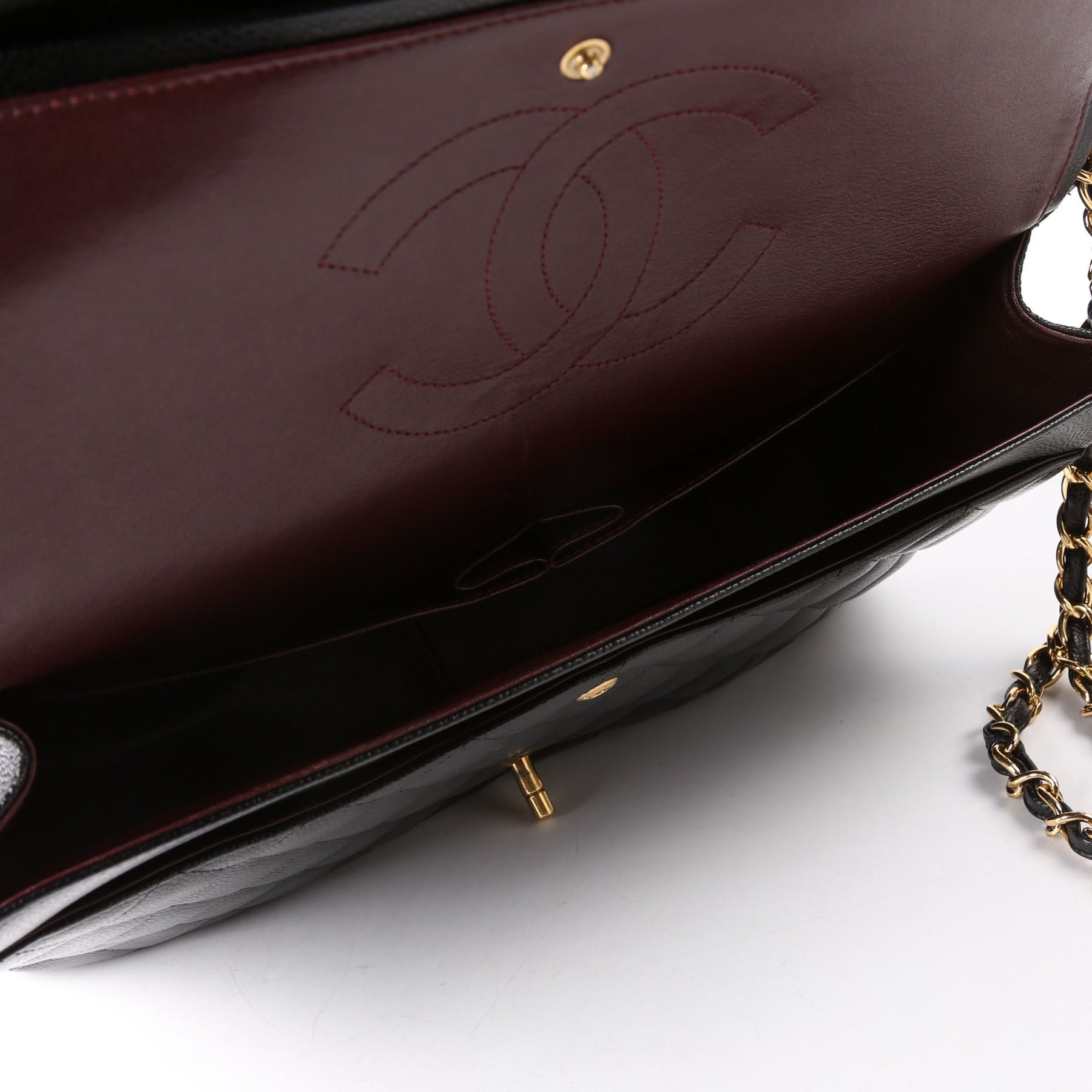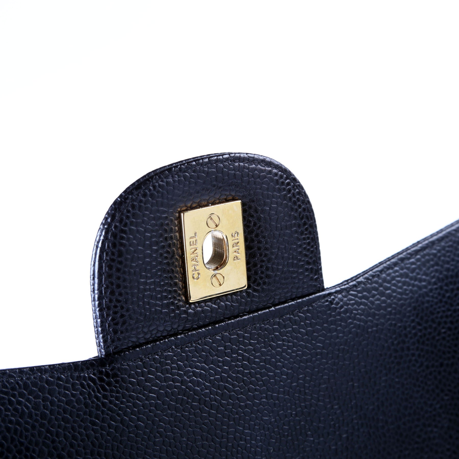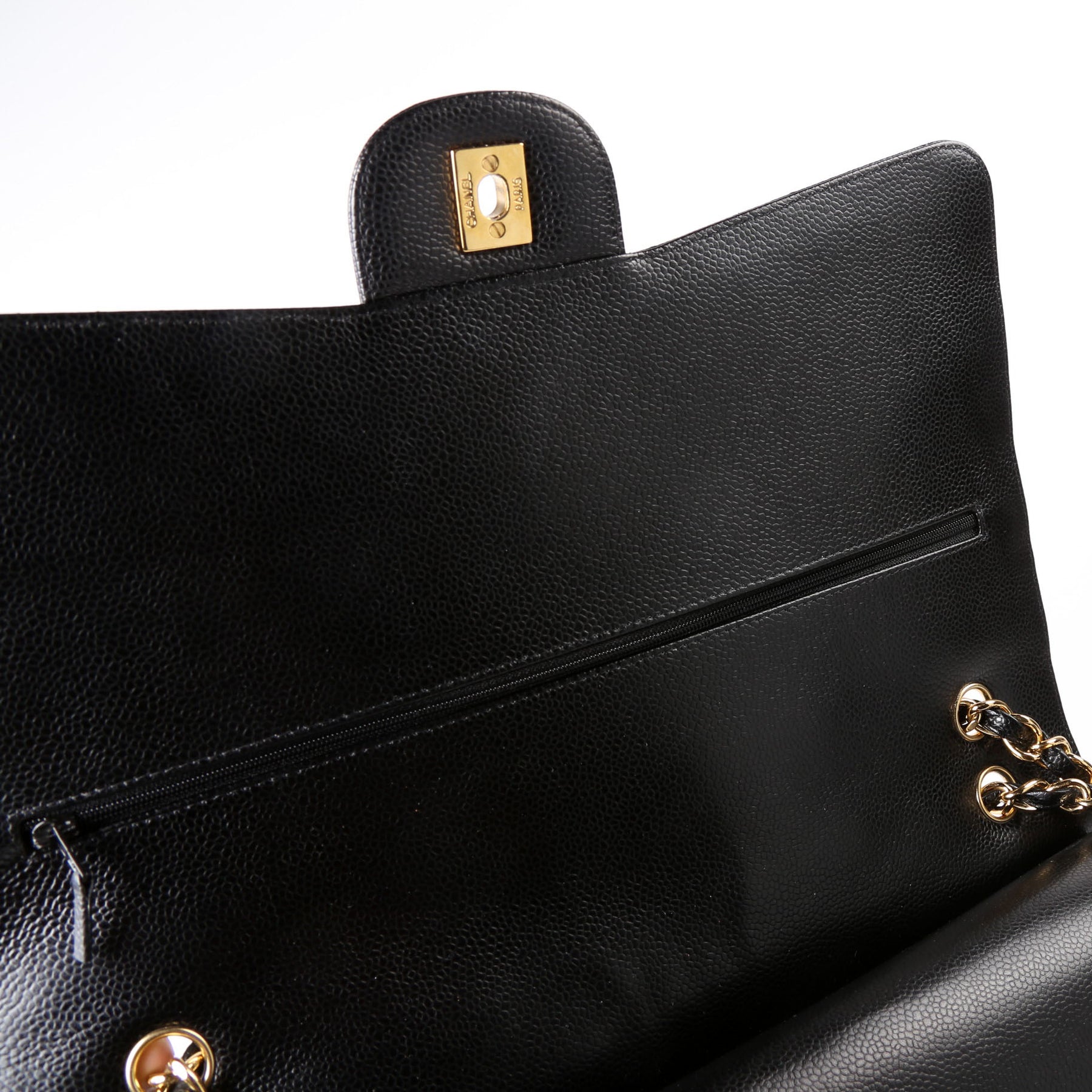 This pre-owned Chanel Classic Flap Max Caviar 14M-16M is guaranteed 100% authentic. The exterior is in the classic Chanel caviar leather.