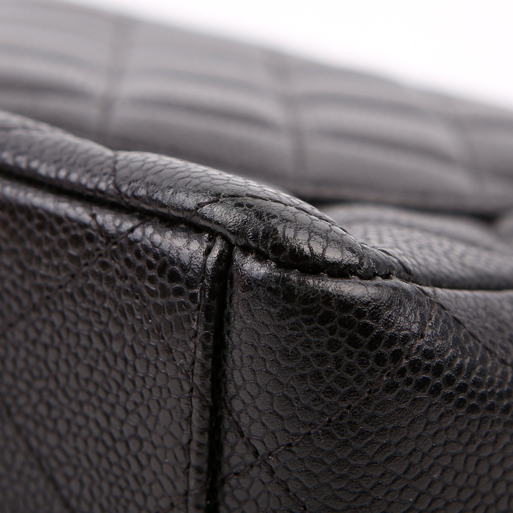 This pre-owned Chanel Classic Flap Maxi Shoulder Bag is guaranteed 100% authentic. The exterior is in the classic Chanel Caviar leather.