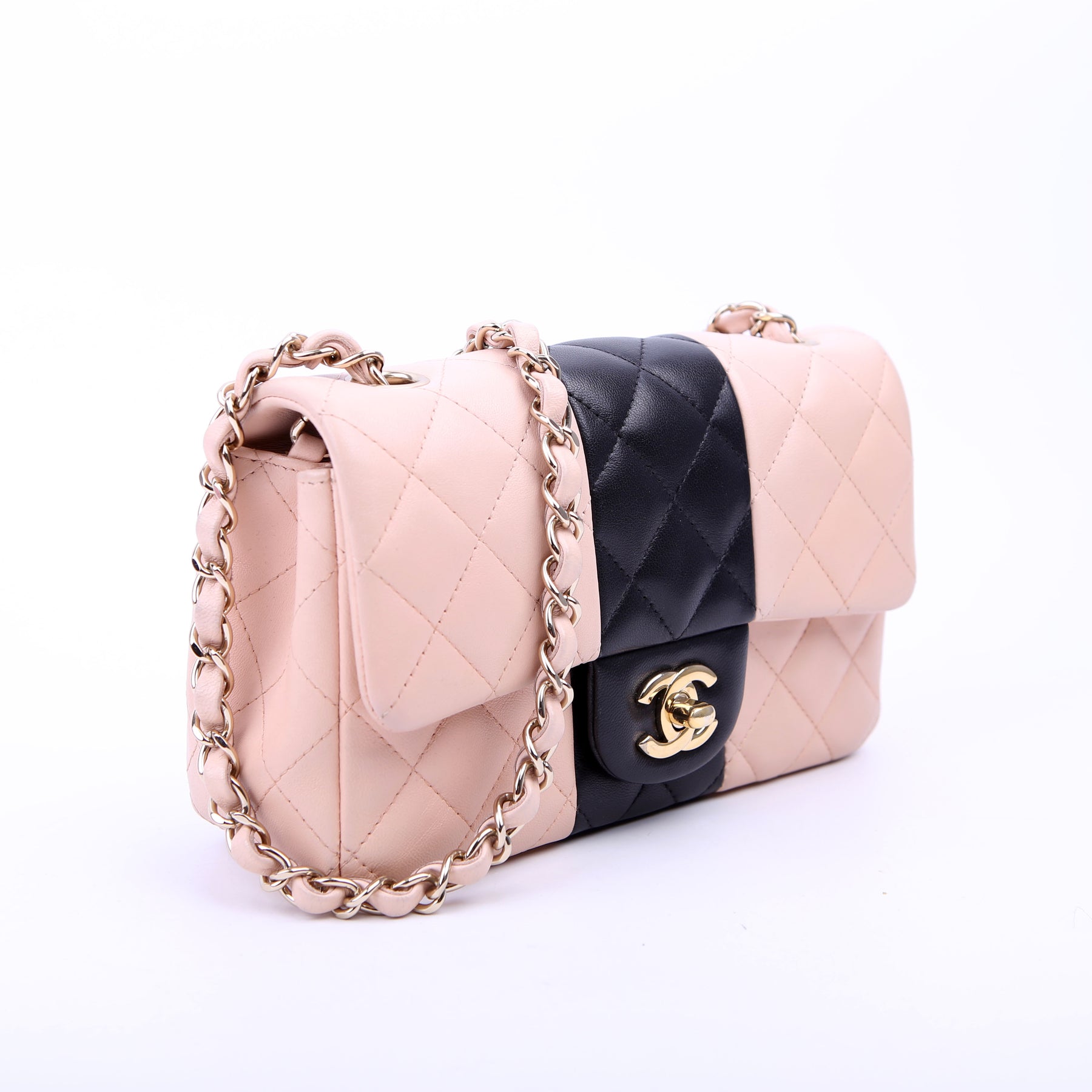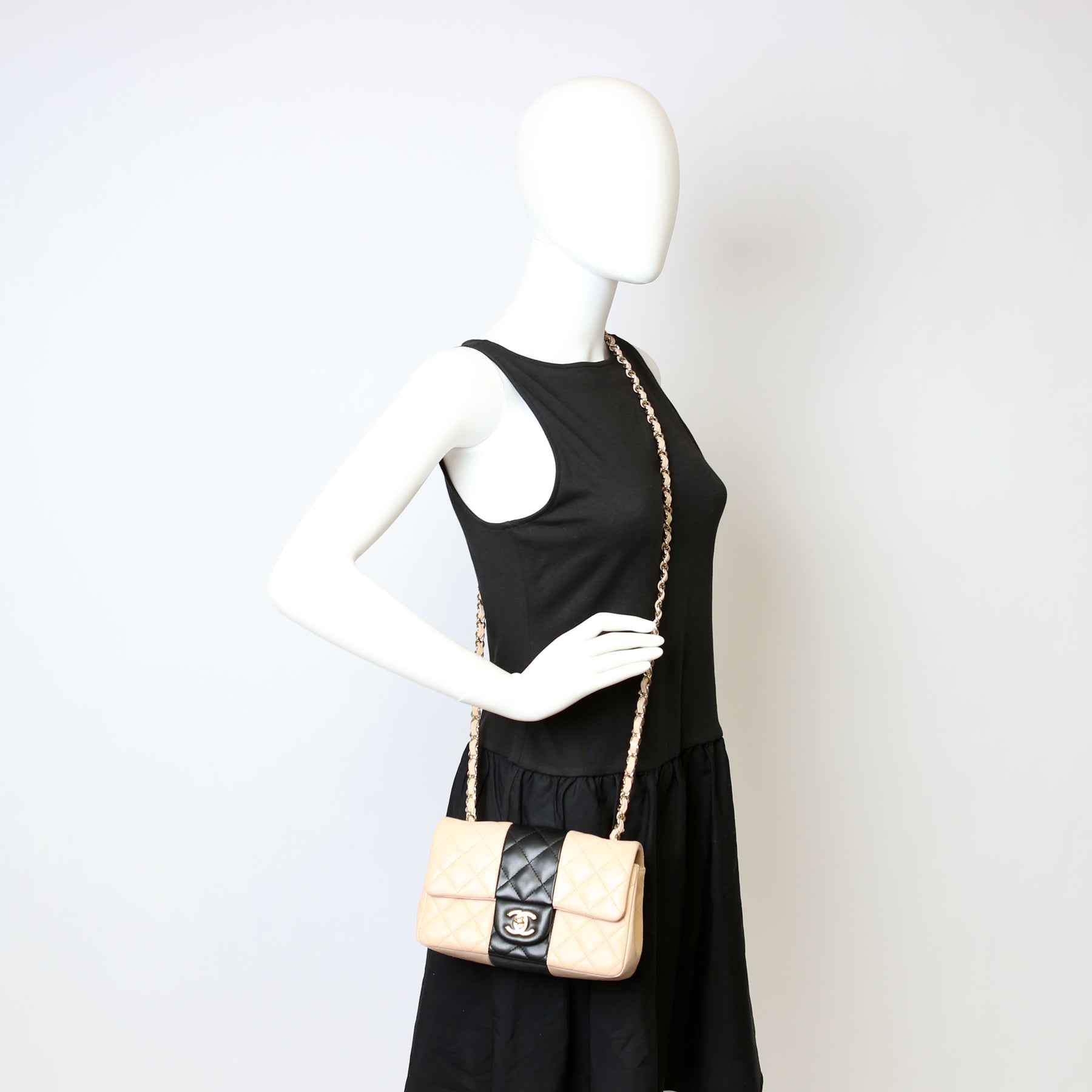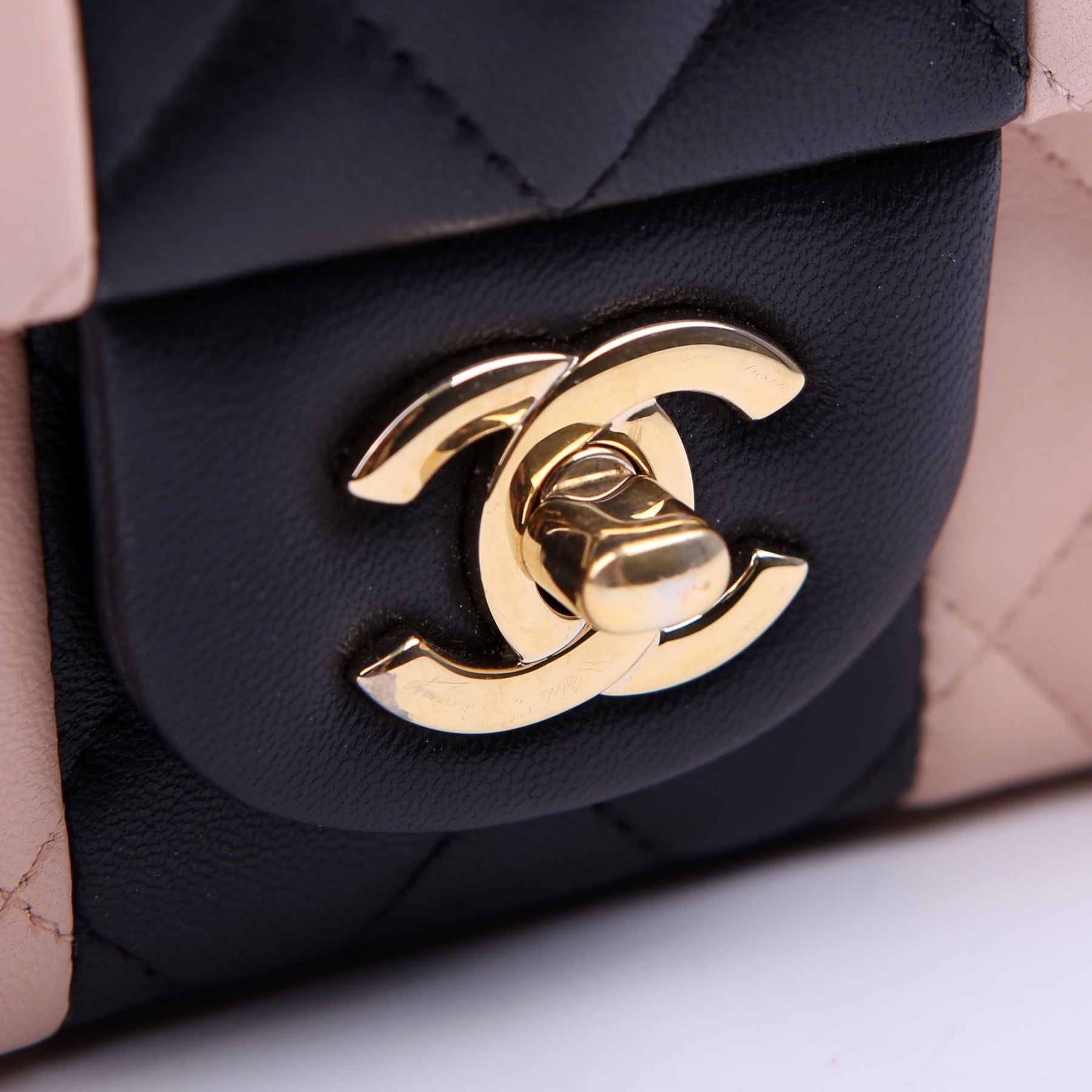 This pre-owned Chanel Classic Flap Mini Rectangle is guaranteed 100% authentic. The exterior is in the classic Chanel Lambskin leather.