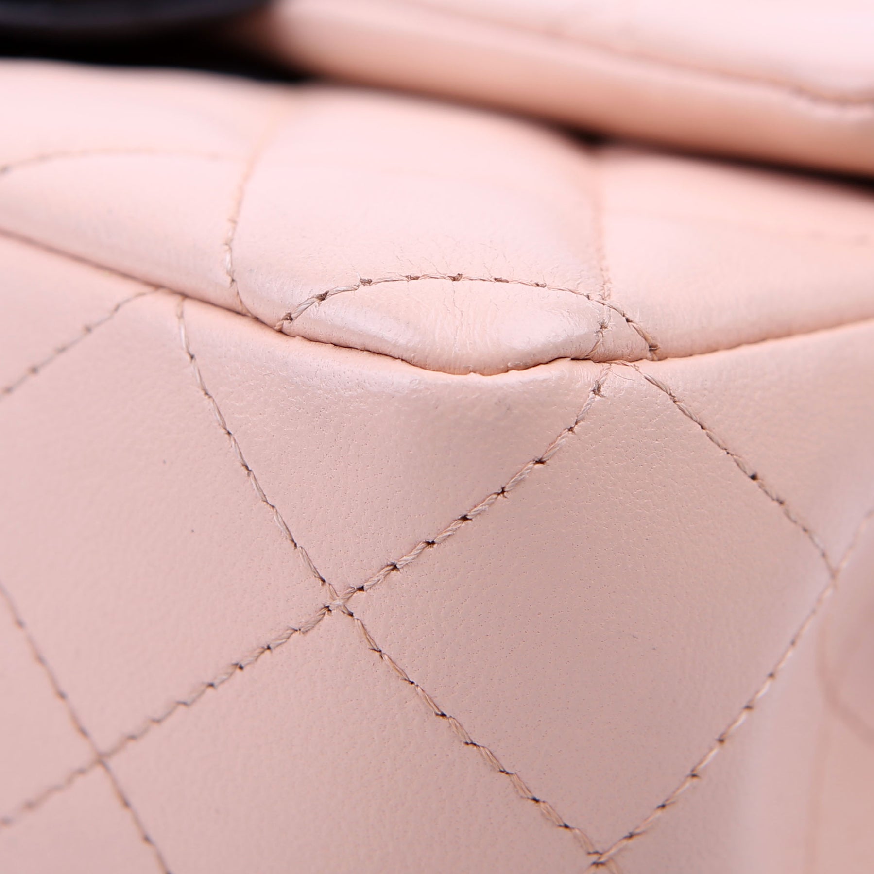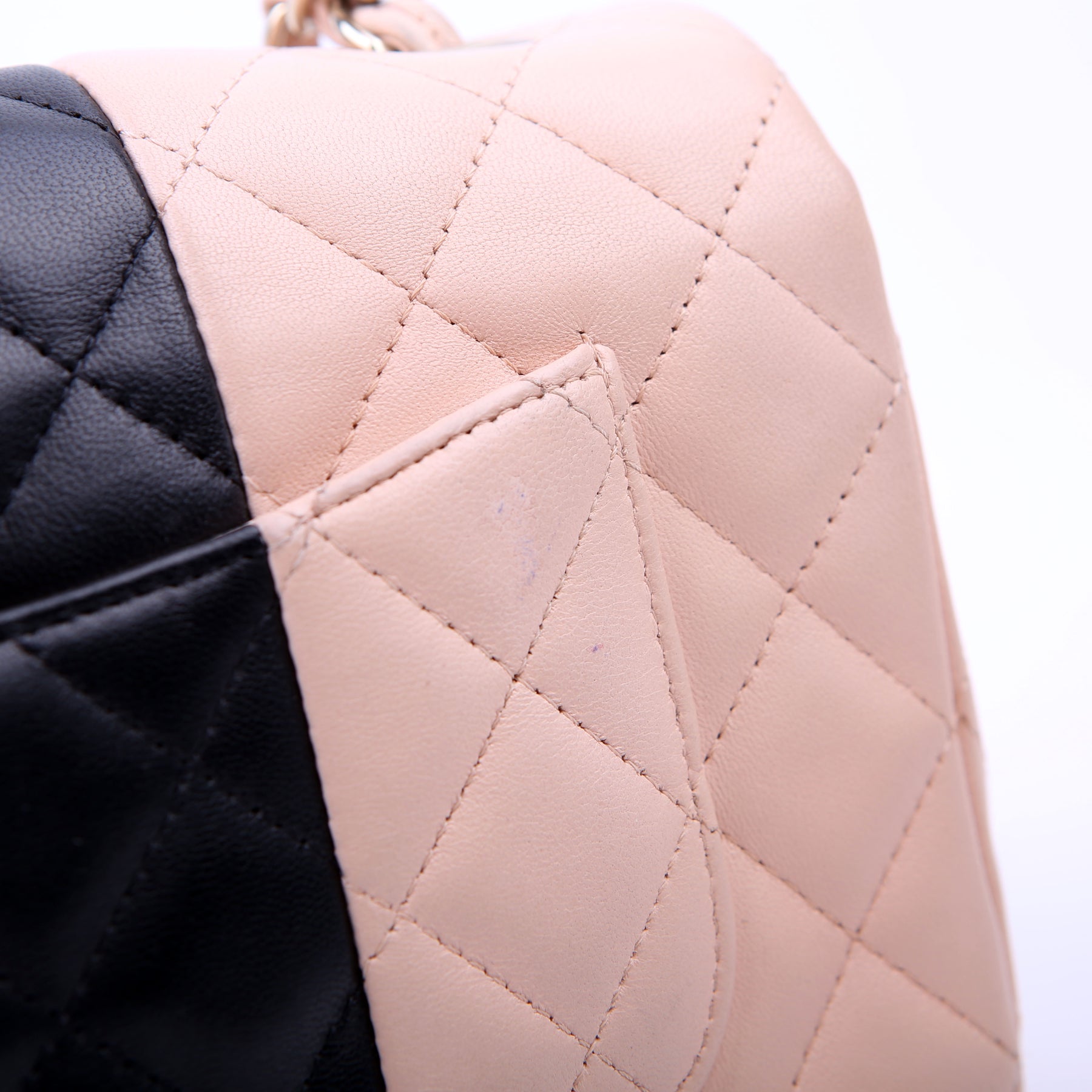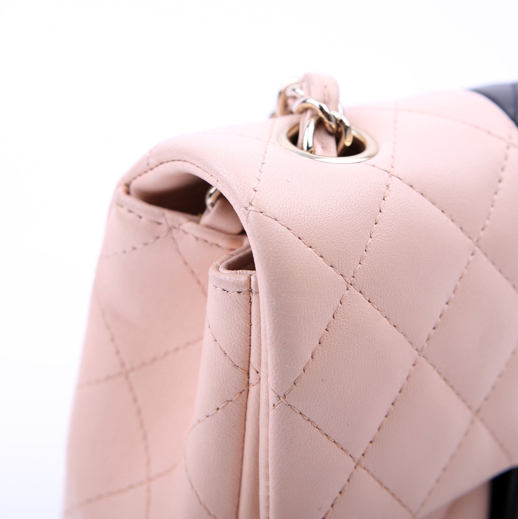 This pre-owned Chanel Classic Flap Mini Rectangle is guaranteed 100% authentic. The exterior is in the classic Chanel Lambskin leather.
