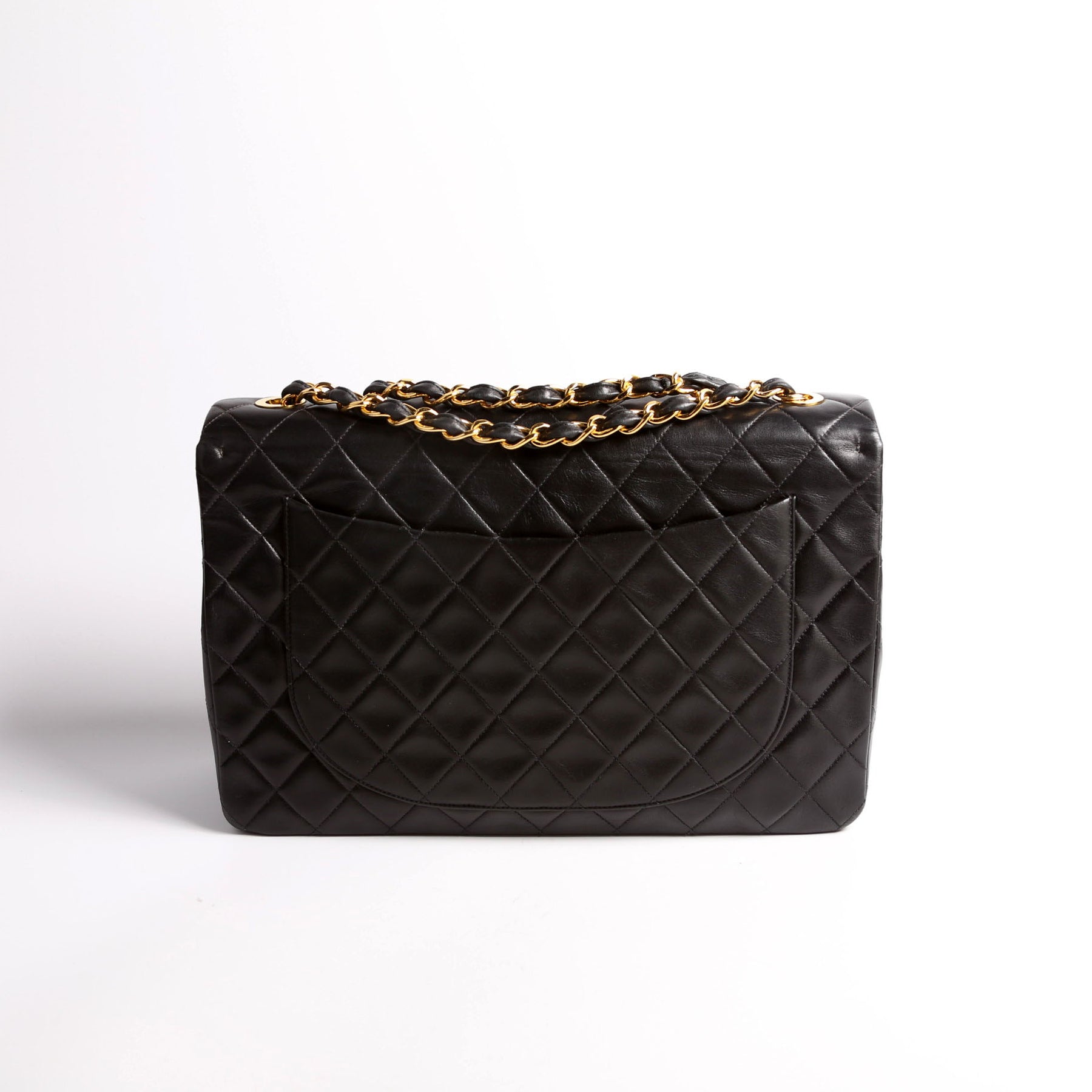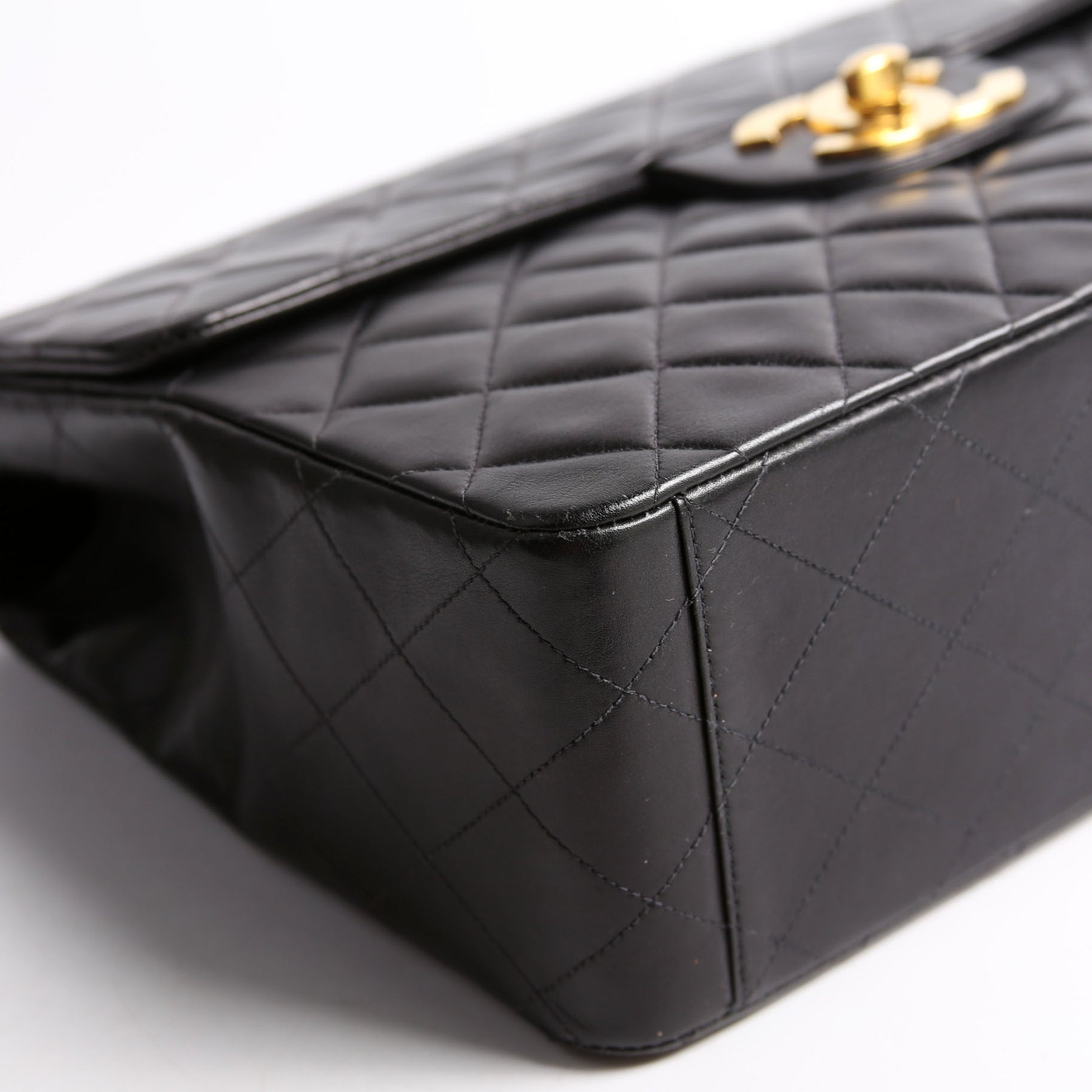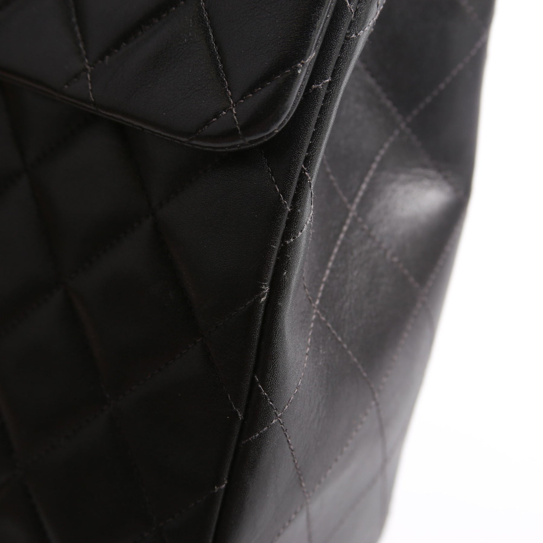 This pre-owned Chanel Classic Flap XL Jumbo is guaranteed 100% authentic. The exterior is in the classic Chanel Lambskin leather.