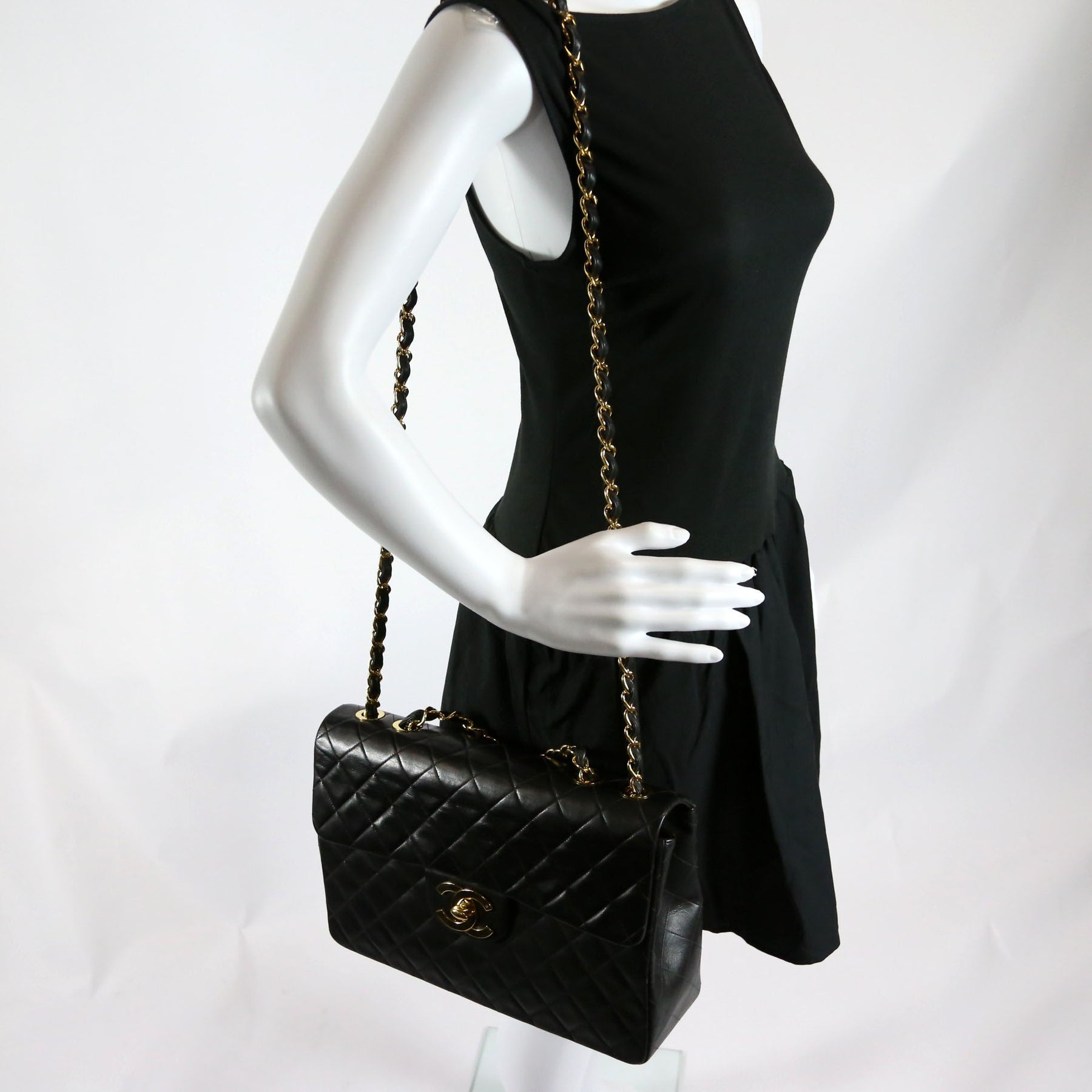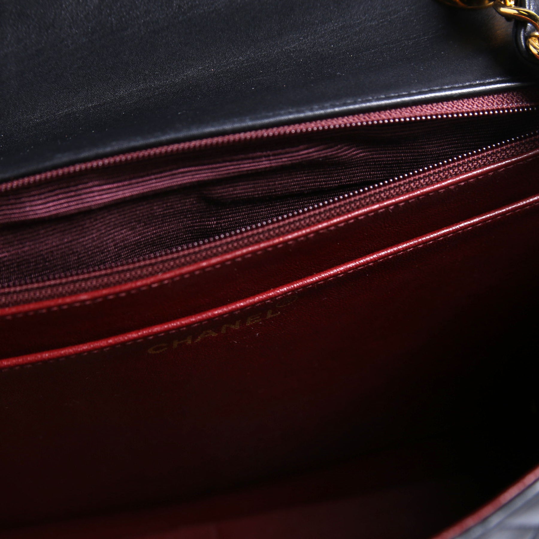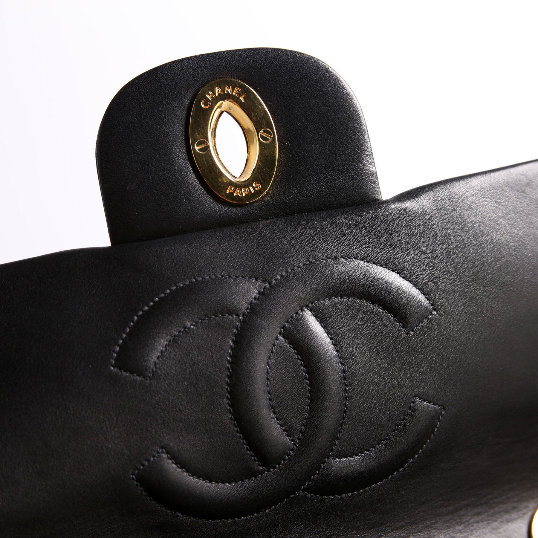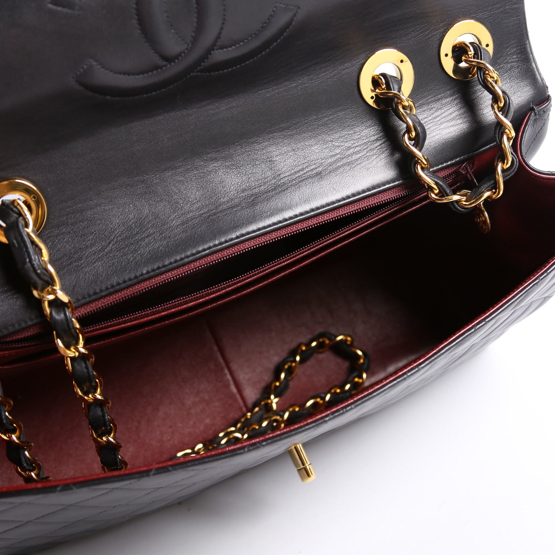 This pre-owned Chanel Classic Flap XL Jumbo is guaranteed 100% authentic. The exterior is in the classic Chanel Lambskin leather.