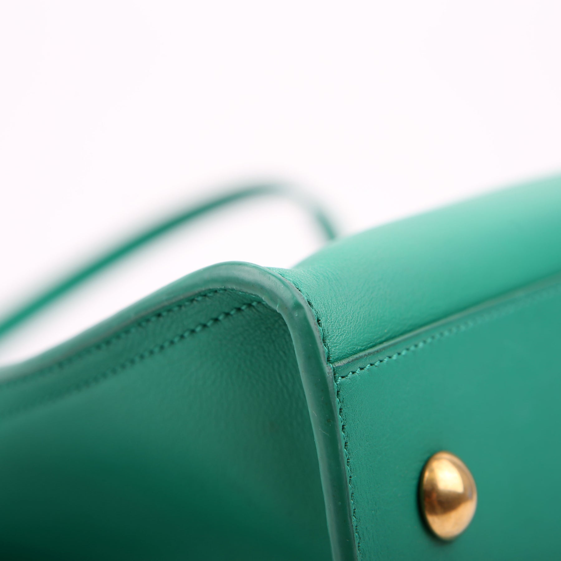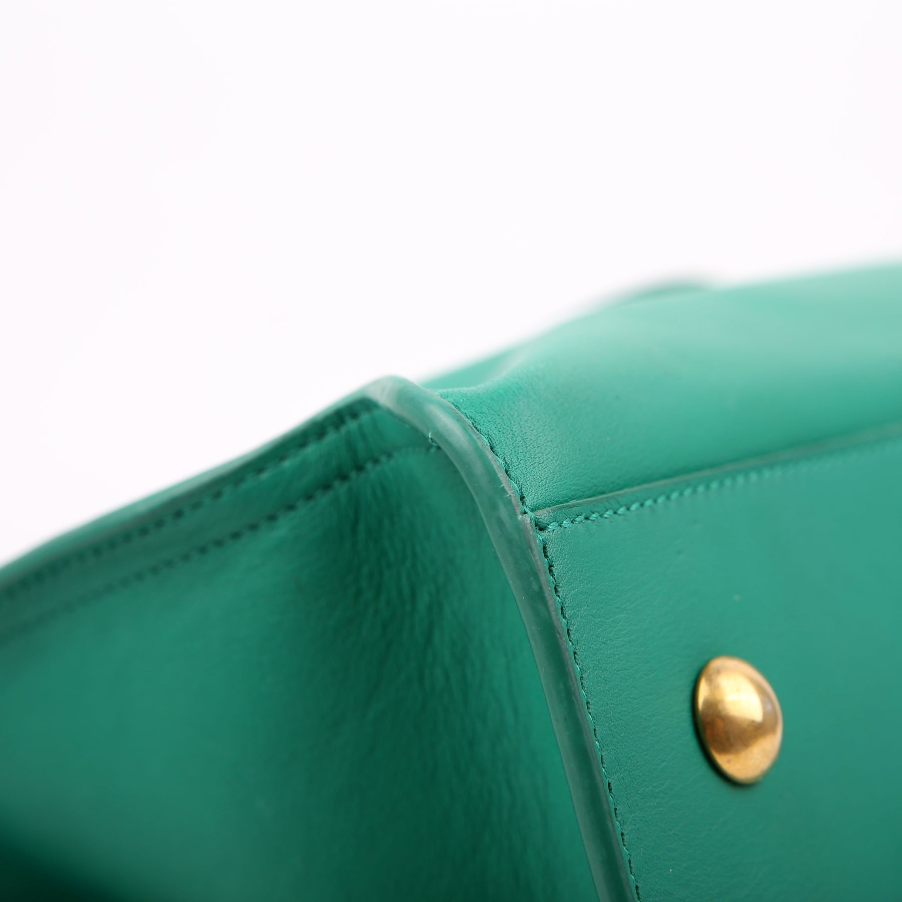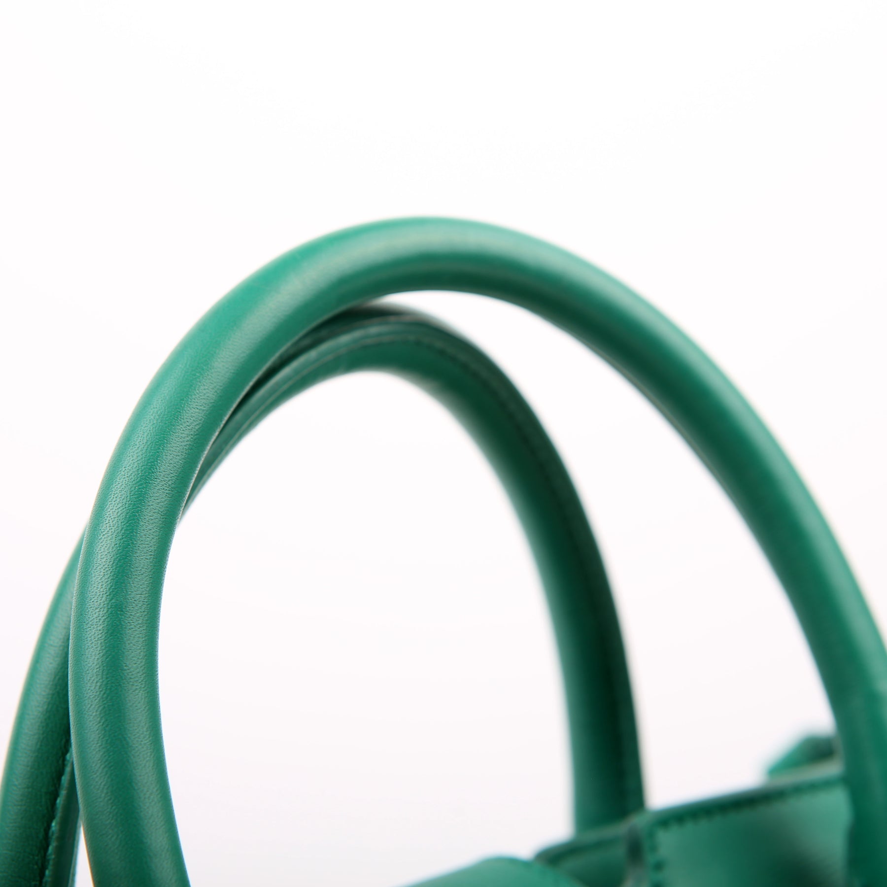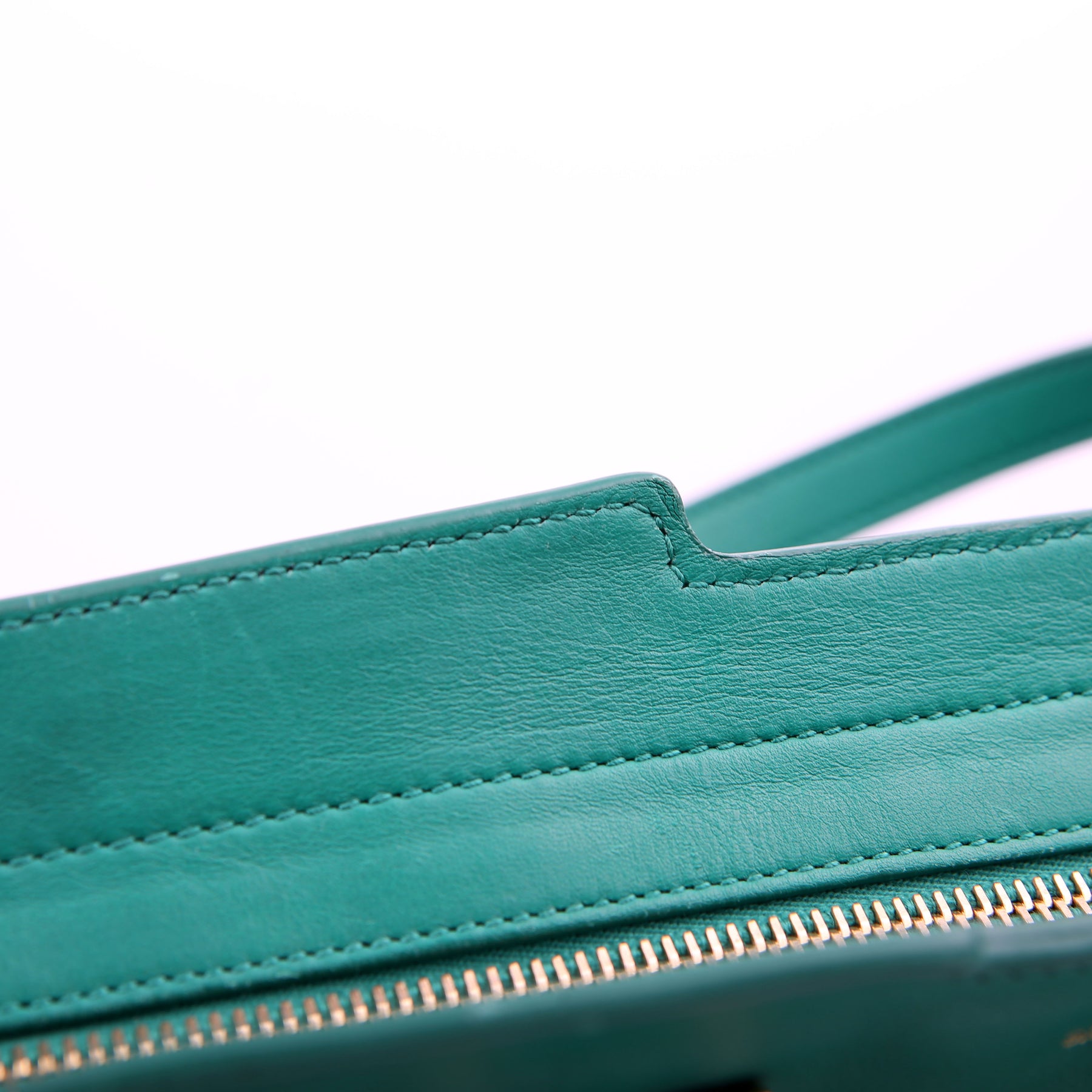 Handle: The leather handles show minor wear along the pipping. The leather tag shows light wear throughout.