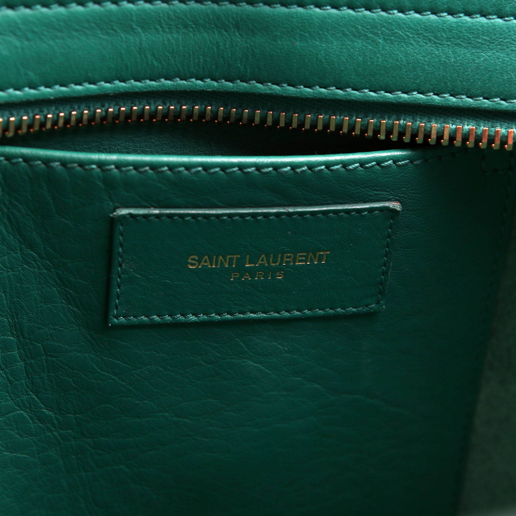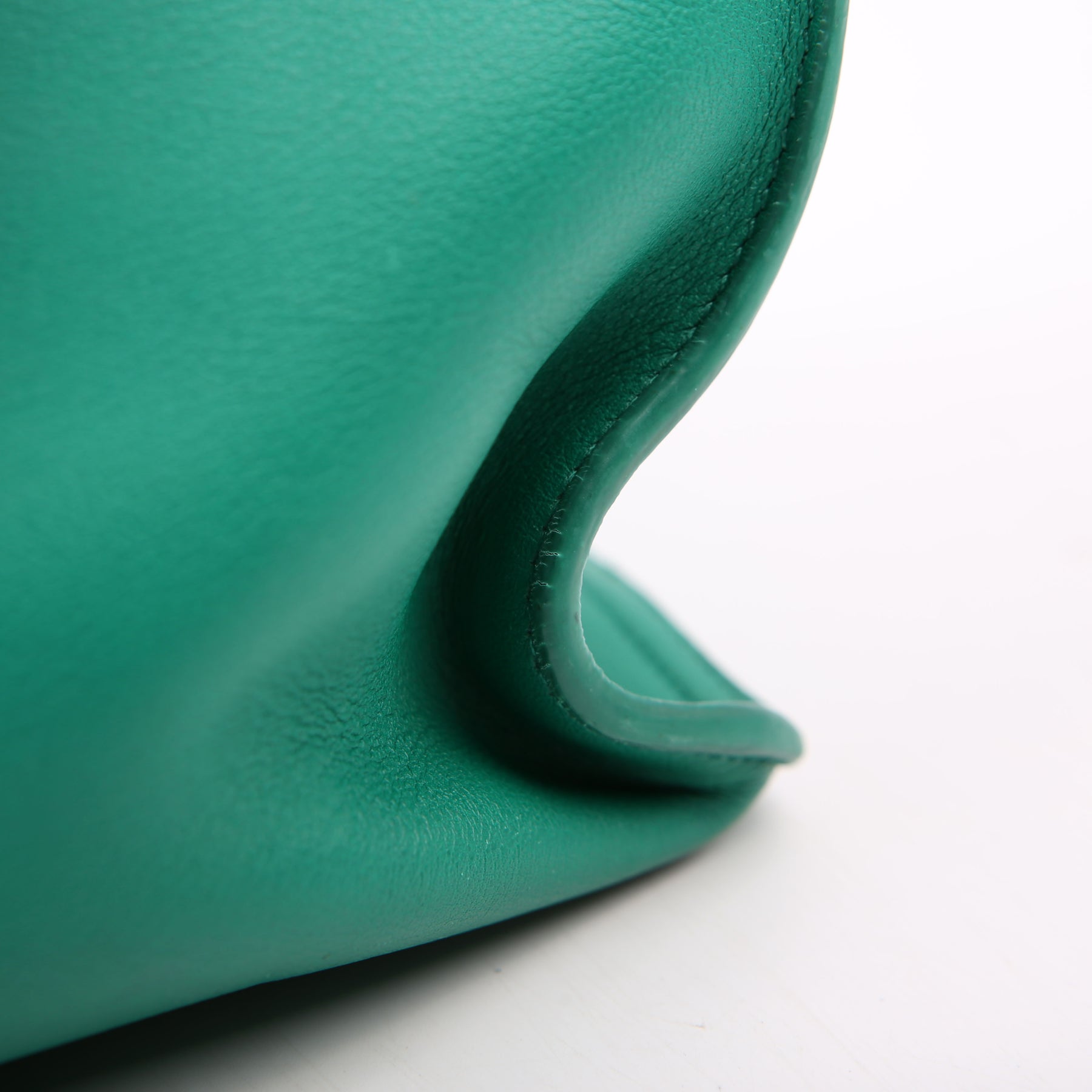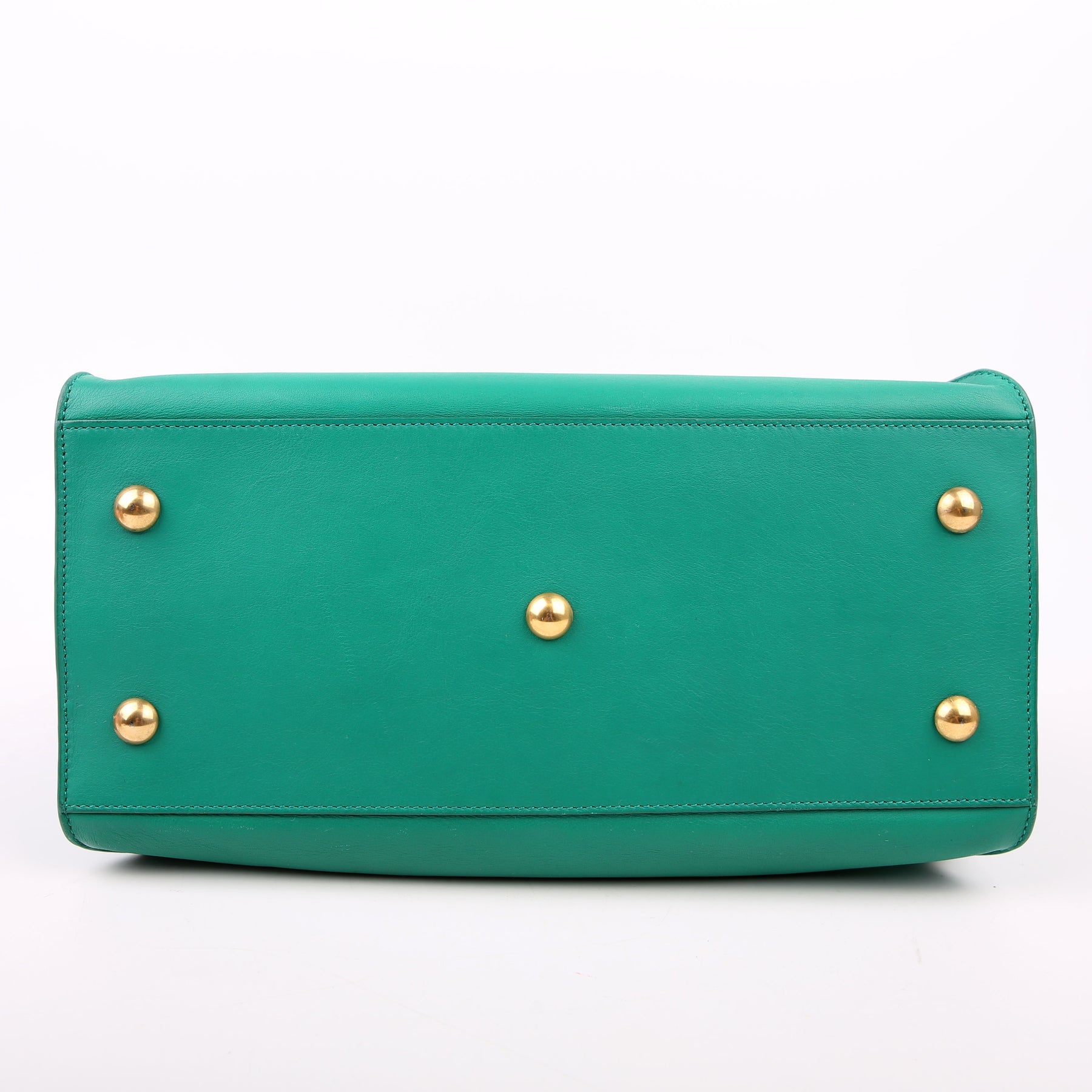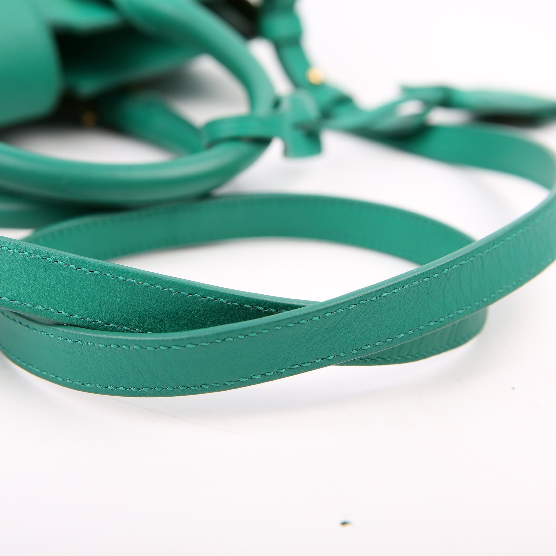 Handle: The leather handles show minor wear along the pipping. The leather tag shows light wear throughout.