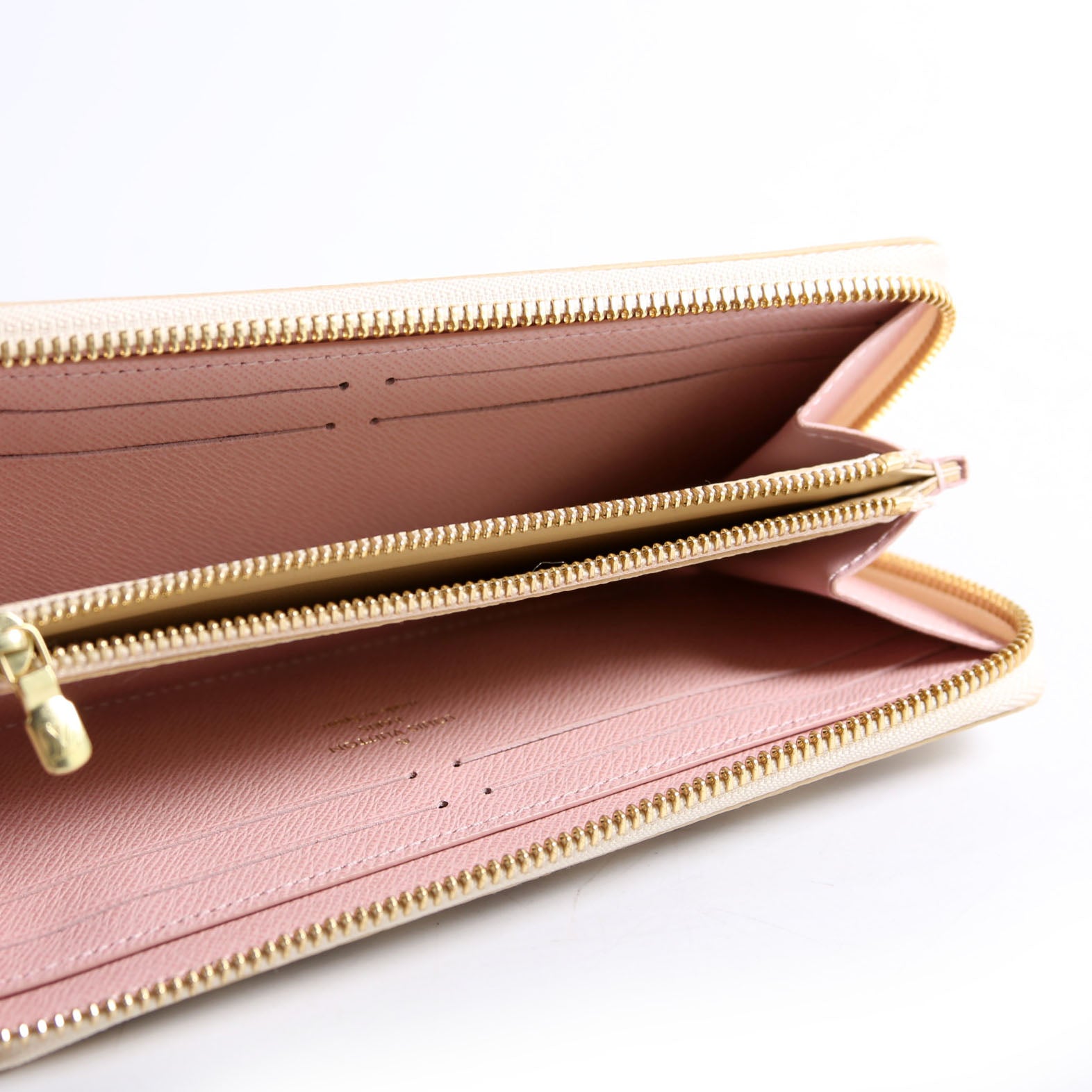 Interior: The interior is free from wear. It features eight card slots, two open pockets, and one zip closure pocket.