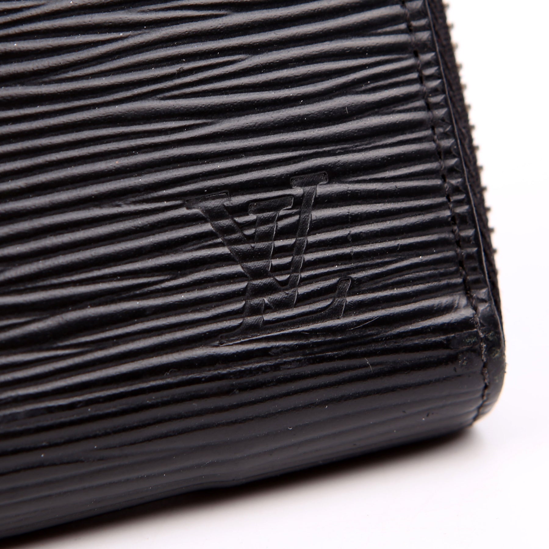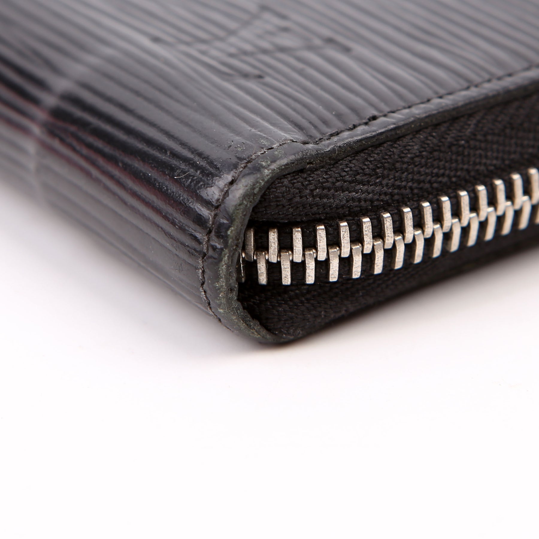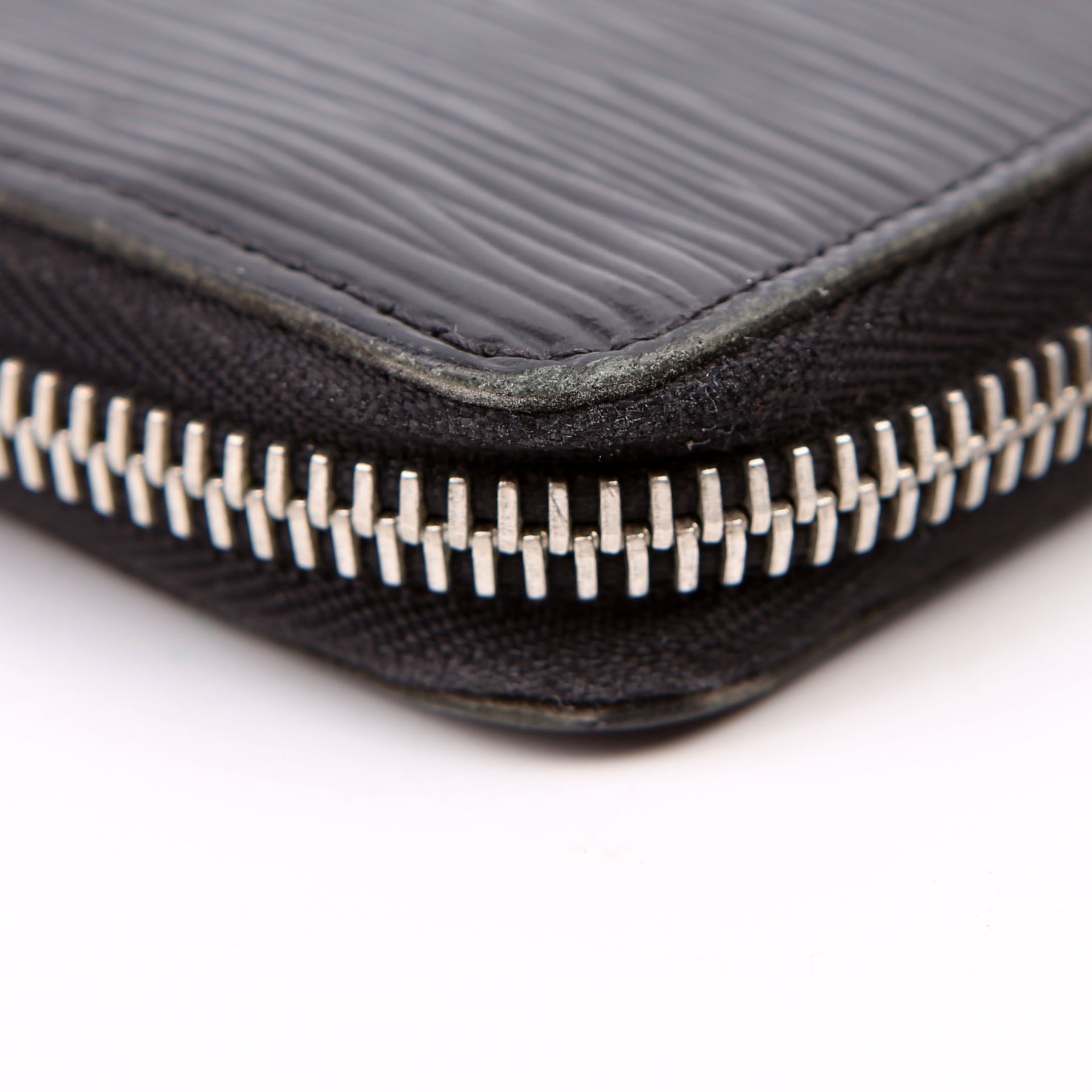Hardware: The zipper operates properly and runs smoothly. The leather zipper pull shows minor wear.