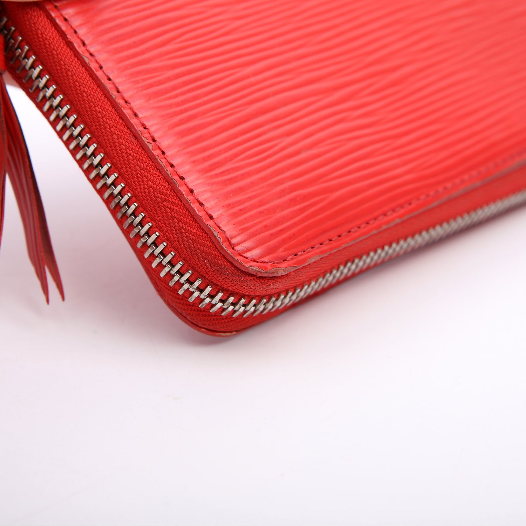 This pre-owned Louis Vuitton Clemence Wallet is guaranteed 100% authentic. The exterior is in the classic Louis Vuitton Epi Leather.