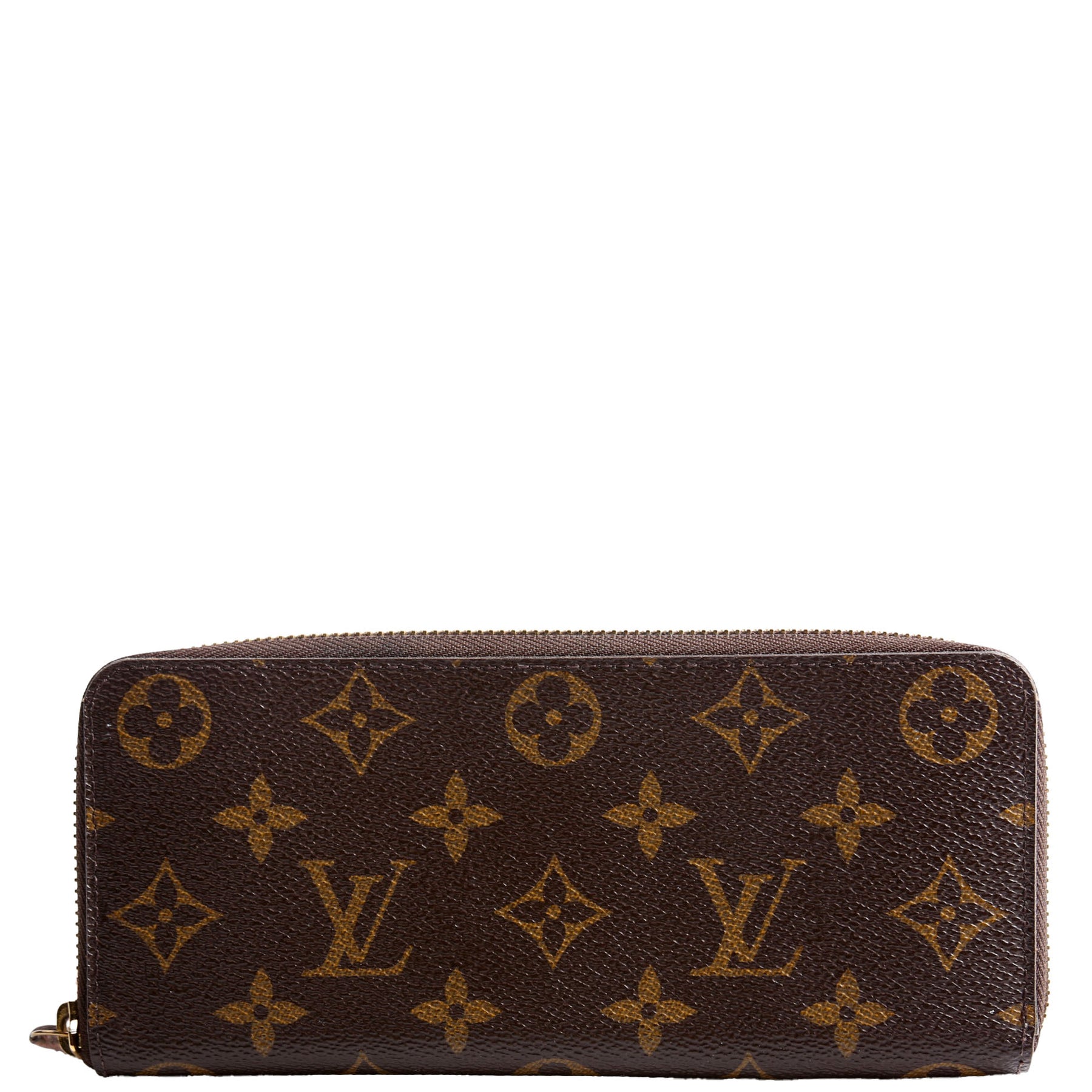 This pre-owned Louis Vuitton Clemence Wallet is guaranteed 100% authentic. The exterior is in the classic Louis Vuitton Monogram coated canvas.