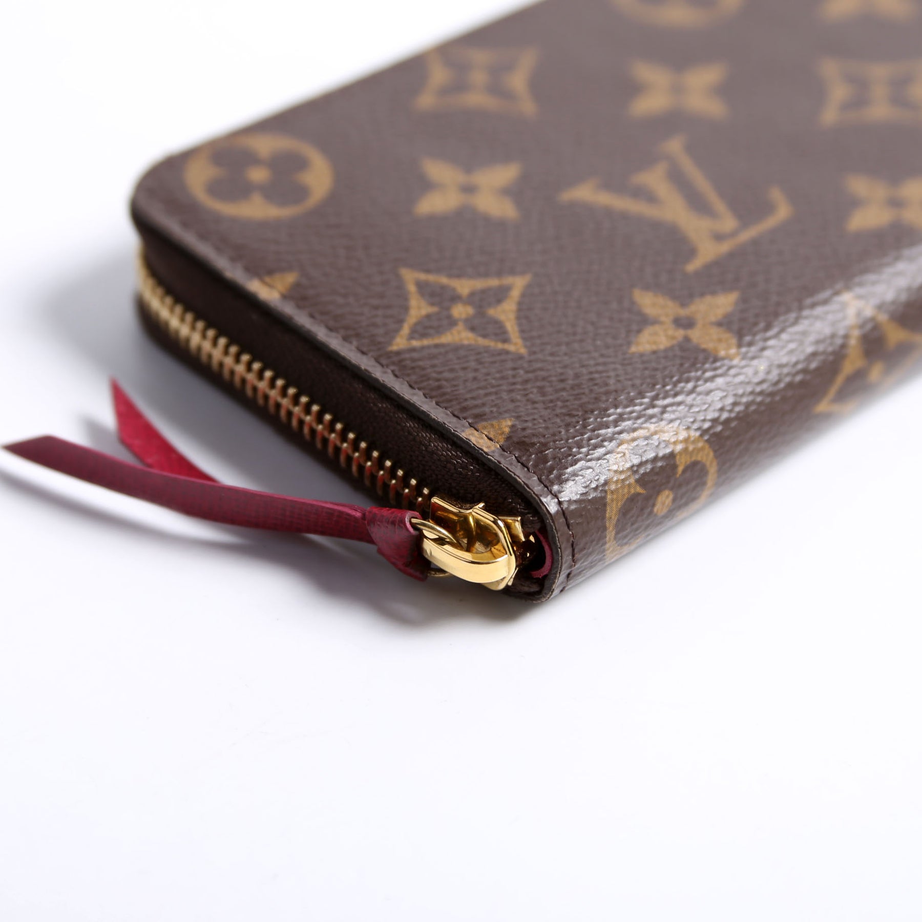 This pre-owned Louis Vuitton Clemence Wallet is guaranteed 100% authentic. The exterior is in the classic Louis Vuitton Monogram coated canvas.