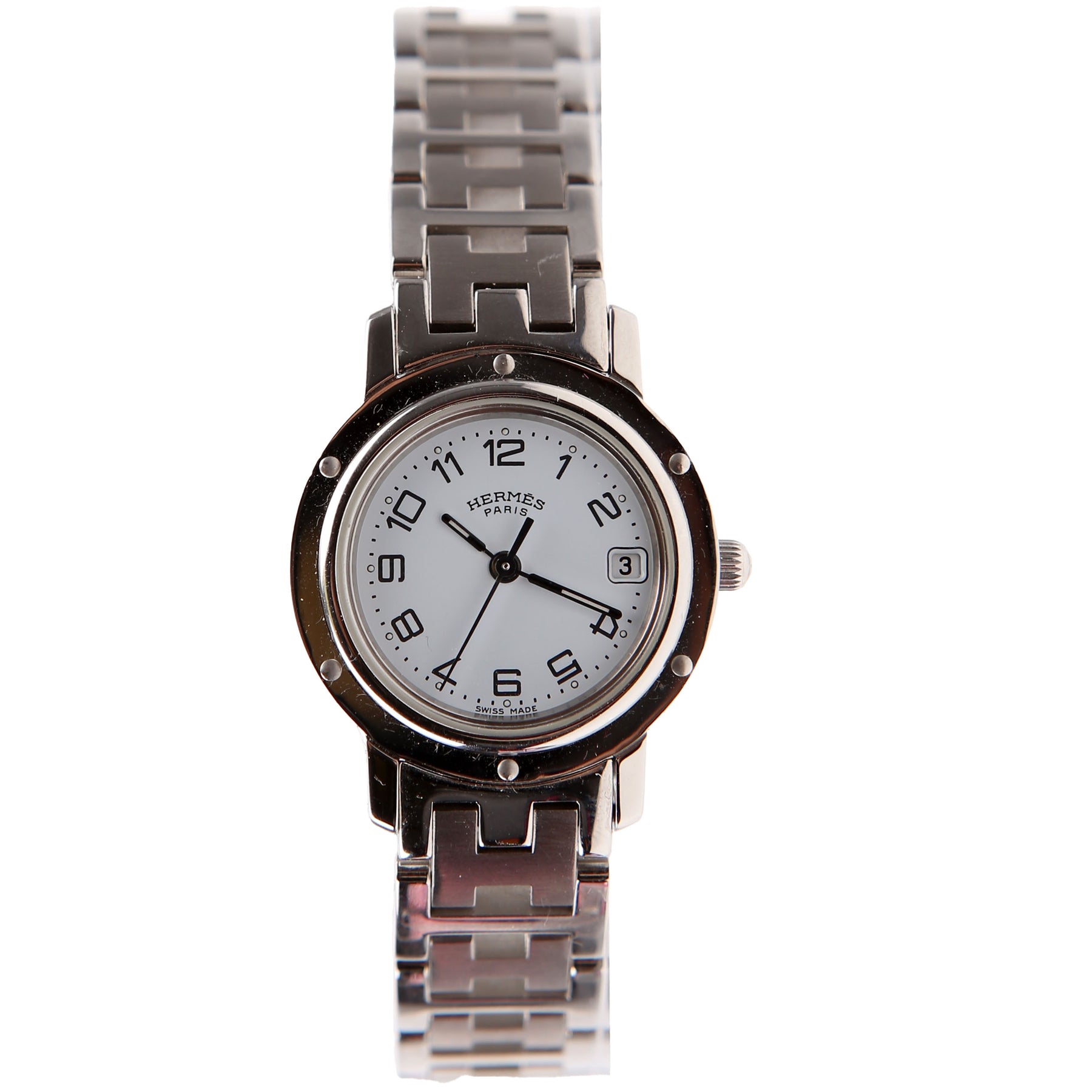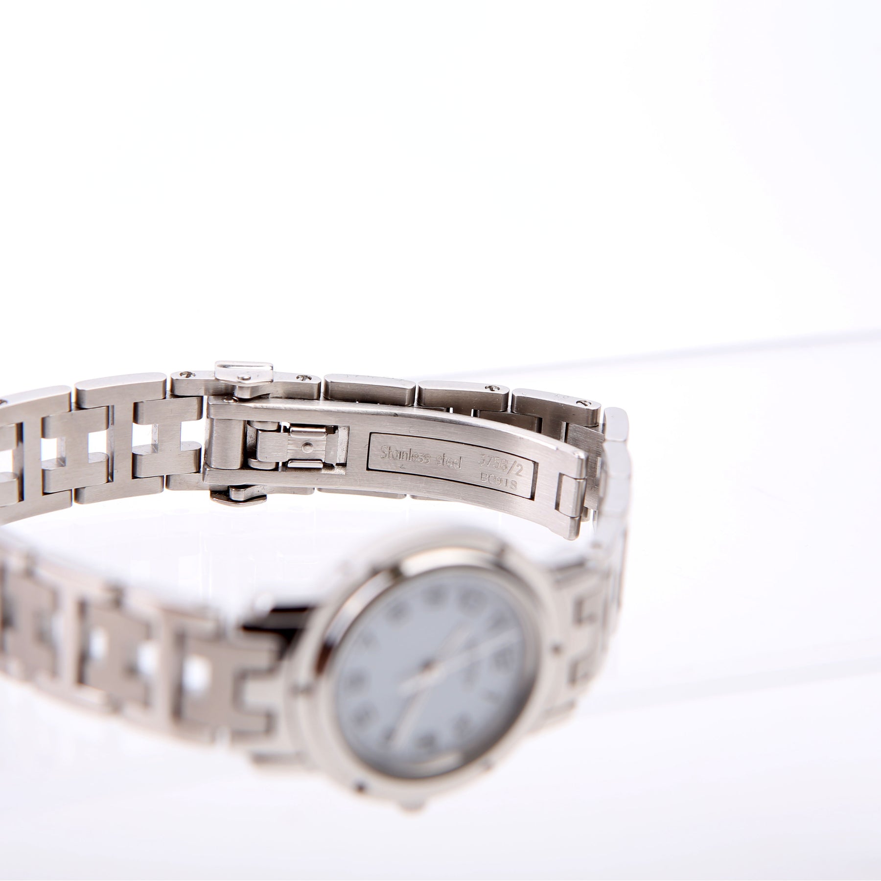 This pre-owned Hermes Clipper Quartz/Stainless Steel 24MM Watch is guaranteed 100% authentic.