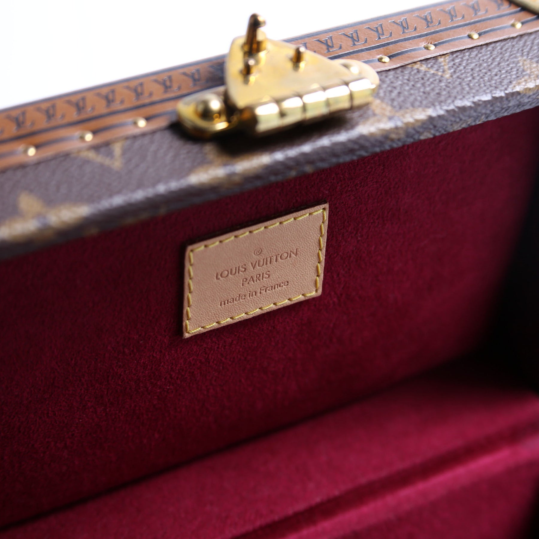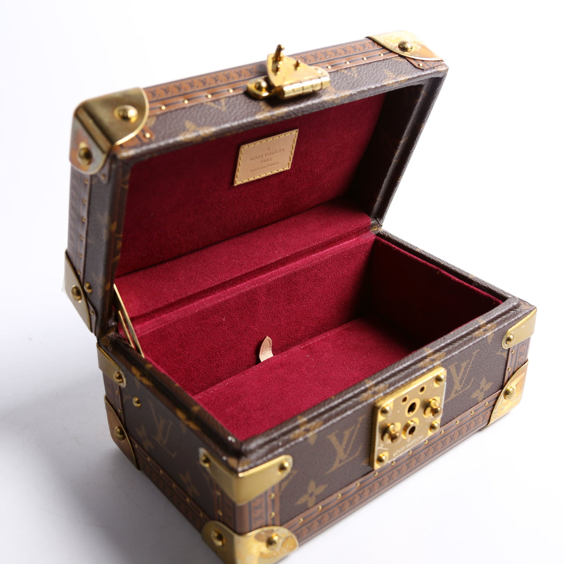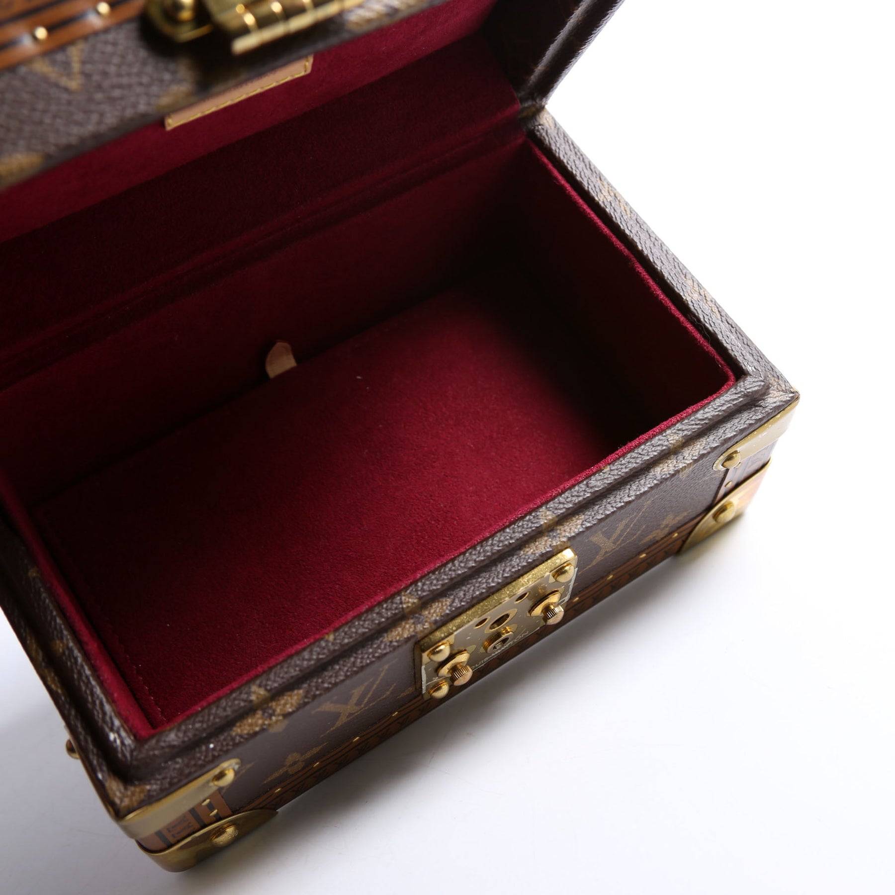 This pre-owned Louis Vuitton Coffret Tresor 20 Jewelry Box is guaranteed 100% authentic. The exterior is in the classic Louis Vuitton Monogram coated canvas.