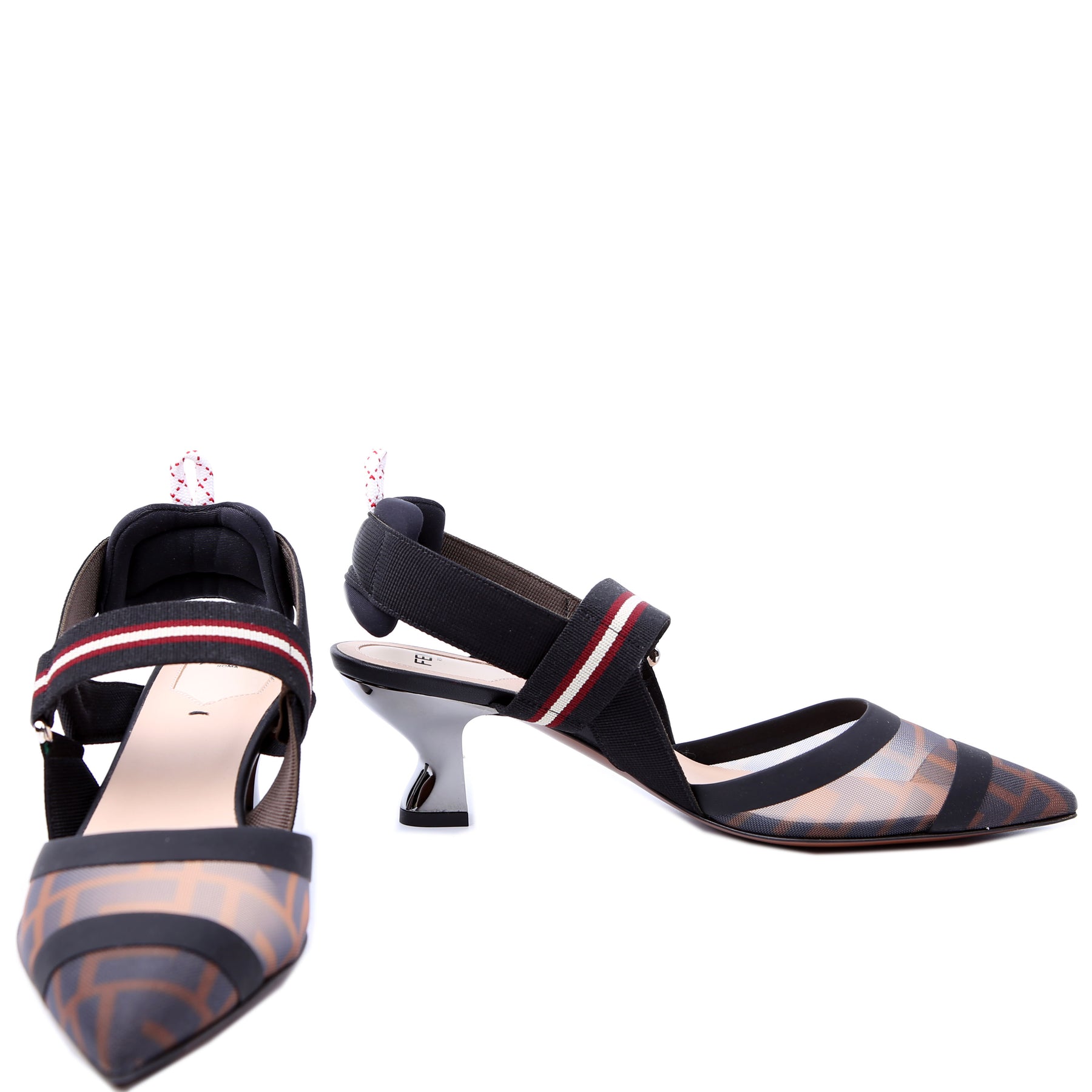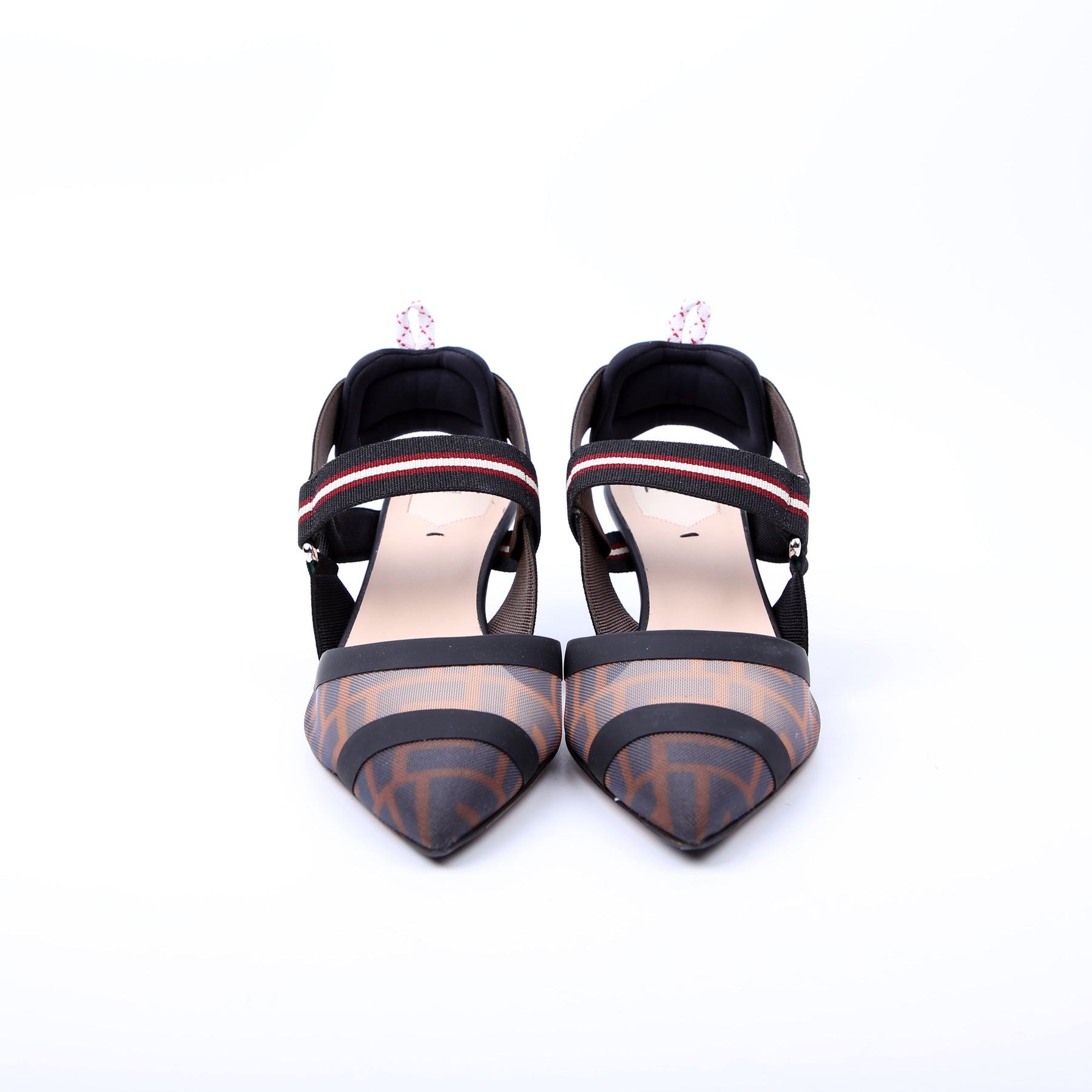 These pre-owned Fendi FF Mesh Slingback are guaranteed 100% authentic.