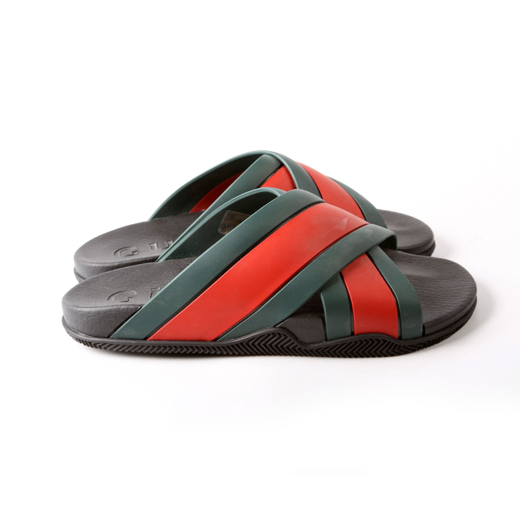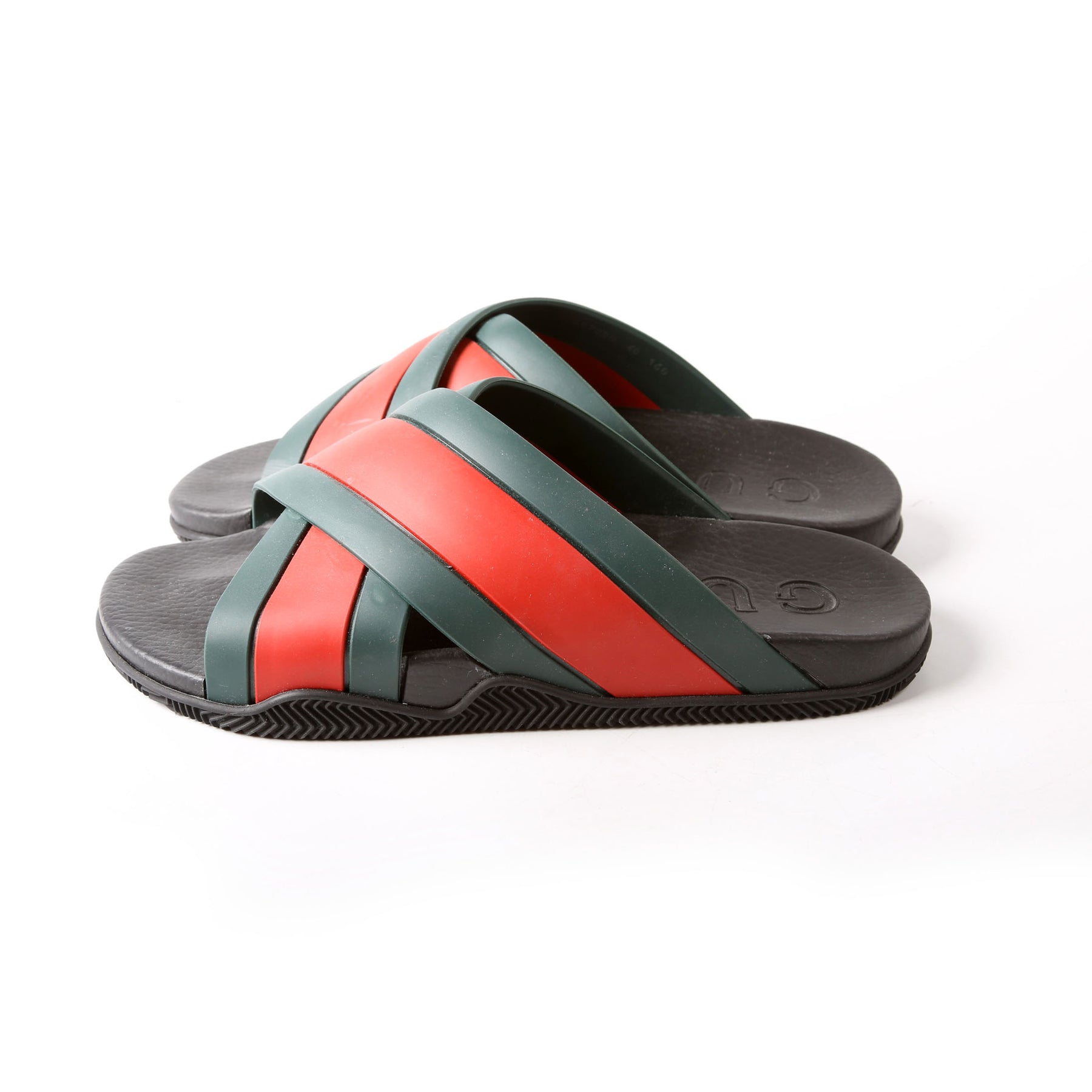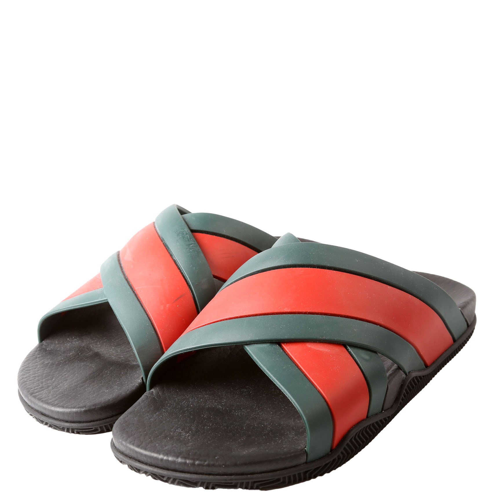 These pre-owned Gucci Criss Cross Web Rubber Slides are guaranteed 100% authentic.