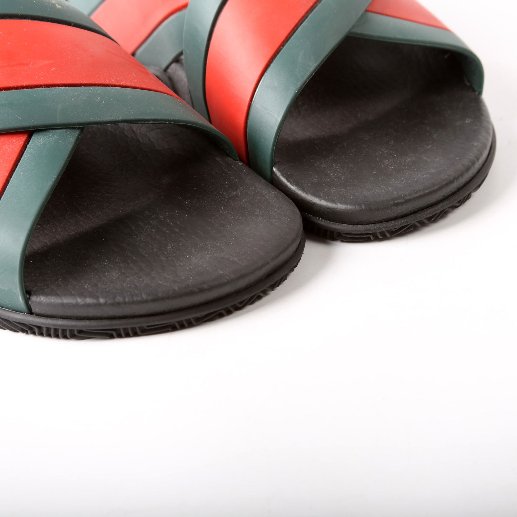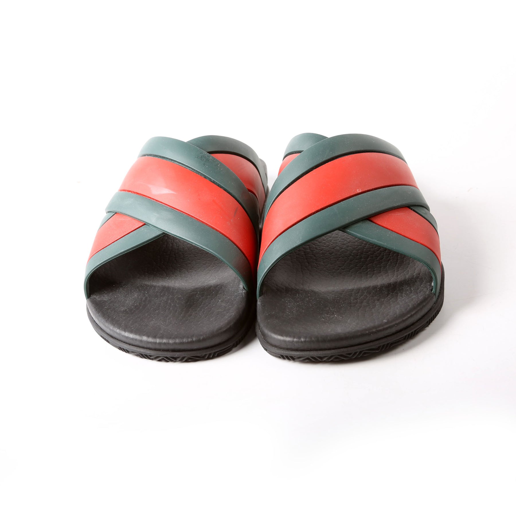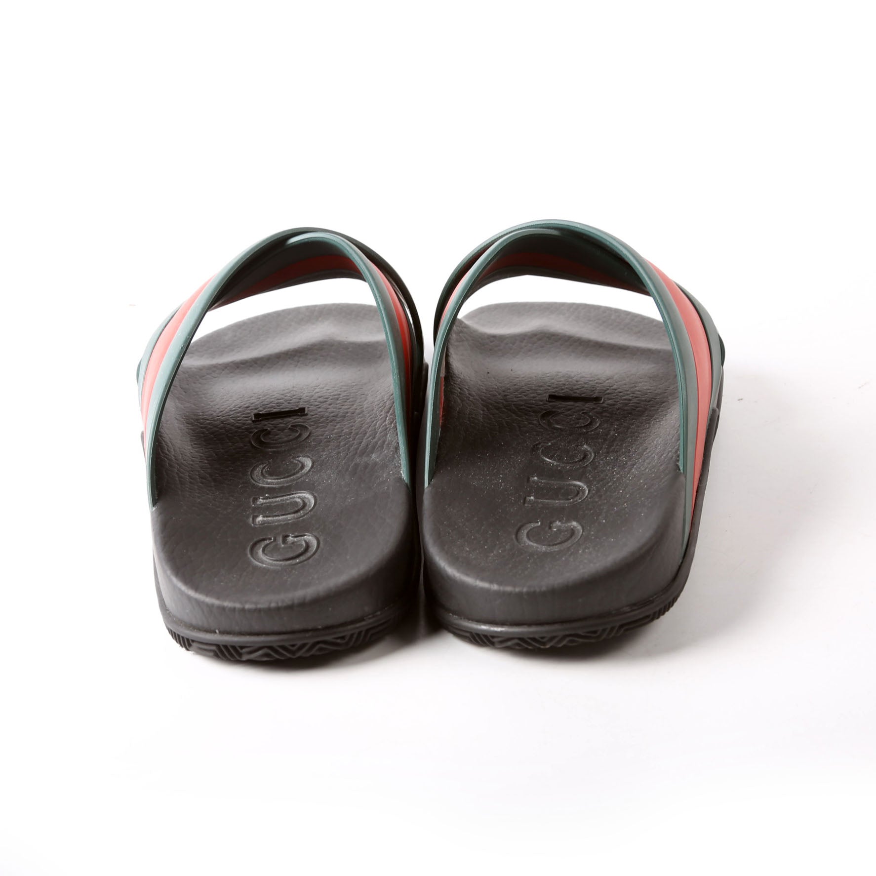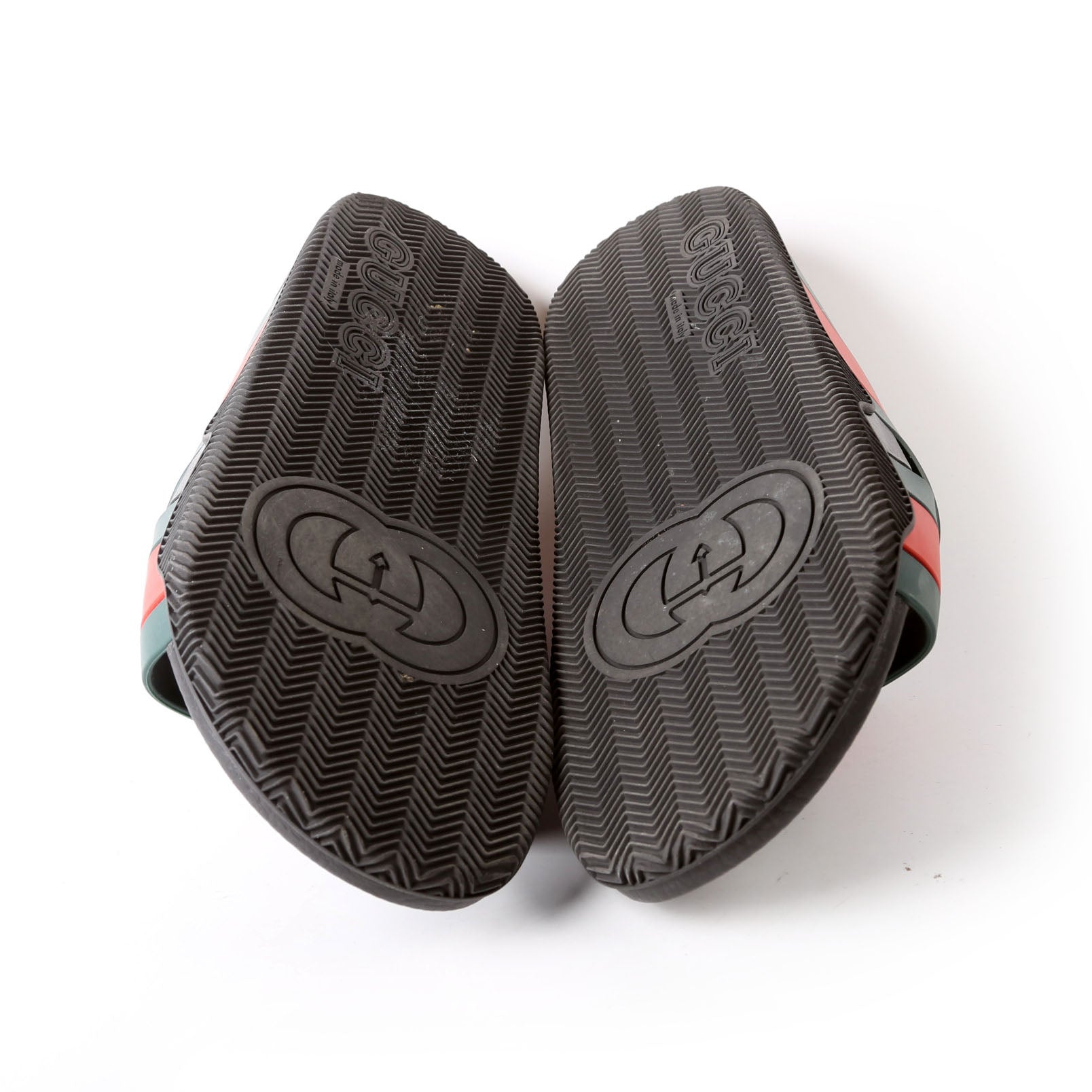 These pre-owned Gucci Criss Cross Web Rubber Slides are guaranteed 100% authentic.