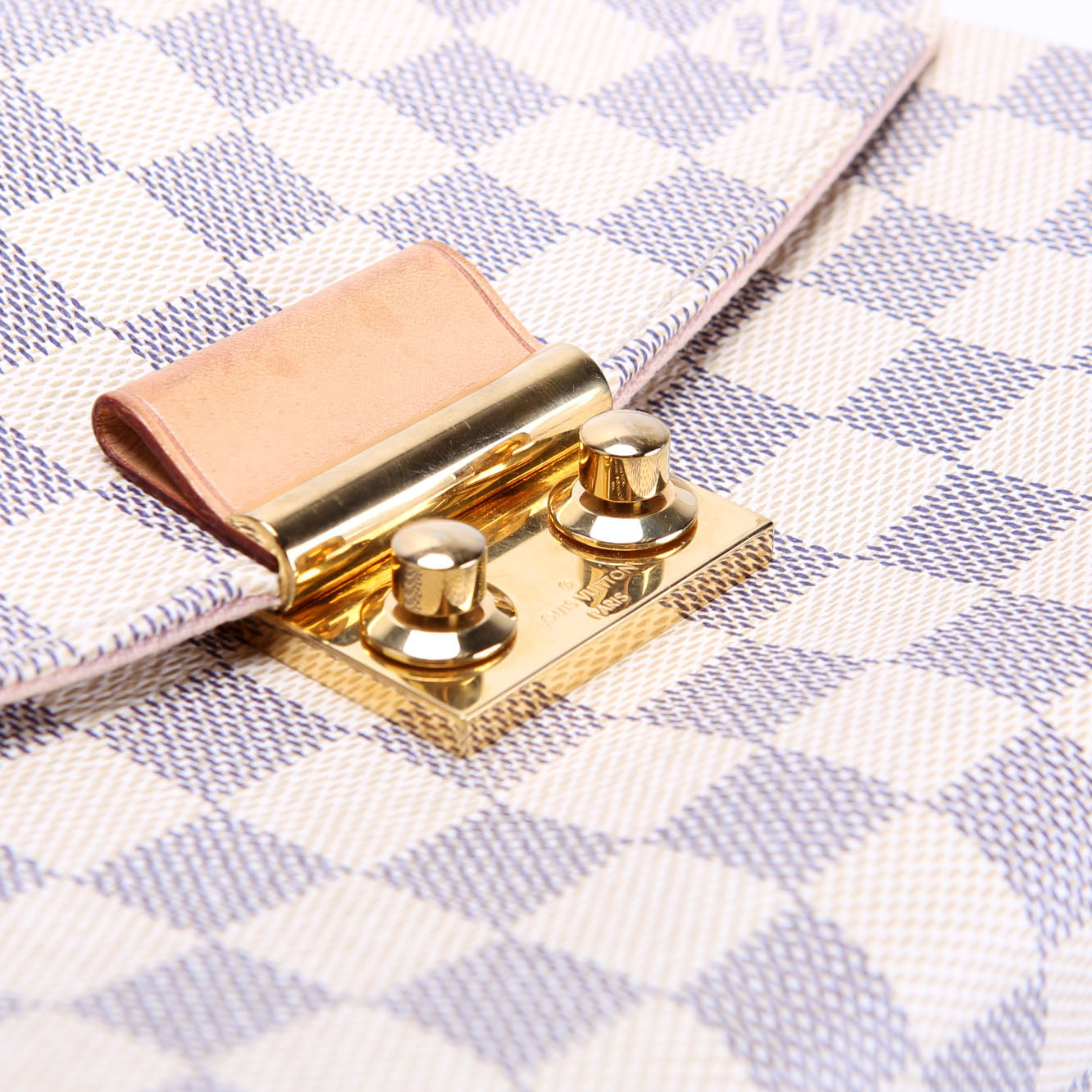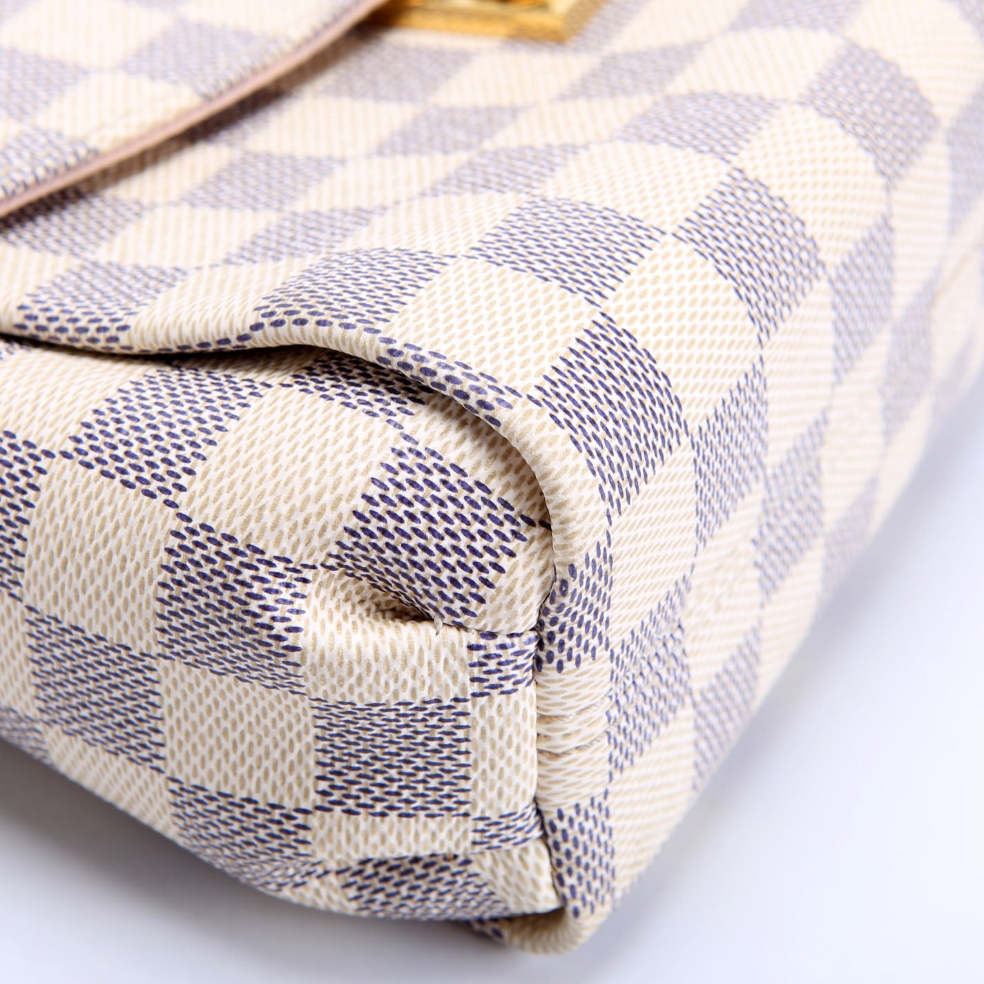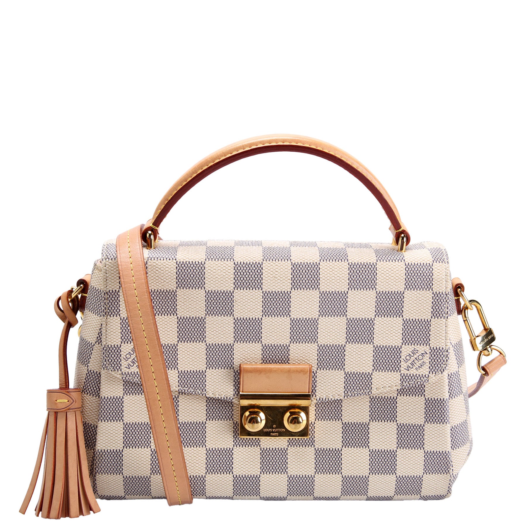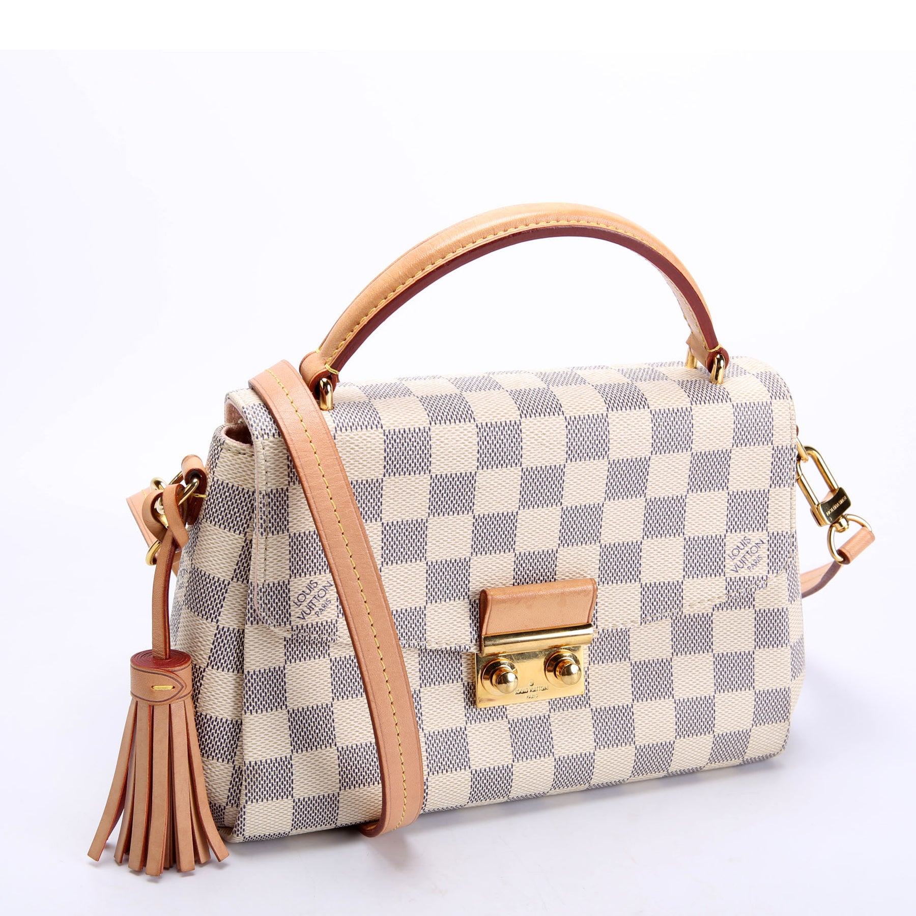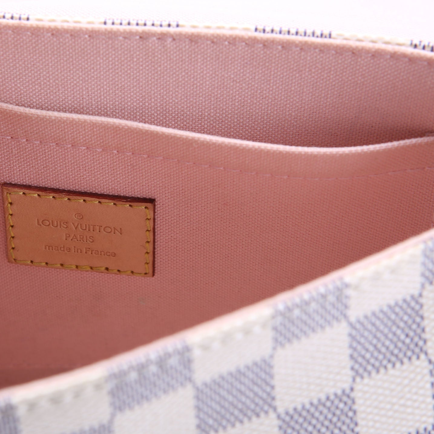 This pre-owned Louis Vuitton Croisette is guaranteed 100% authentic. The exterior is in the classic Louis Vuitton Damier Azur coated canvas.