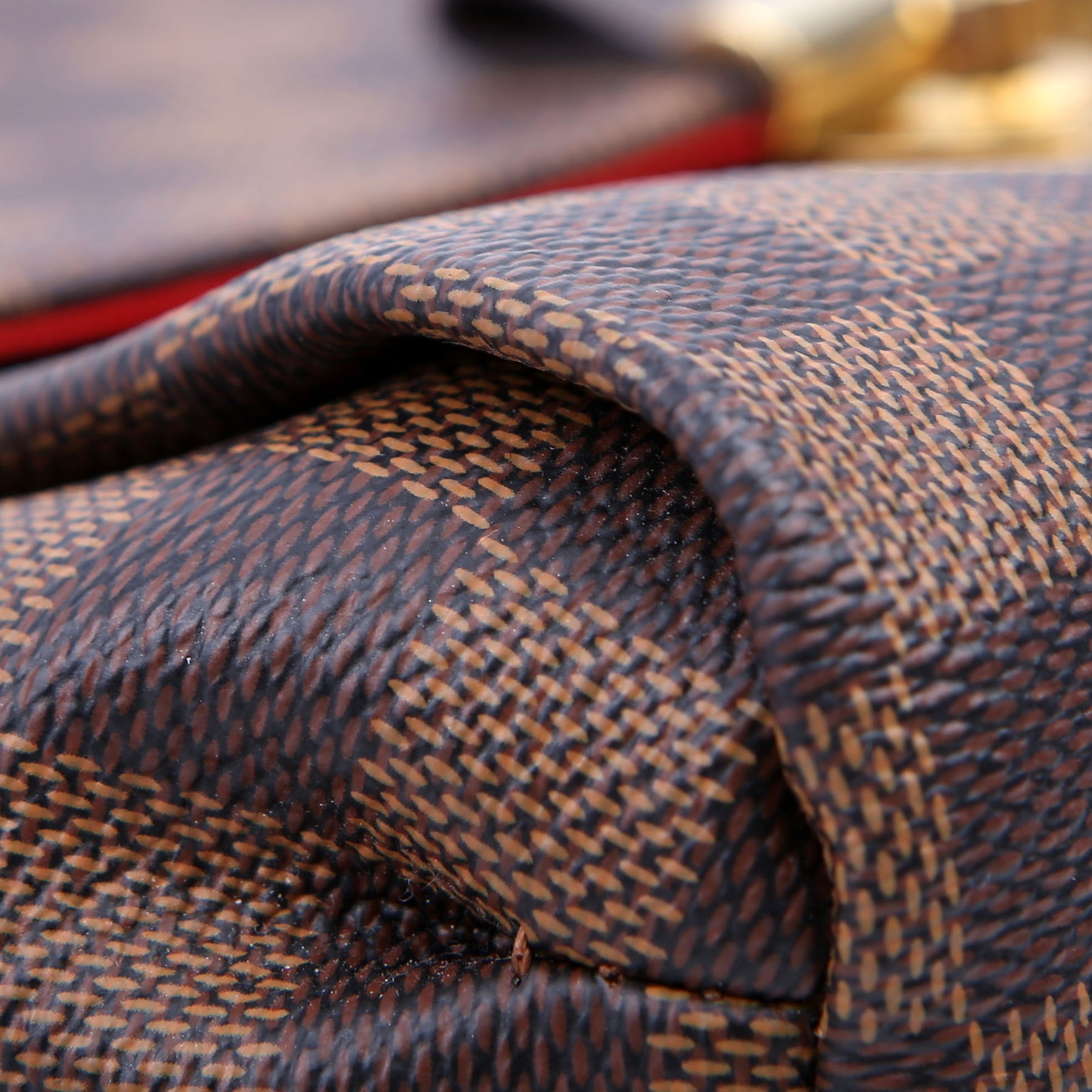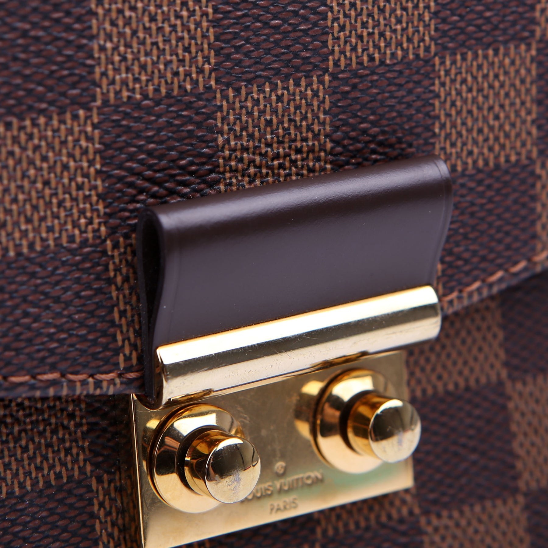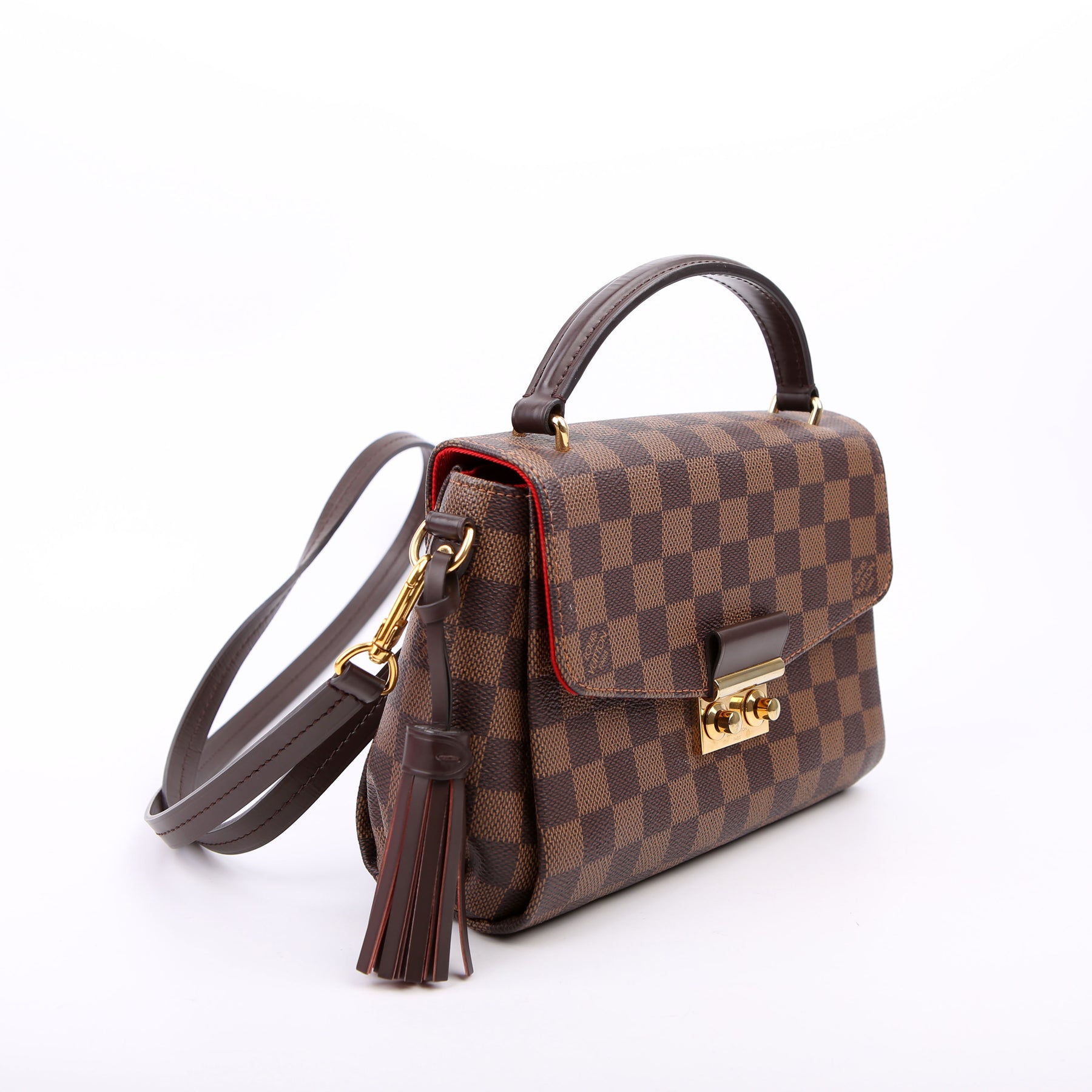 This pre-owned Louis Vuitton Croisette is guaranteed 100% authentic. The exterior is in the classic Louis Vuitton Damier Ebene coated canvas.