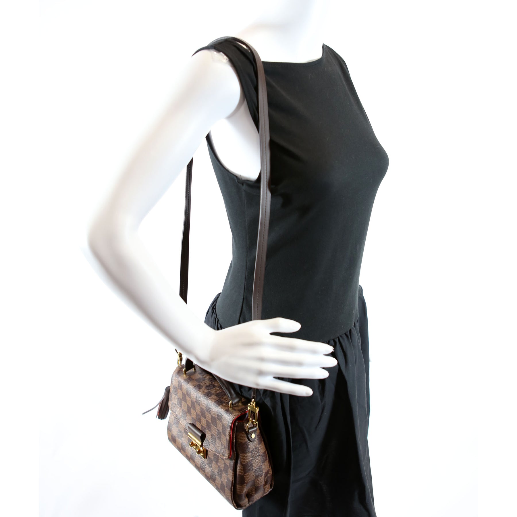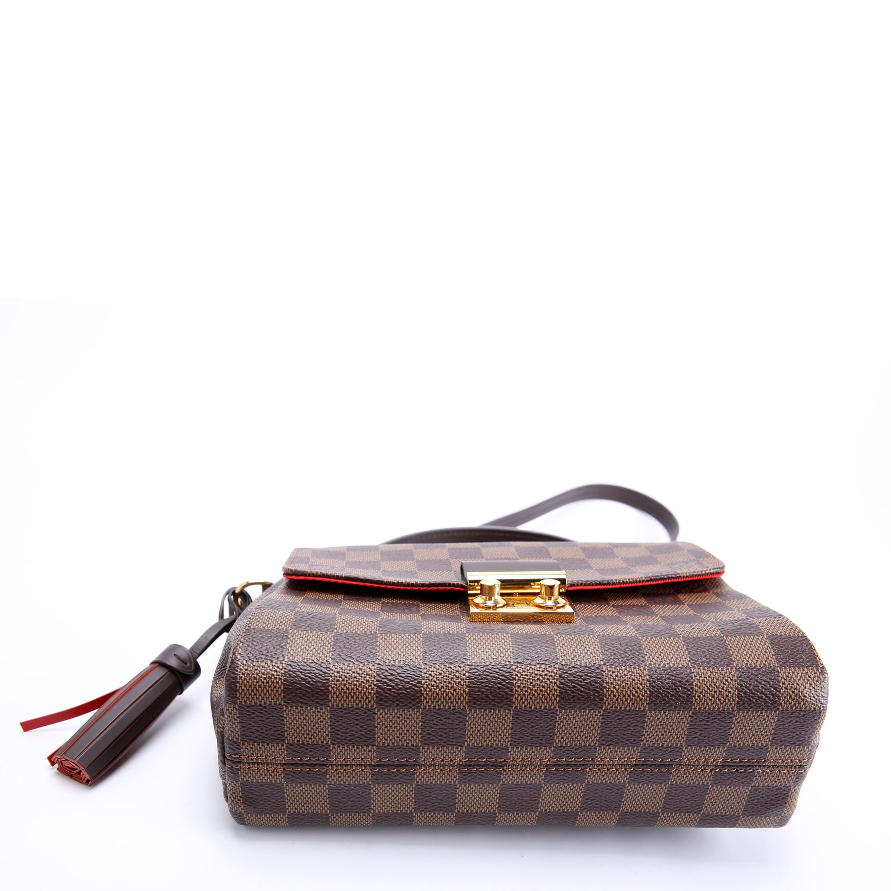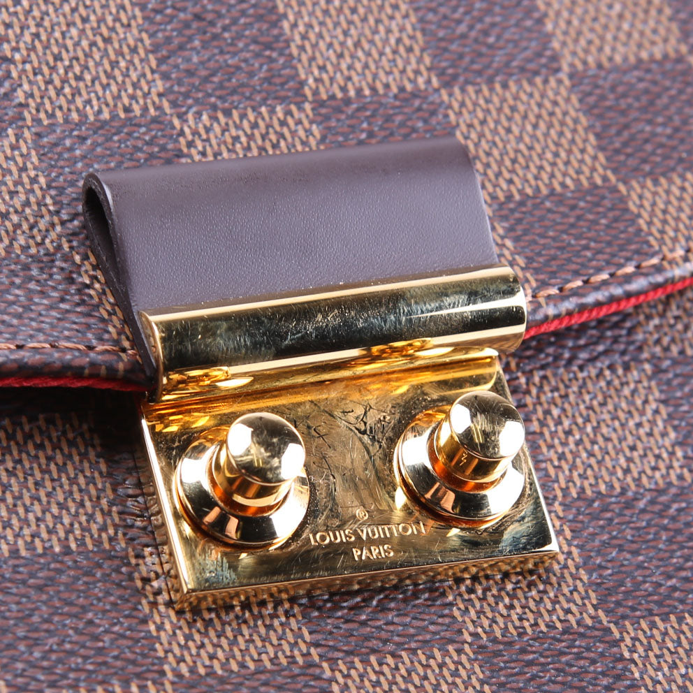 This pre-owned Louis Vuitton Croisette is guaranteed 100% authentic. The exterior is in the classic Louis Vuitton Damier Ebene coated canvas.