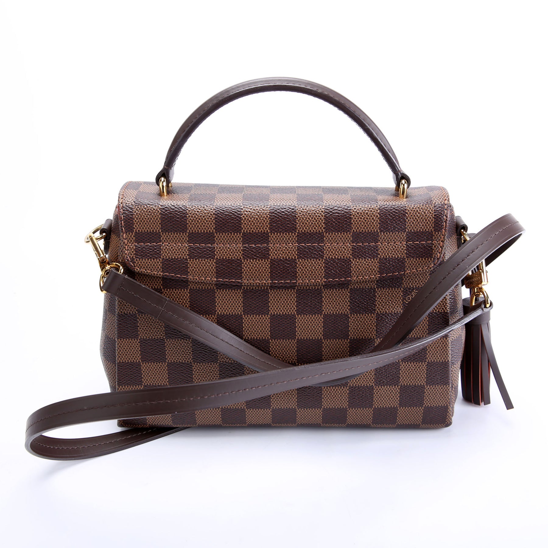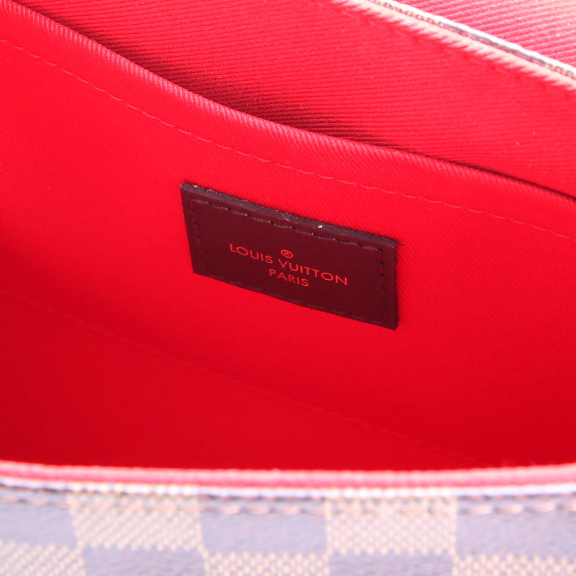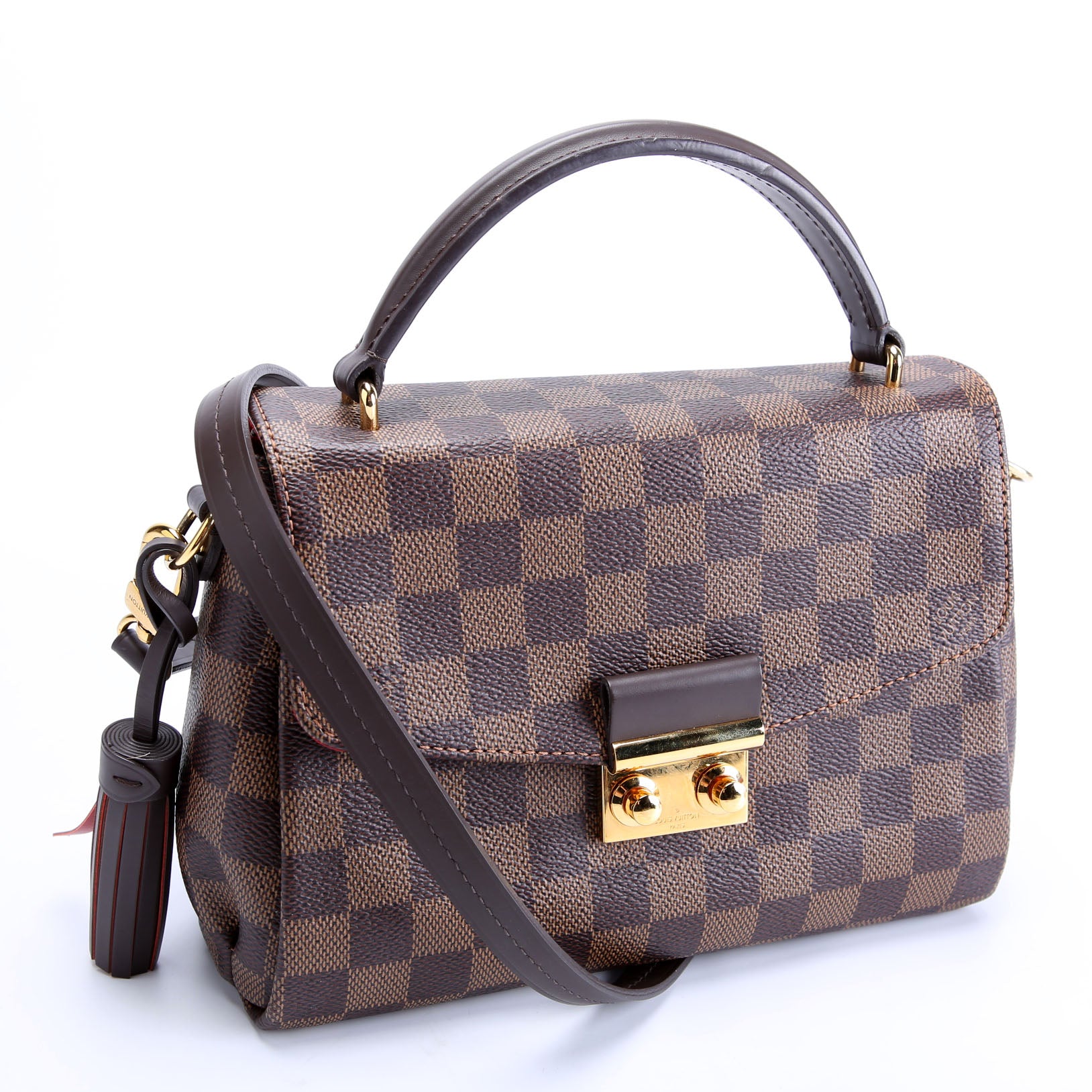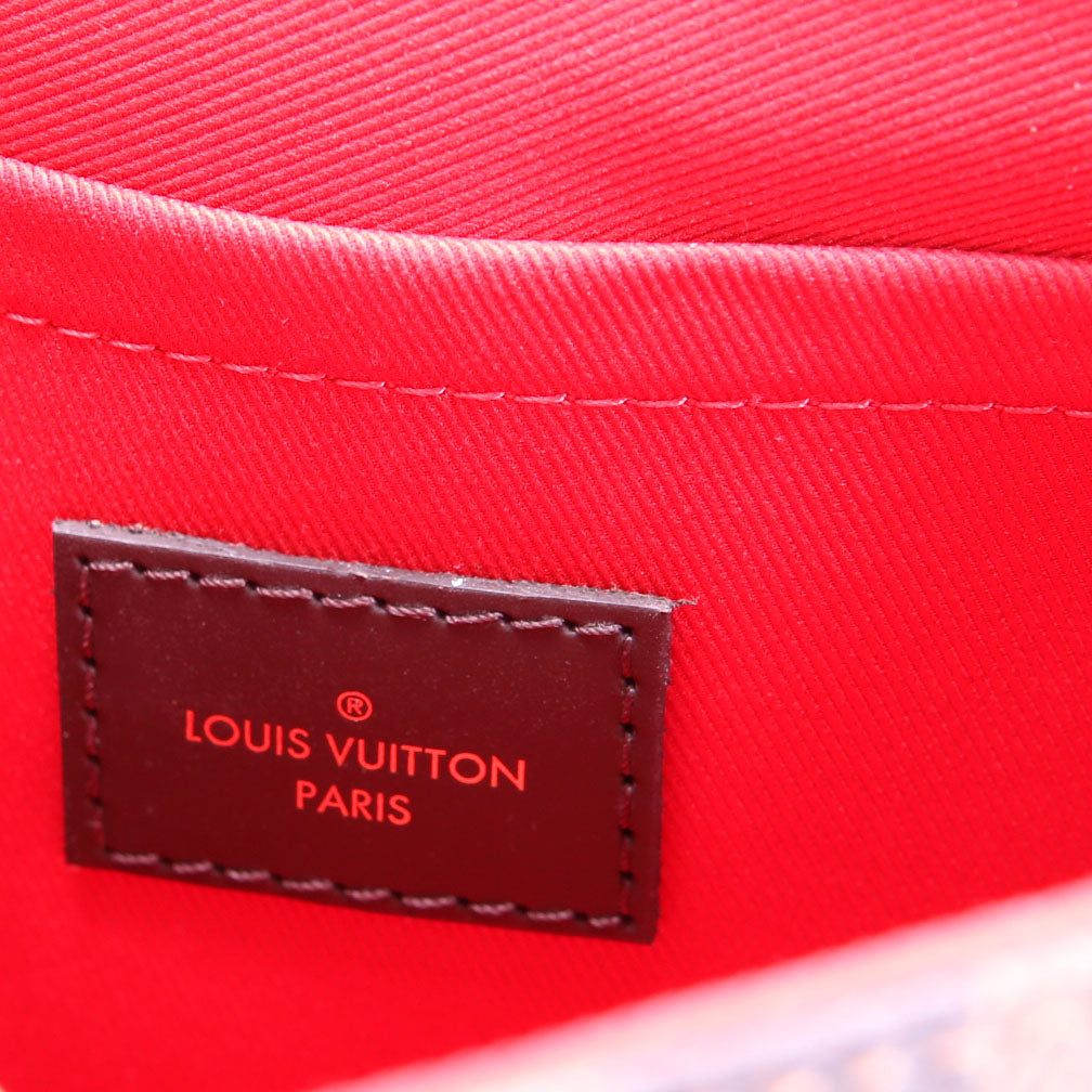 This pre-owned Louis Vuitton Croisette is guaranteed 100% authentic. The exterior is in the classic Louis Vuitton Damier Ebene coated canvas.