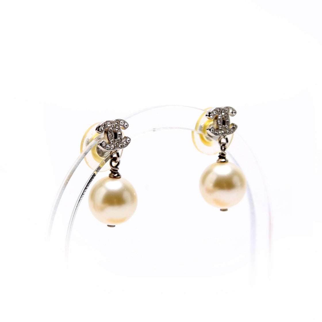 These pre-owned Chanel Crystal CC Pearl Drop Earrings are guaranteed 100% authentic.
