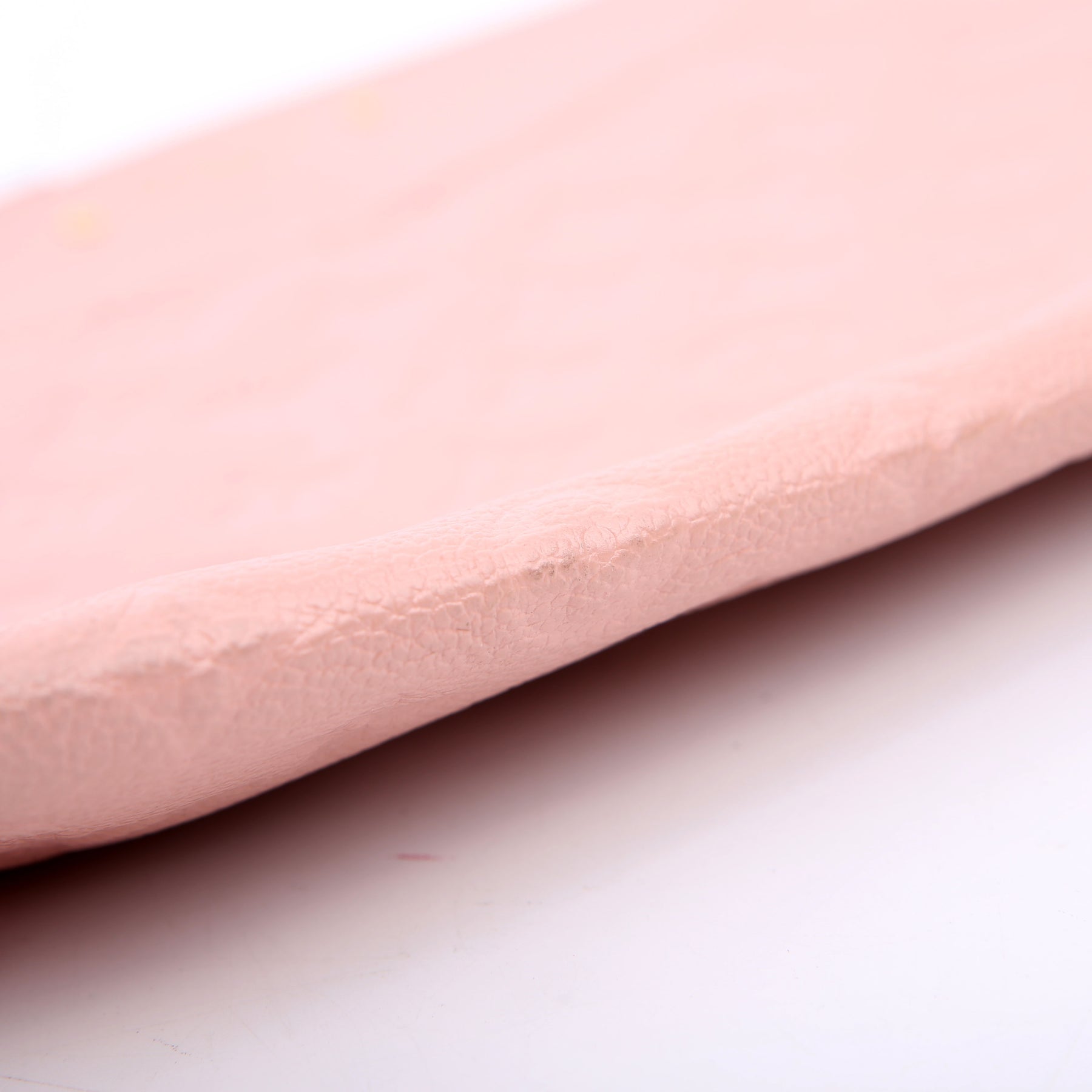 Exterior: The exterior leather shows light discoloration throughout. The corners and edges show minor wear and discoloration.