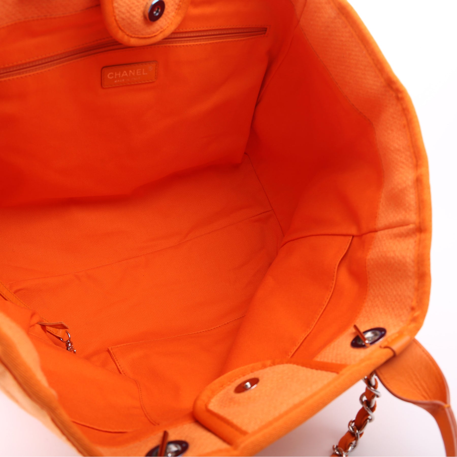 This pre-owned Chanel Deauville Mixed Fibers Tote Medium is guaranteed 100% authentic.