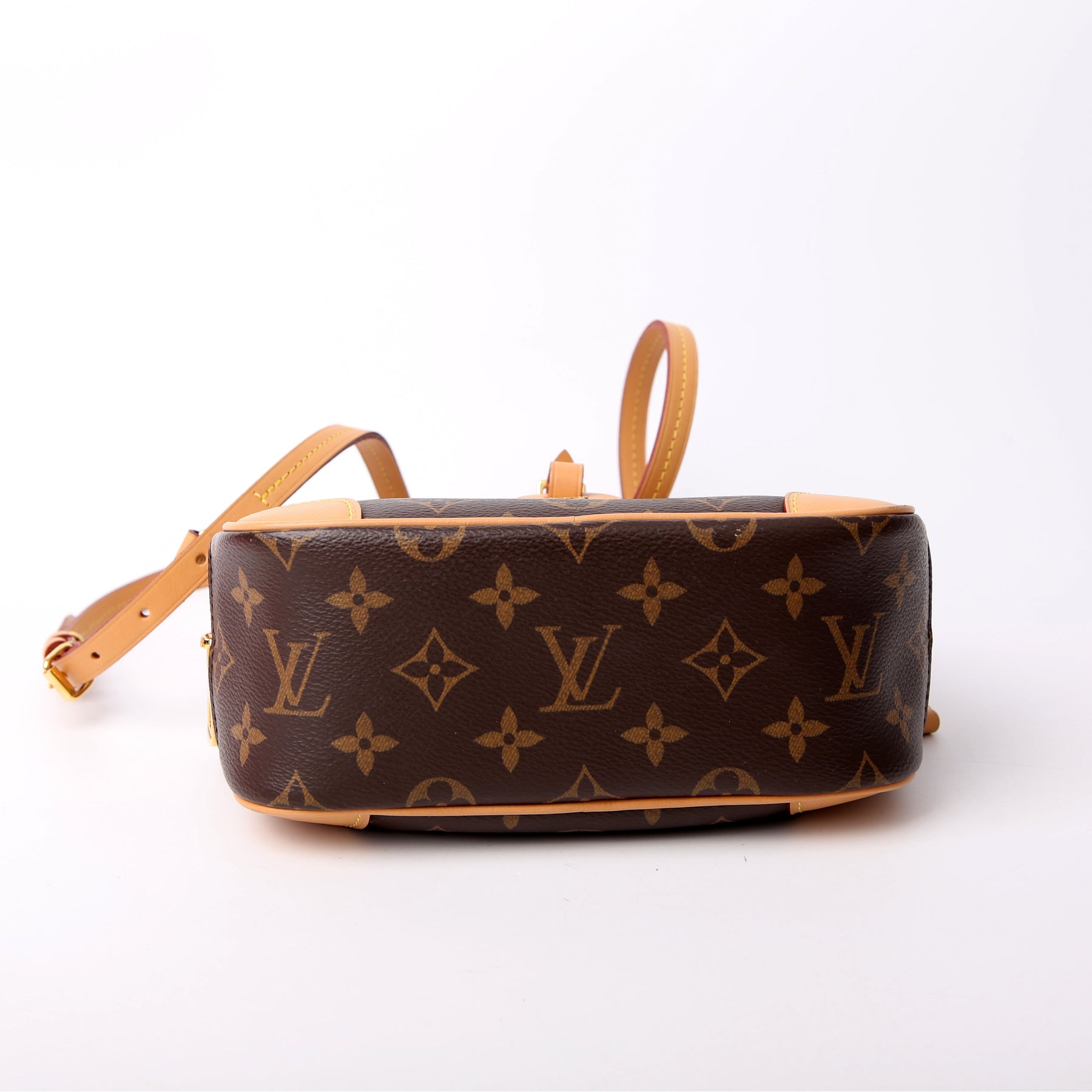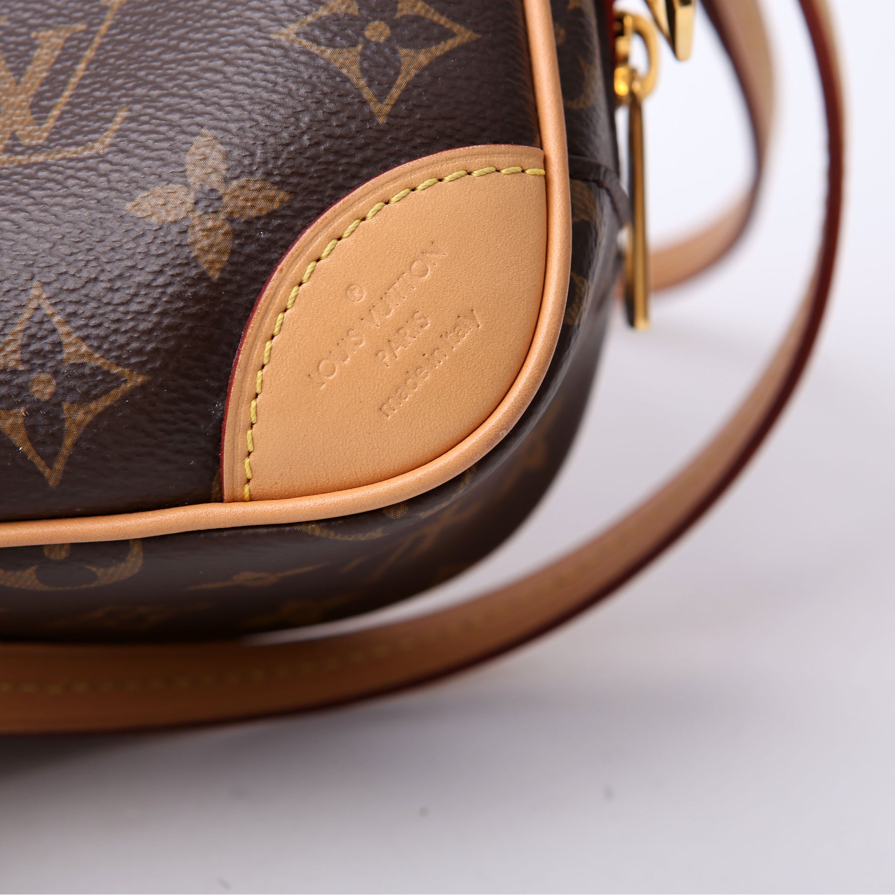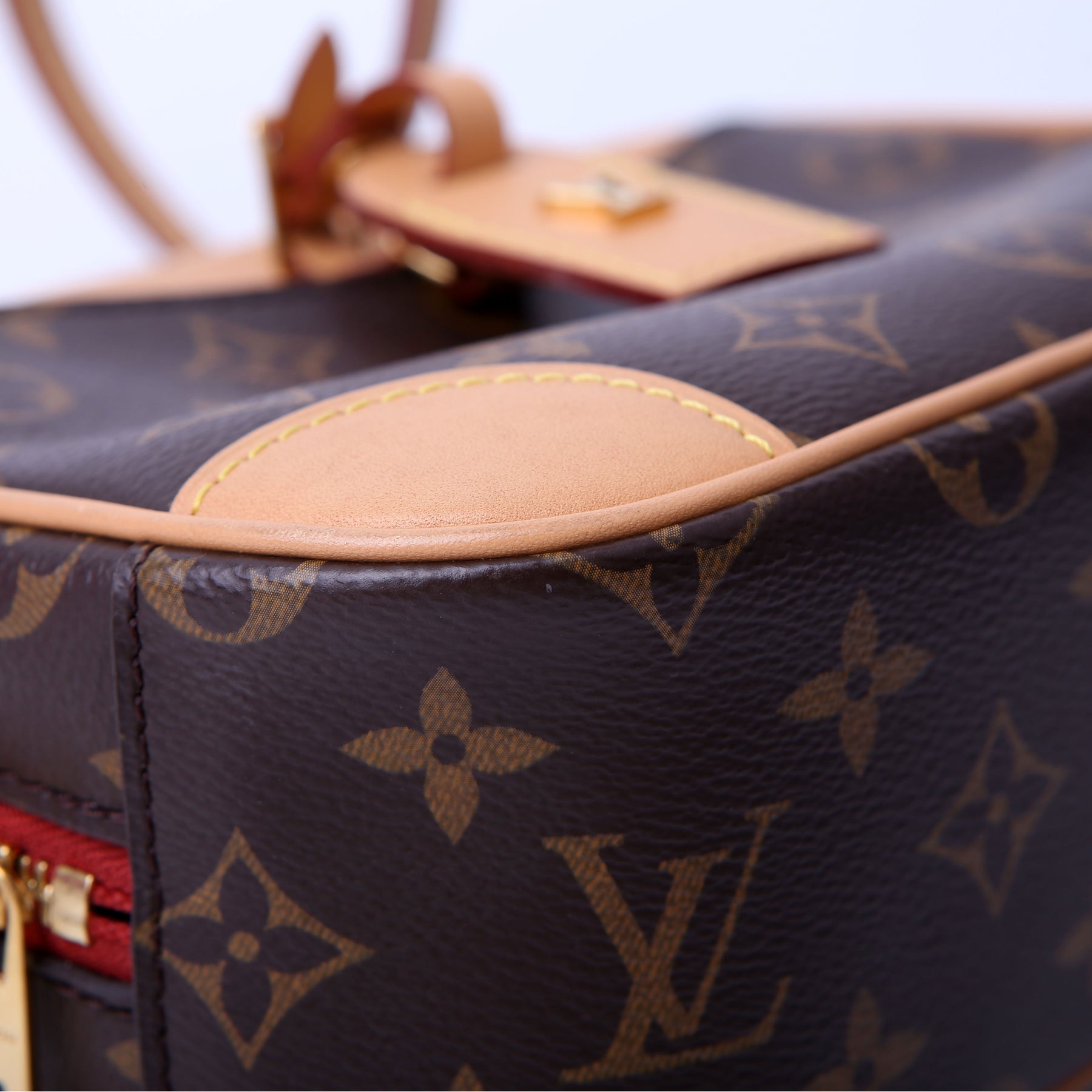 This pre-owned Louis Vuitton Mini Deauville is guaranteed 100% authentic. The exterior is in the classic Louis Vuitton Monogram coated canvas.