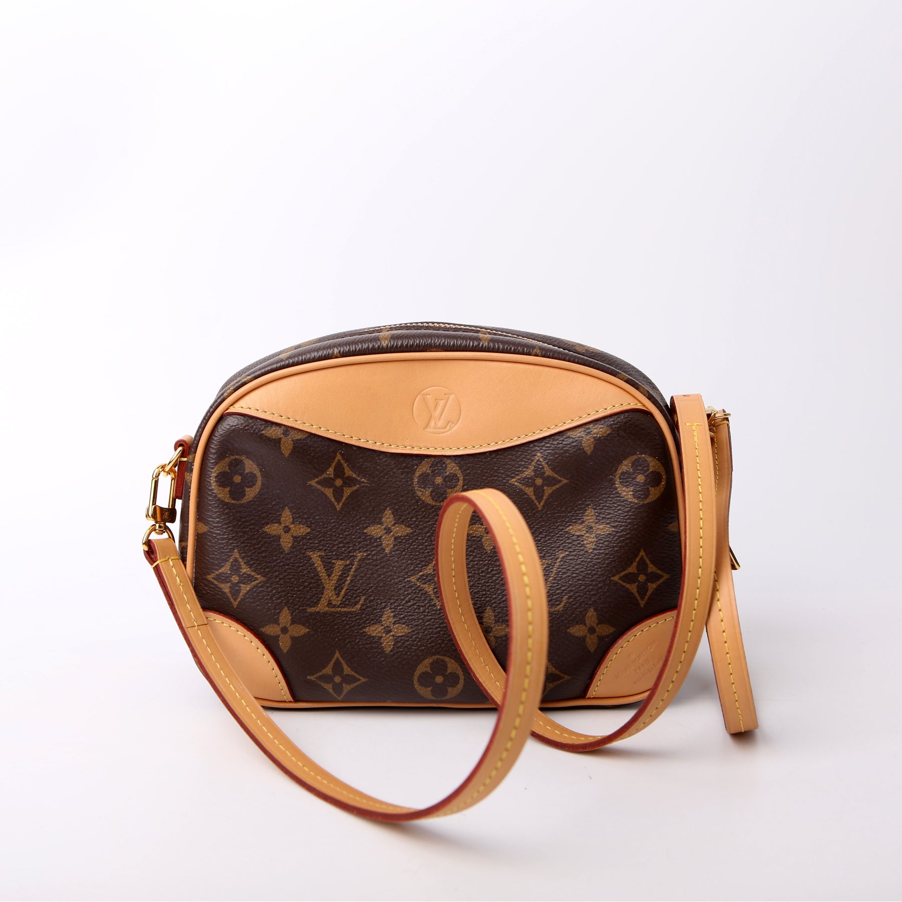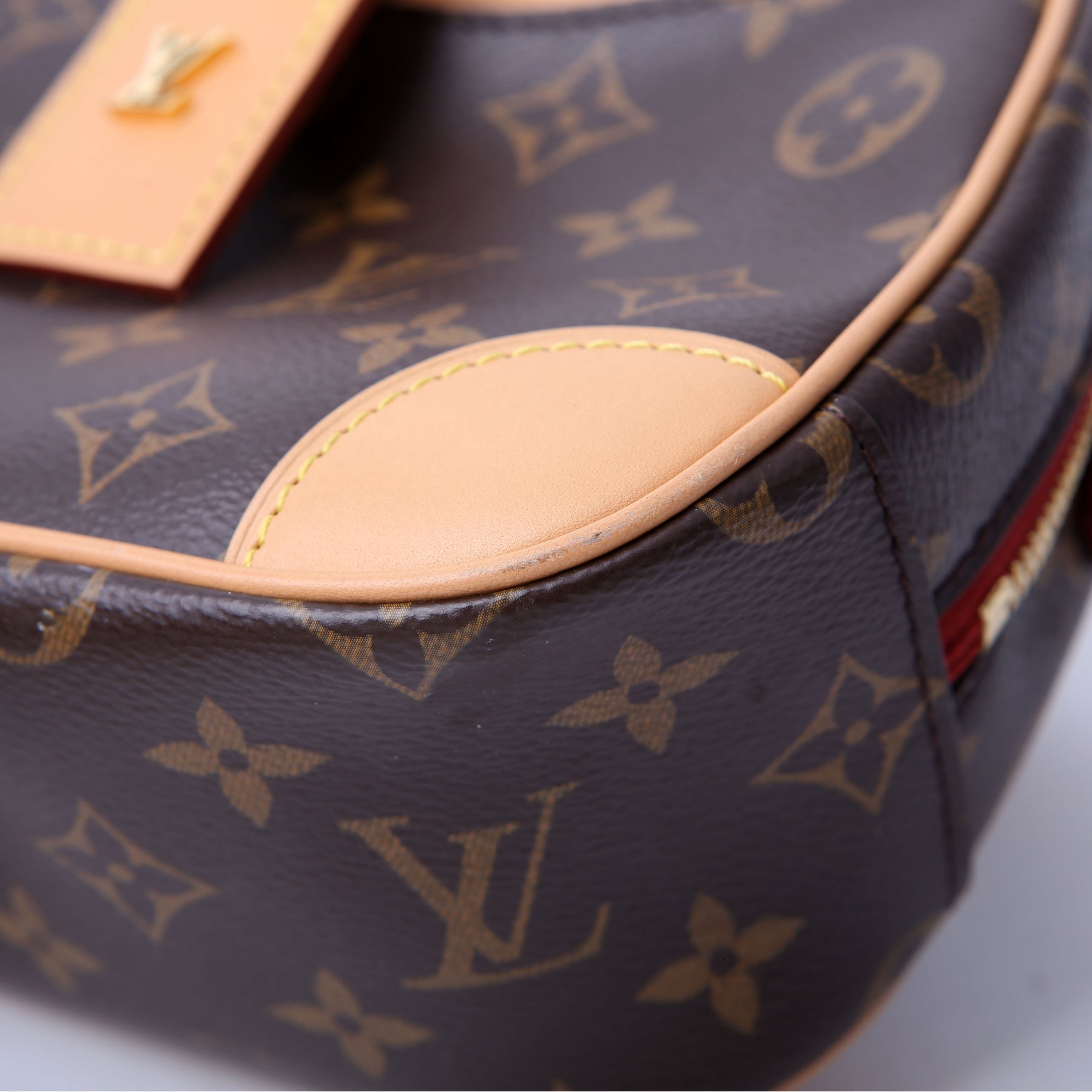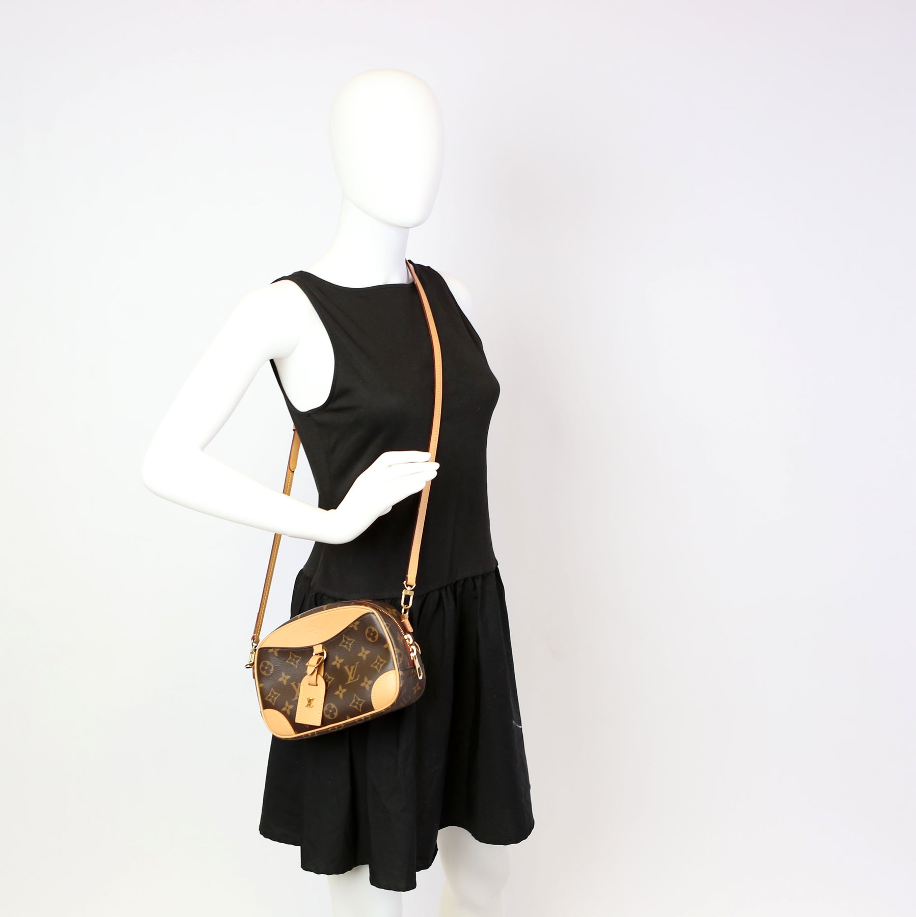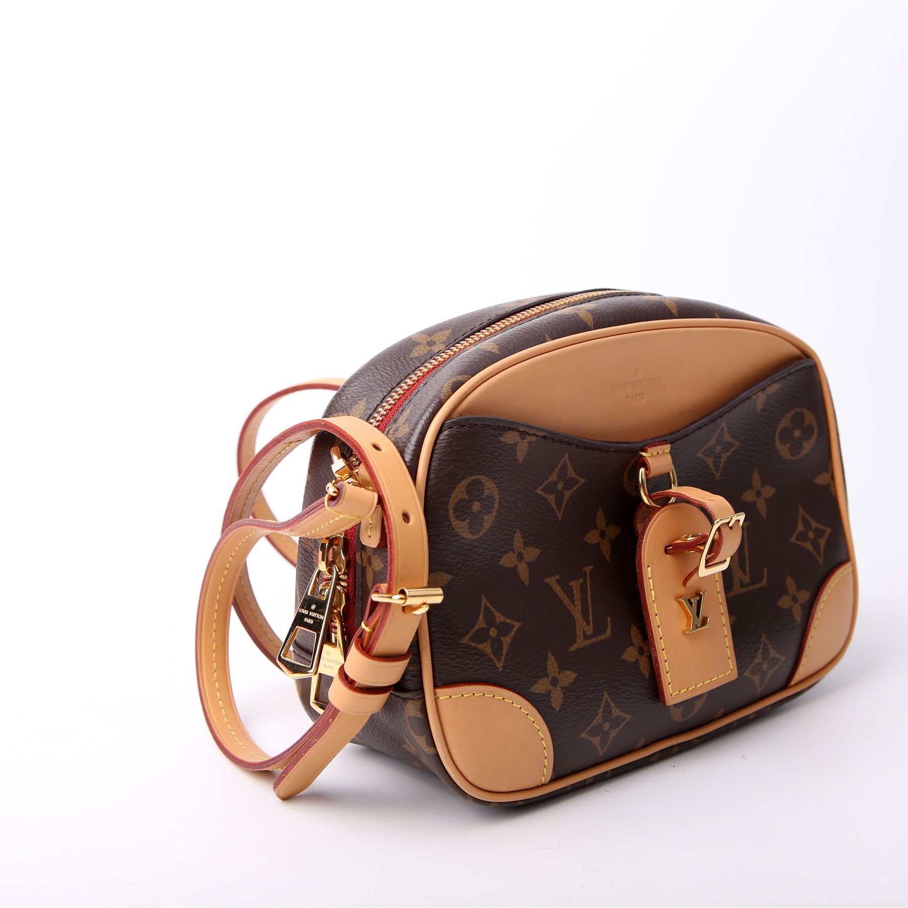 This pre-owned Louis Vuitton Mini Deauville is guaranteed 100% authentic. The exterior is in the classic Louis Vuitton Monogram coated canvas.