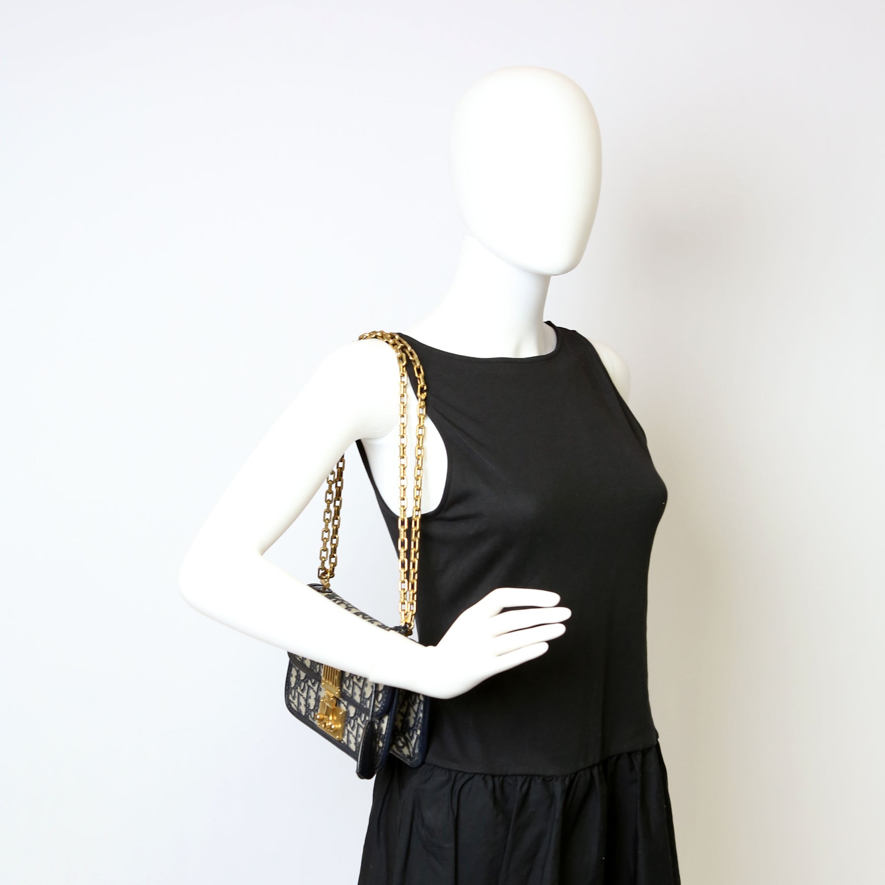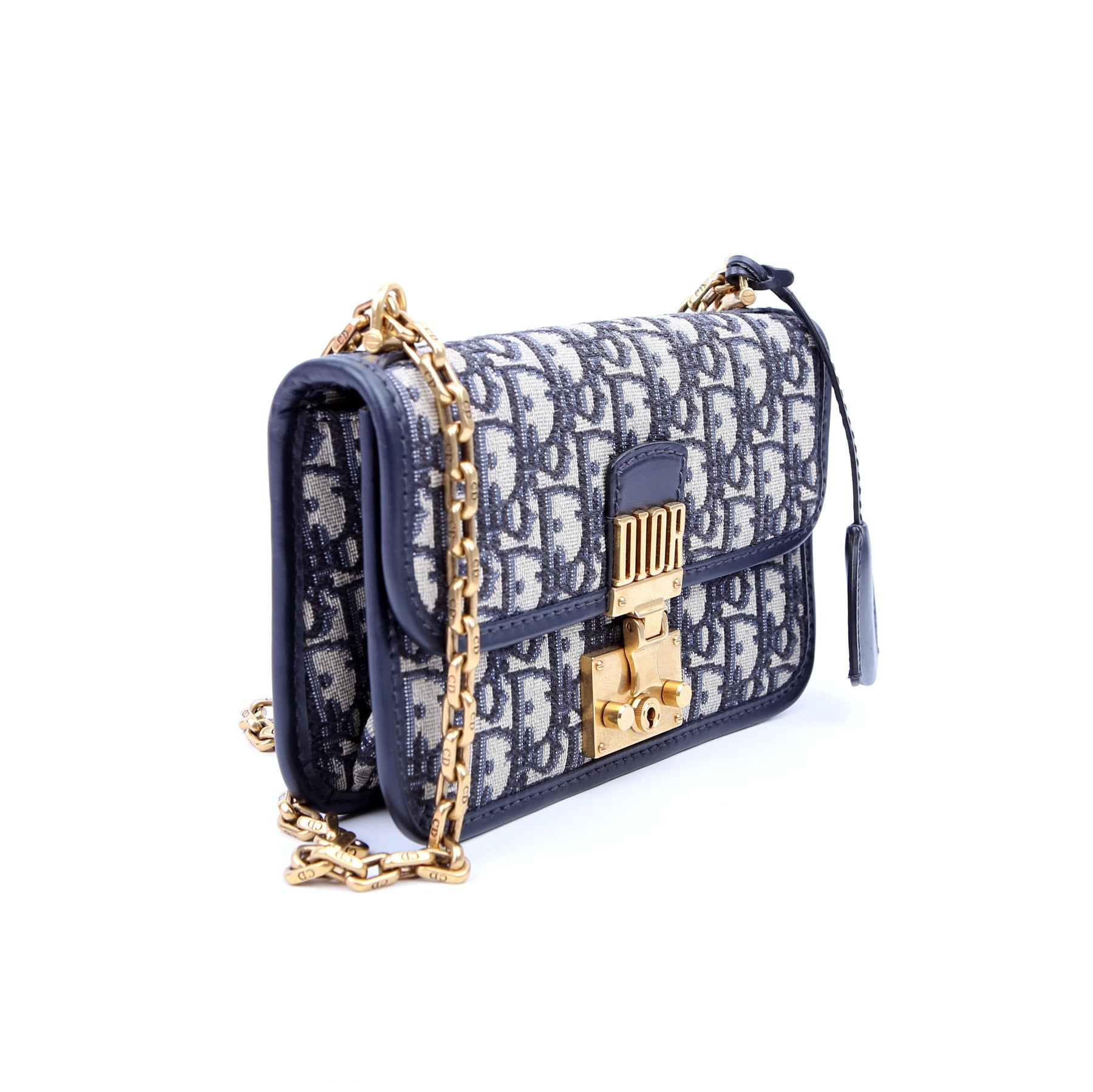 This pre-owned Christian Dior Dioraddict Wallet On Chain Bag is guaranteed 100% authentic. The exterior is in the classic Dior Oblique canvas.