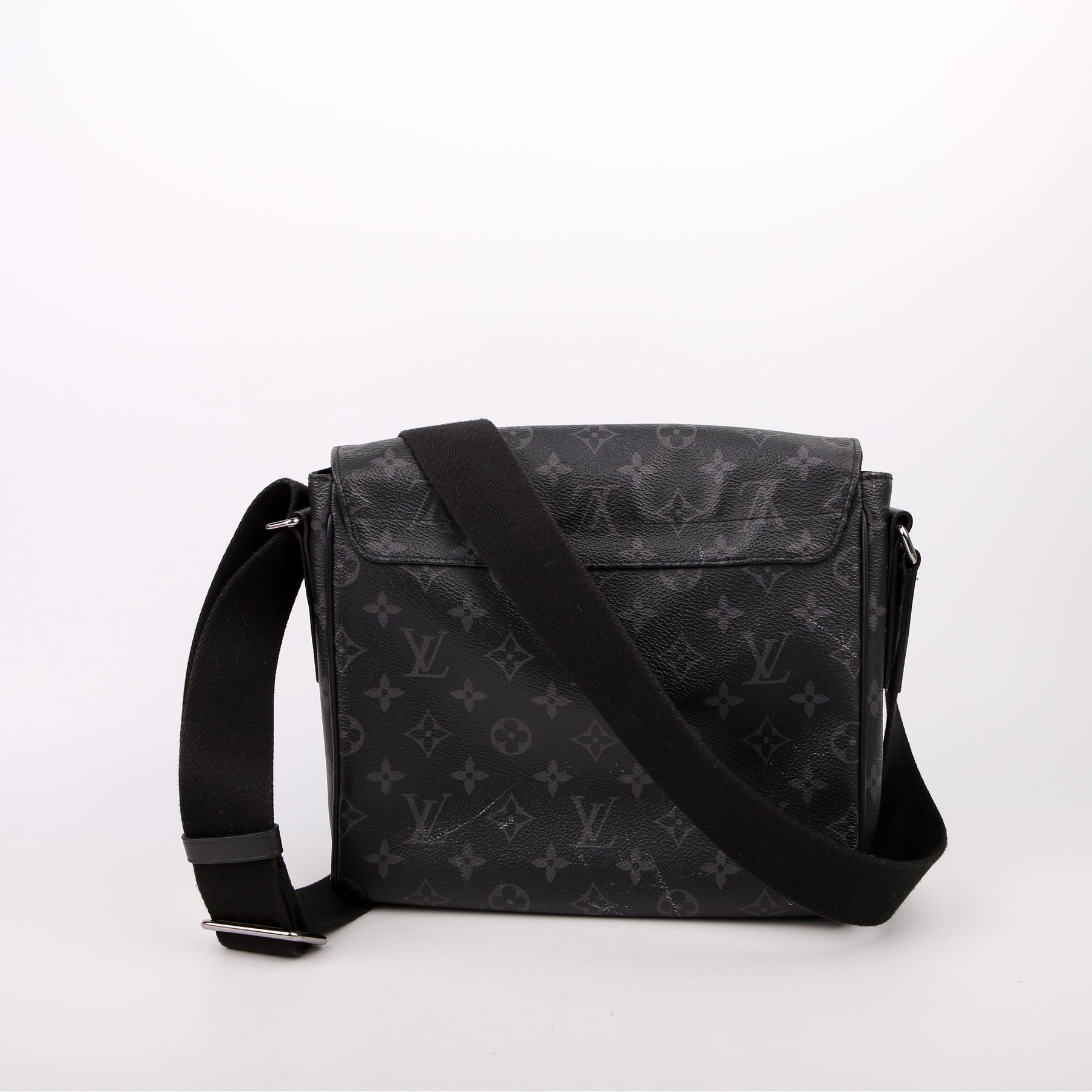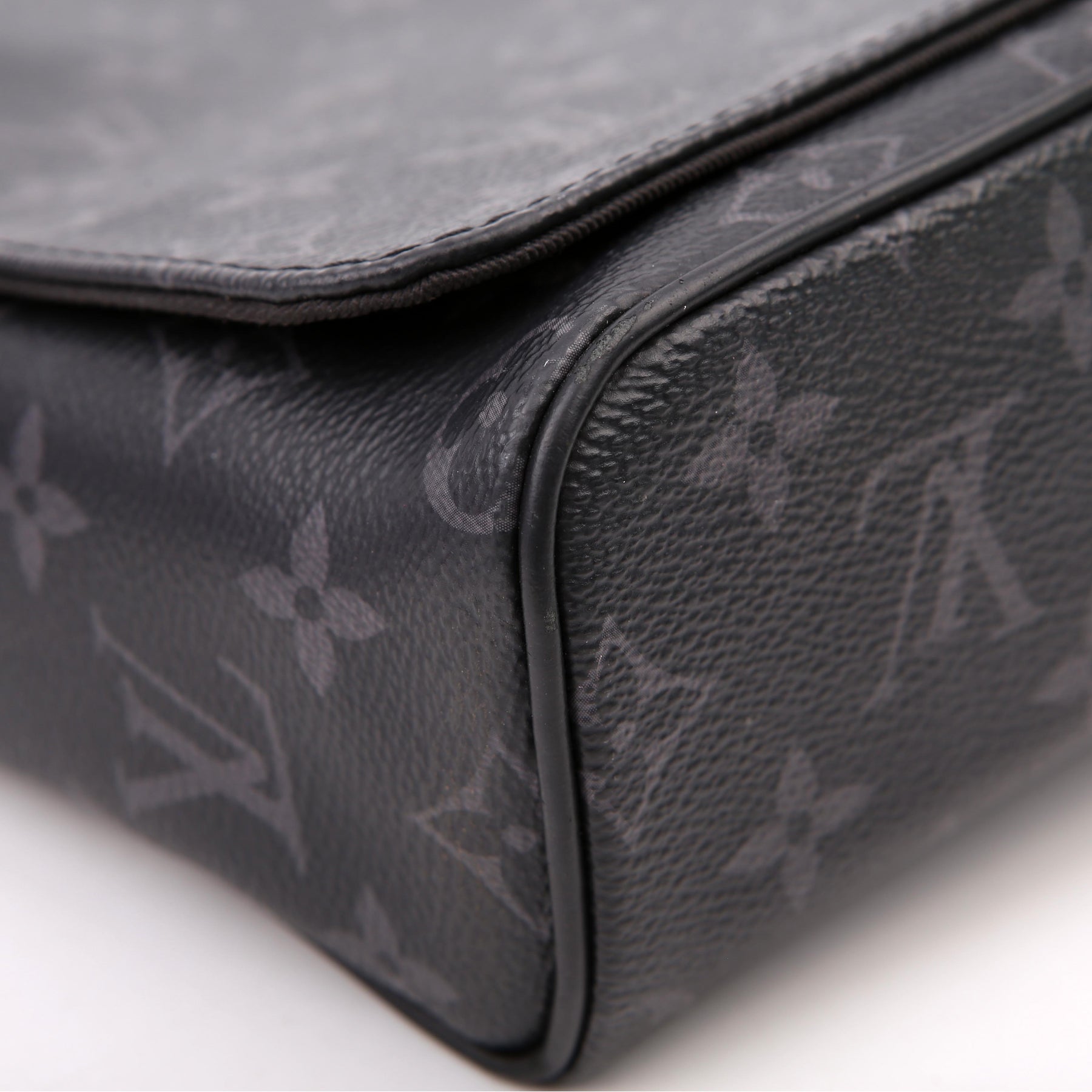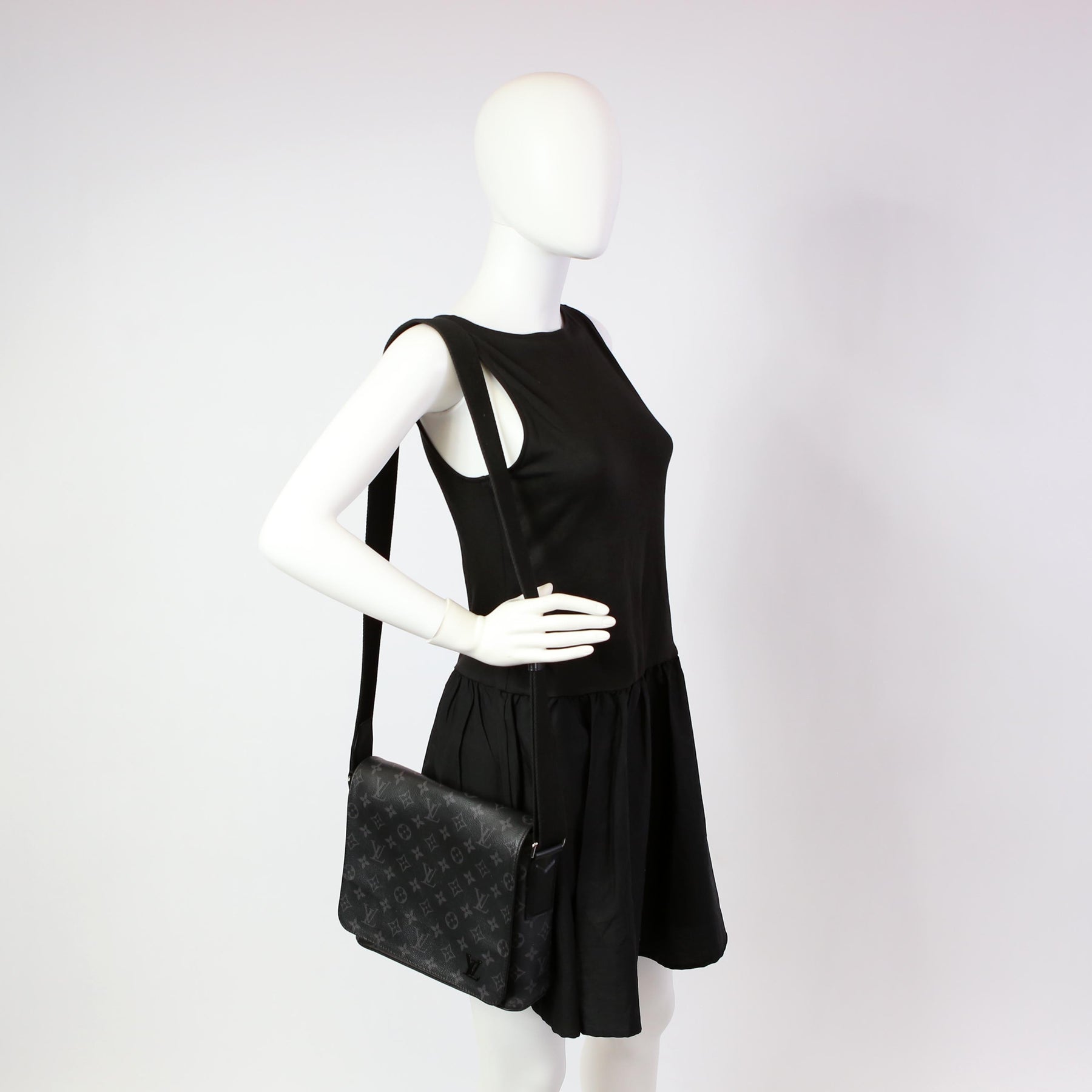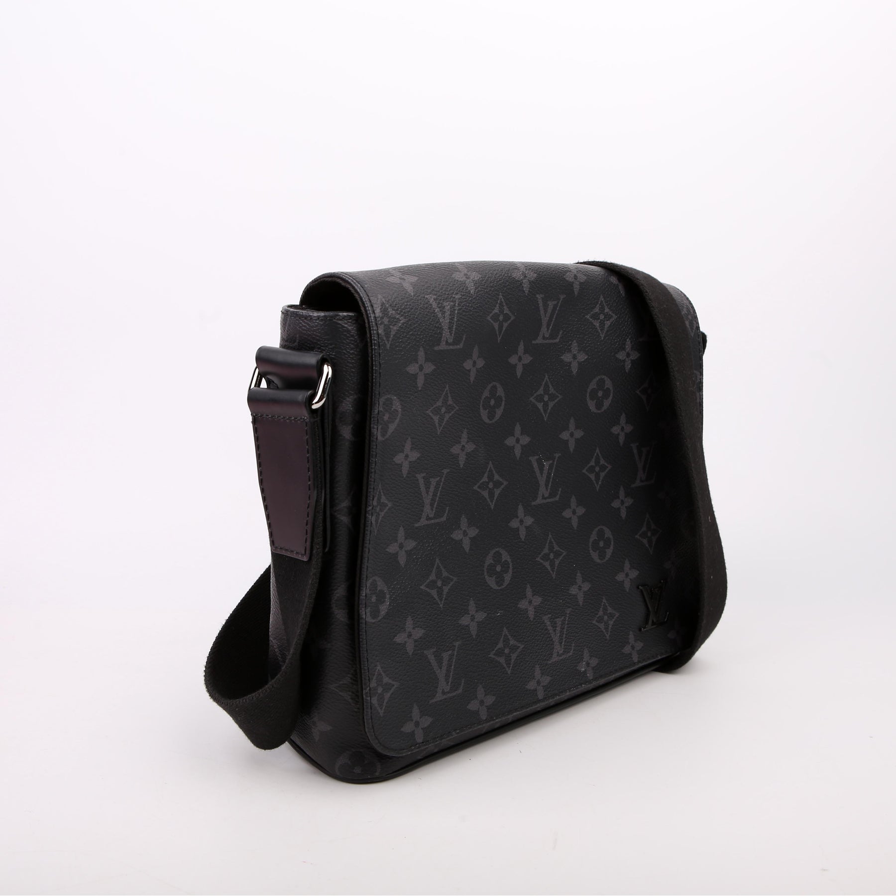 This pre-owned Louis Vuitton District PM is guaranteed 100% authentic. The exterior is in the classic Louis Vuitton Monogram Eclipse coated canvas.