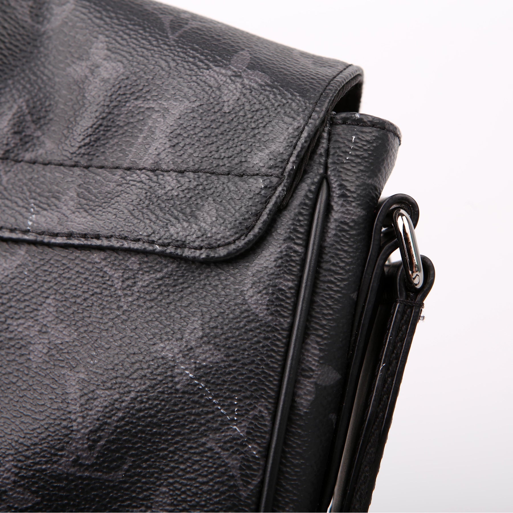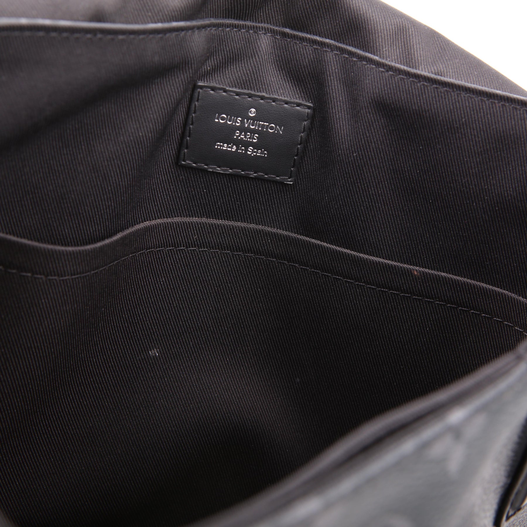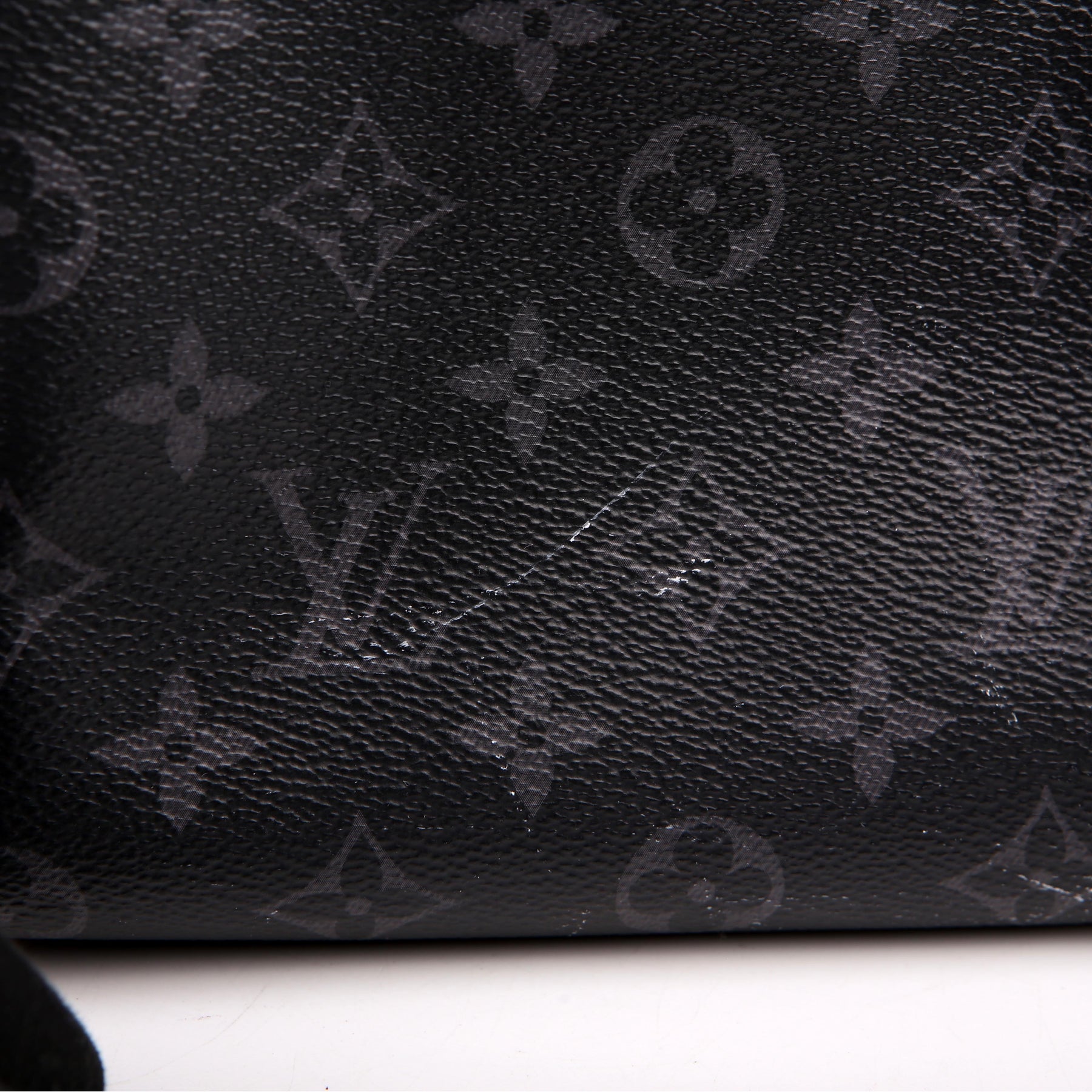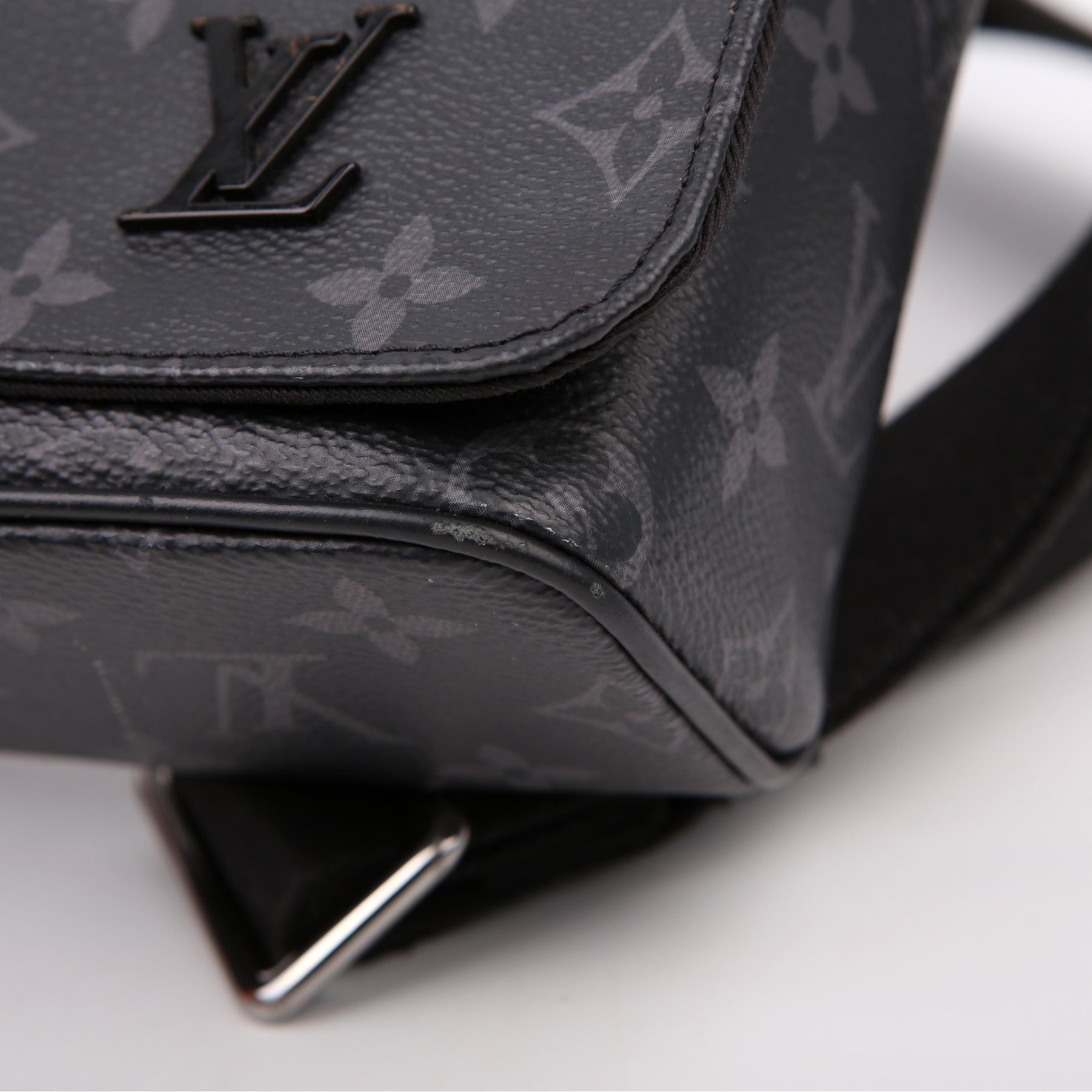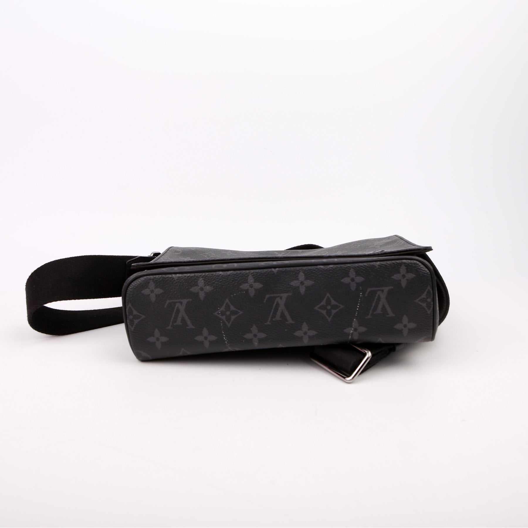 This pre-owned Louis Vuitton District PM is guaranteed 100% authentic. The exterior is in the classic Louis Vuitton Monogram Eclipse coated canvas.