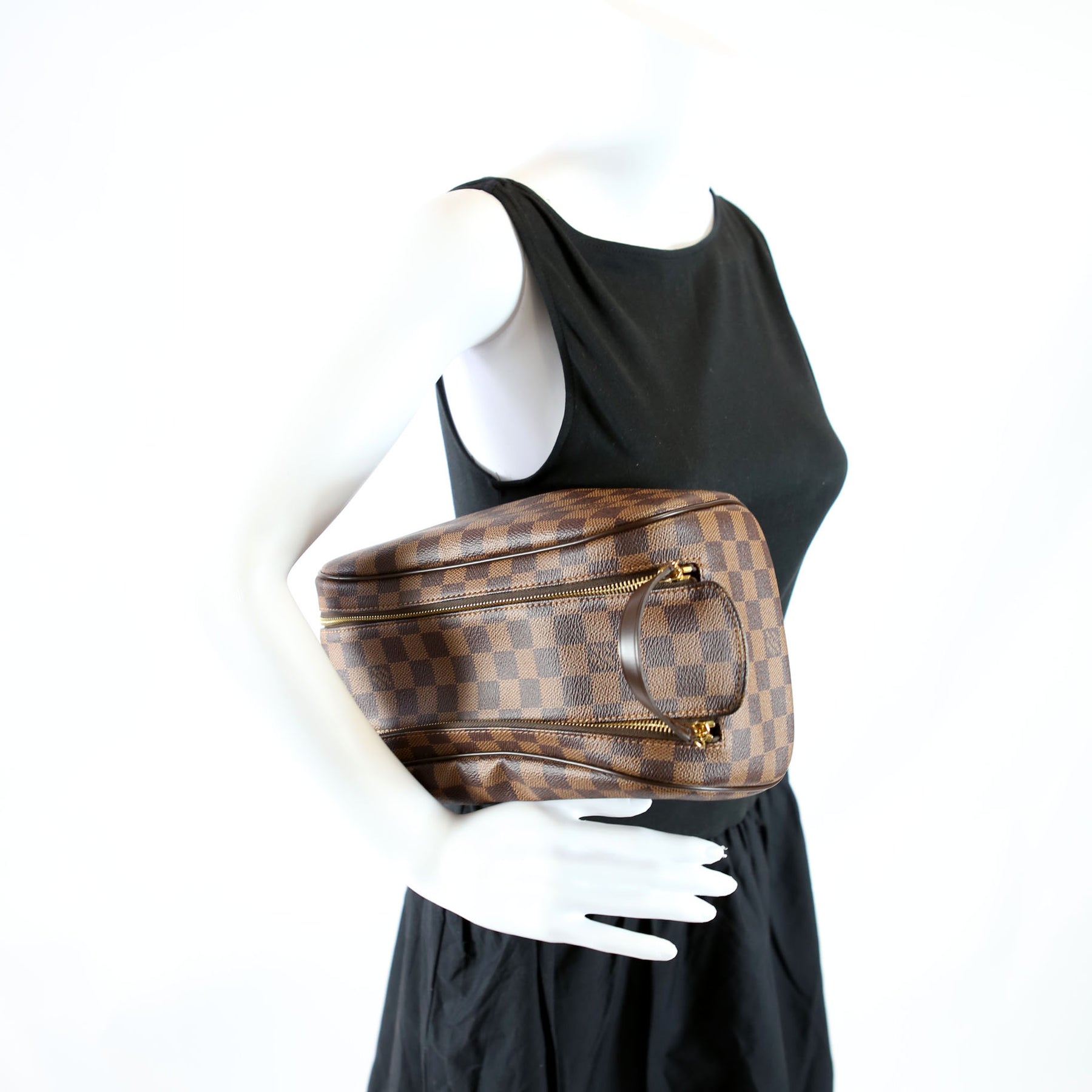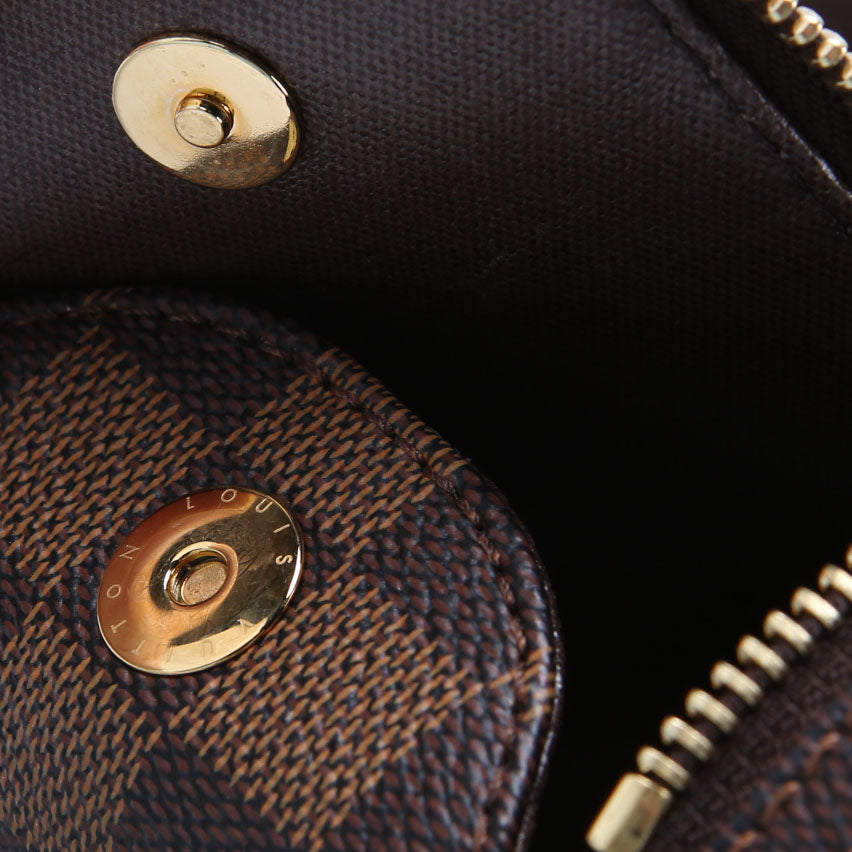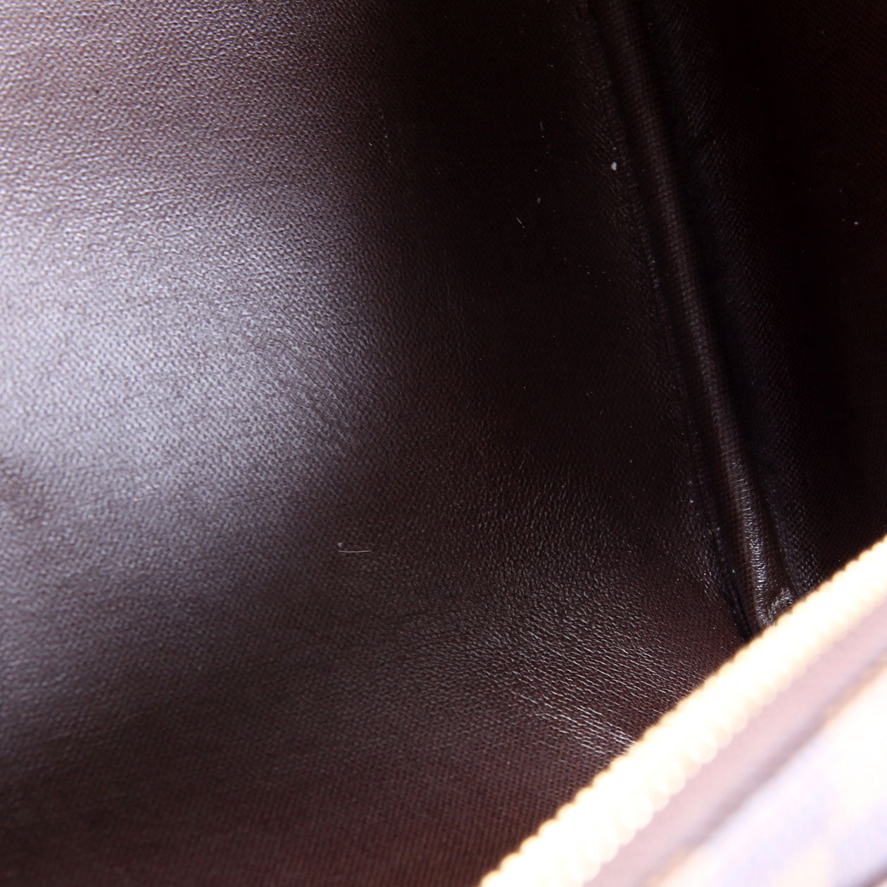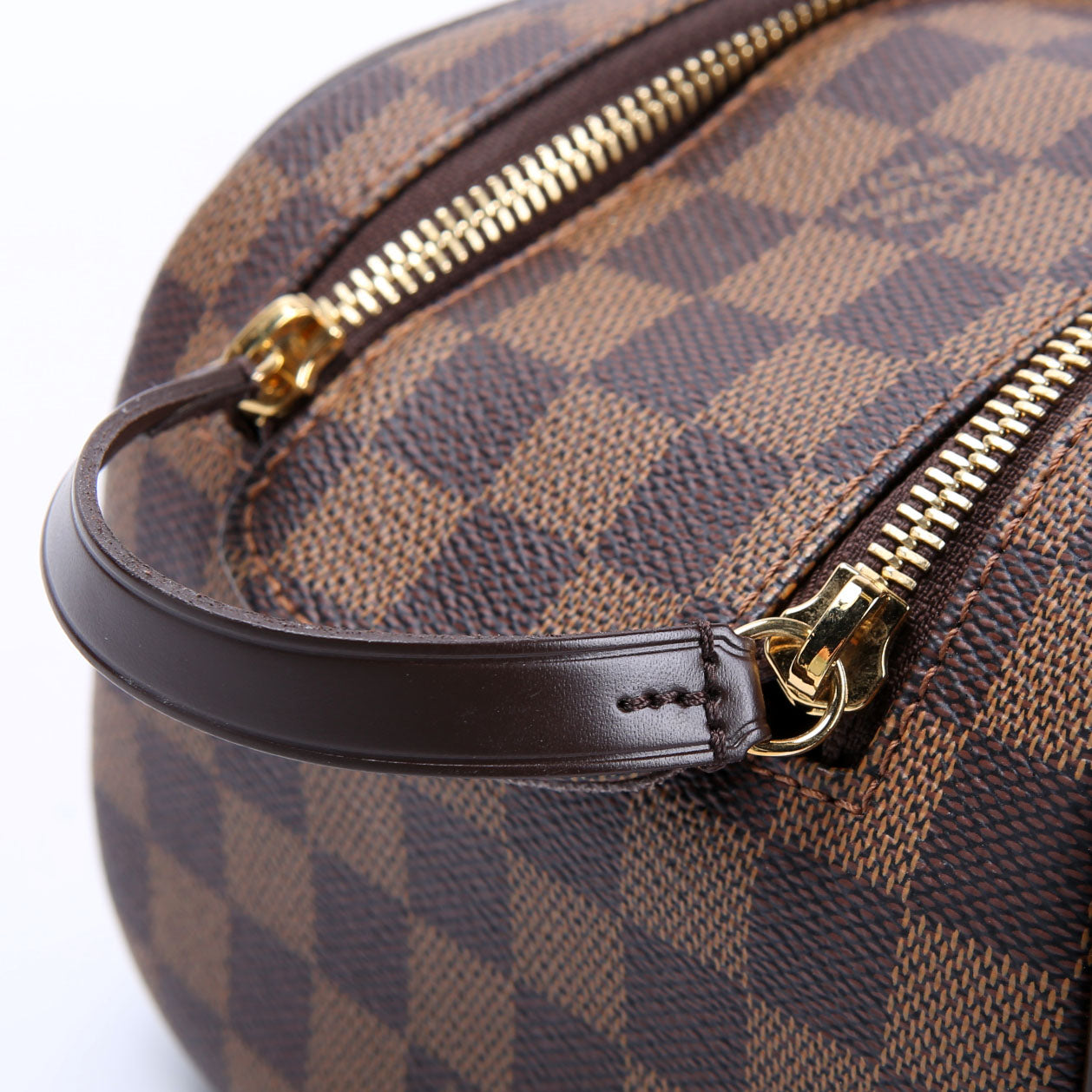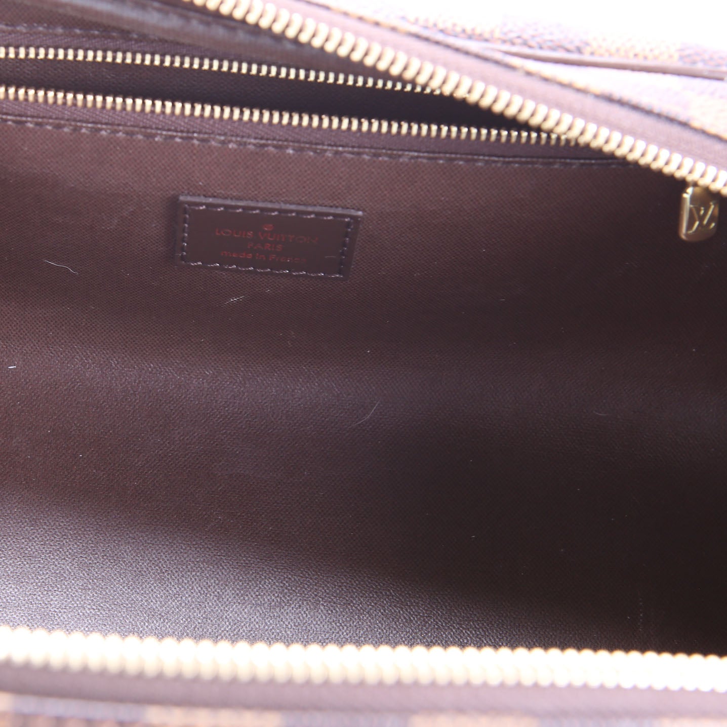 This pre-owned Louis Vuitton Dopp Kit Toilet Pouch is guaranteed 100% authentic. The exterior is in the classic Louis Vuitton Coated Canvas Damier Ebene