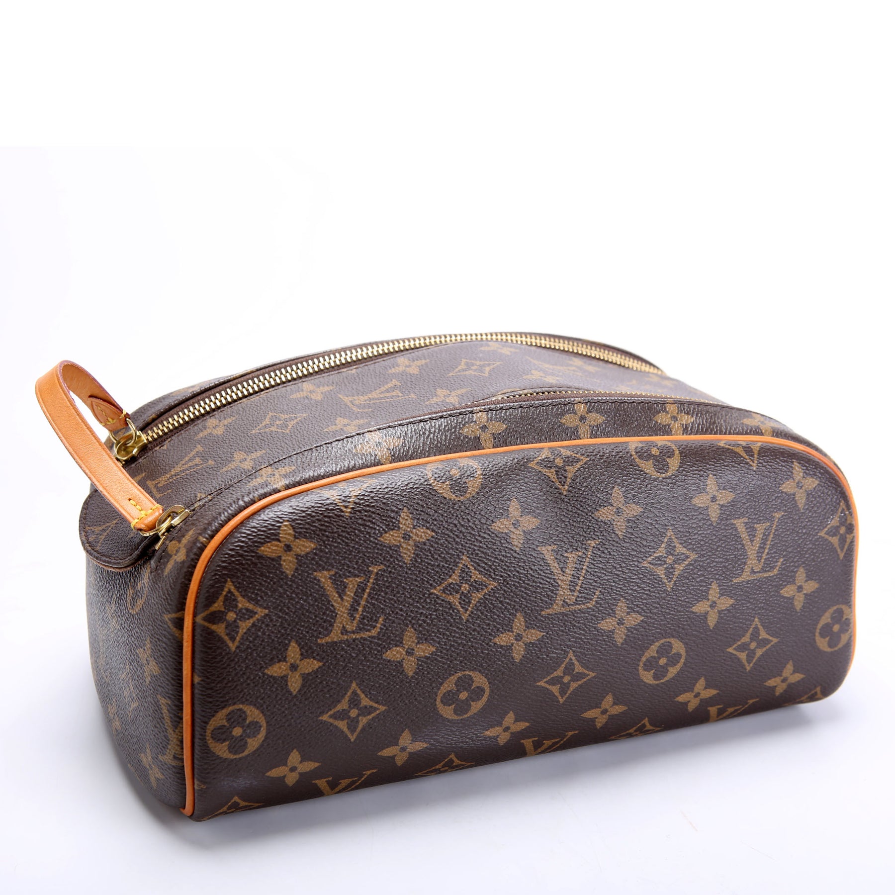 This pre-owned Louis Vuitton Dopp Kit Toilet Pouch is guaranteed 100% authentic. The exterior is in the classic Louis Vuitton Monogram Coated Canvas.