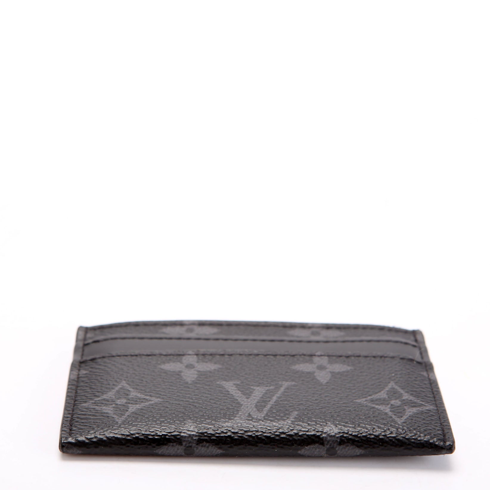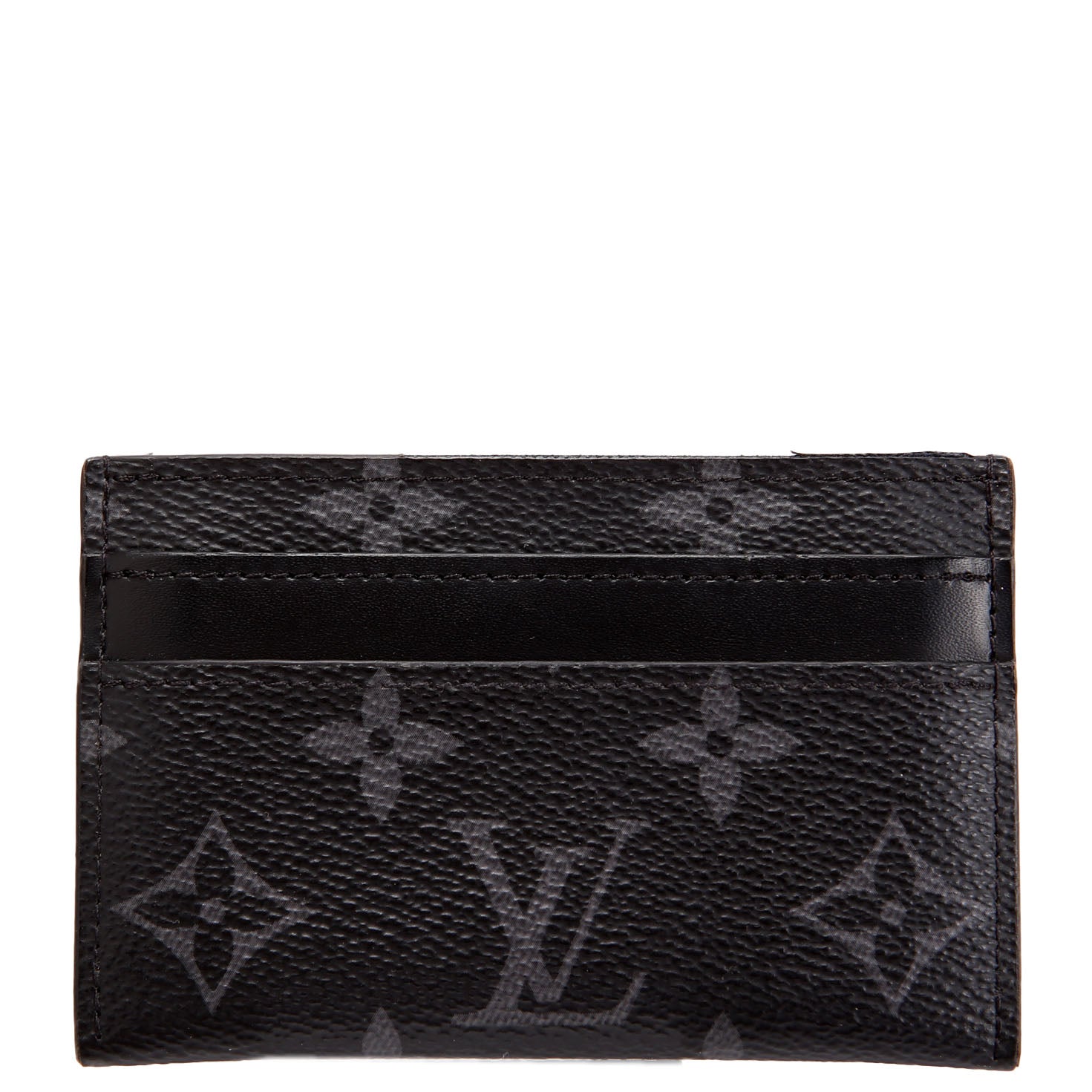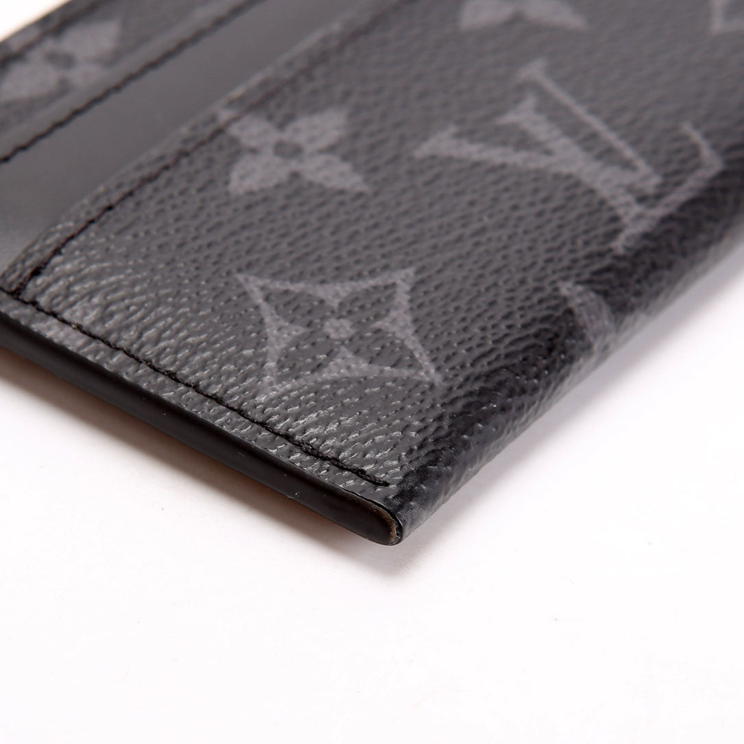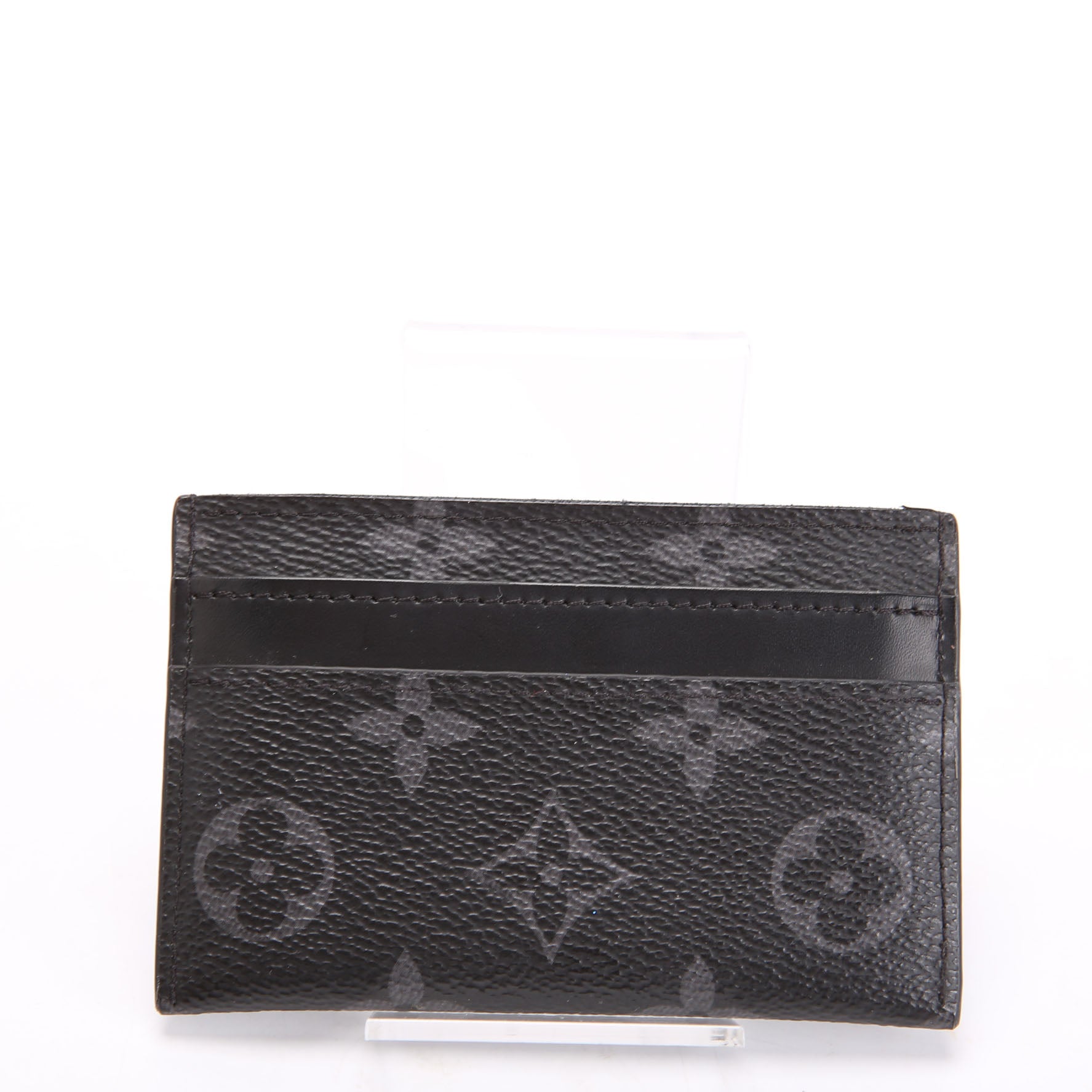 This pre-owned Louis Vuitton Double Card Holder Eclipse is guaranteed 100% authentic. The exterior is in the classic Louis Vuitton Coated Canvas Eclipse Monogram.