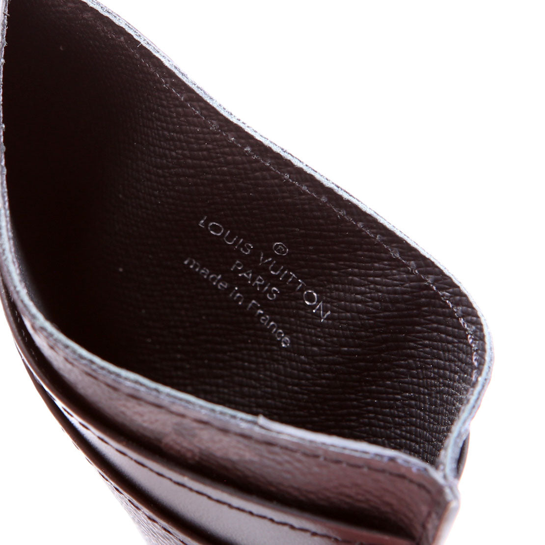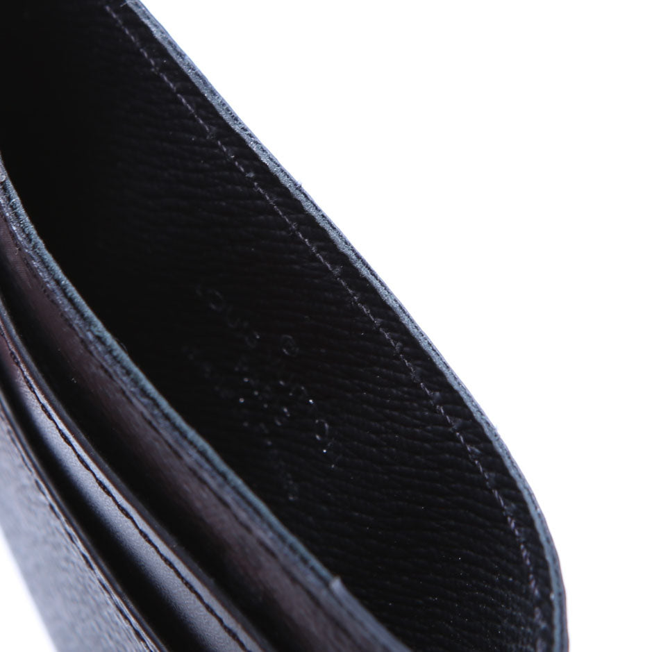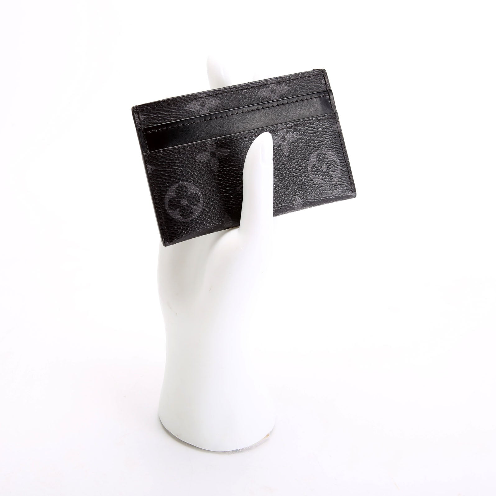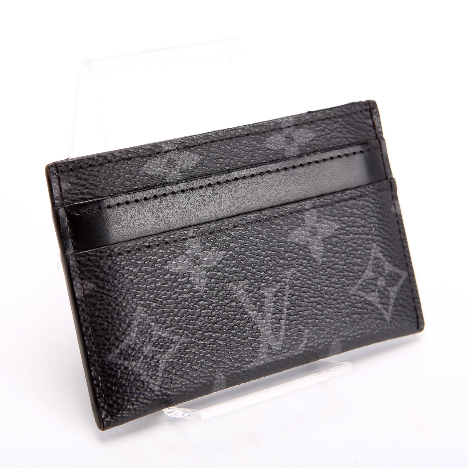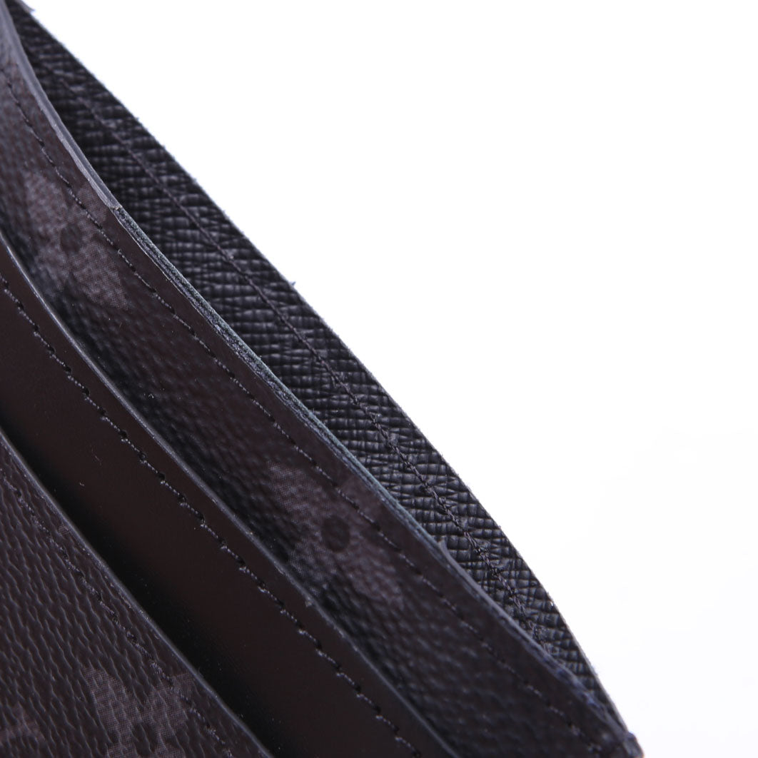 This pre-owned Louis Vuitton Double Card Holder Eclipse is guaranteed 100% authentic. The exterior is in the classic Louis Vuitton Coated Canvas Eclipse Monogram.
