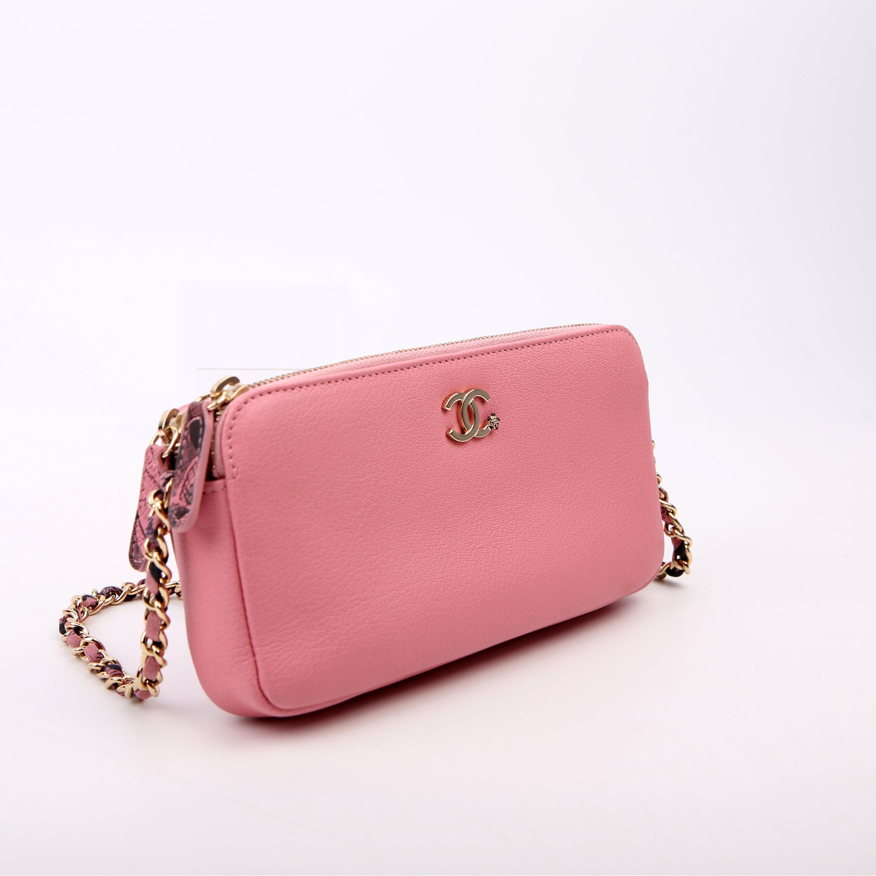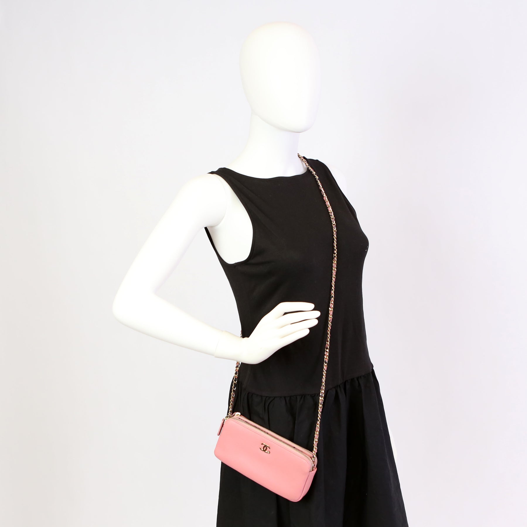 This pre-owned Chanel WOC CC Double Zip is guaranteed 100% authentic.