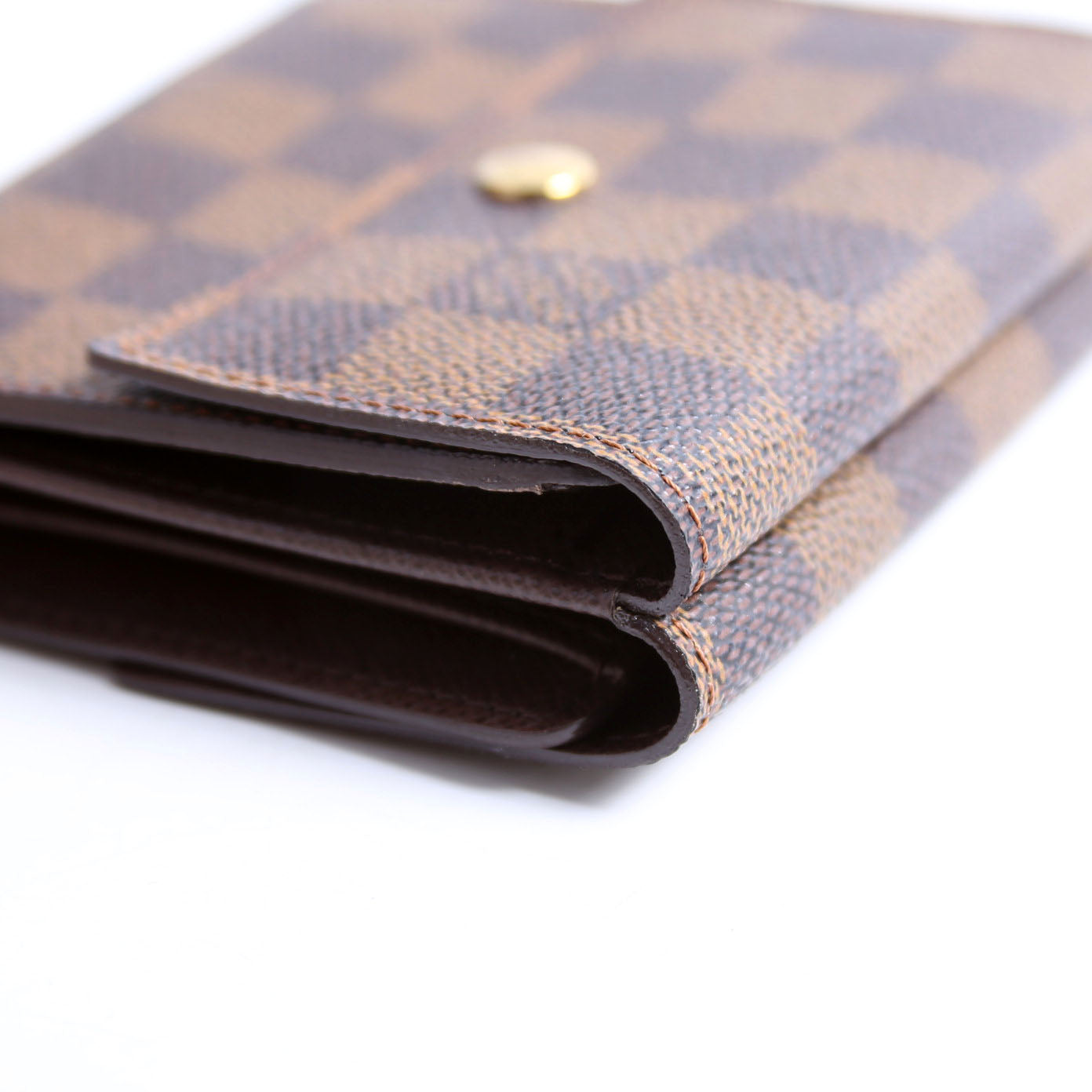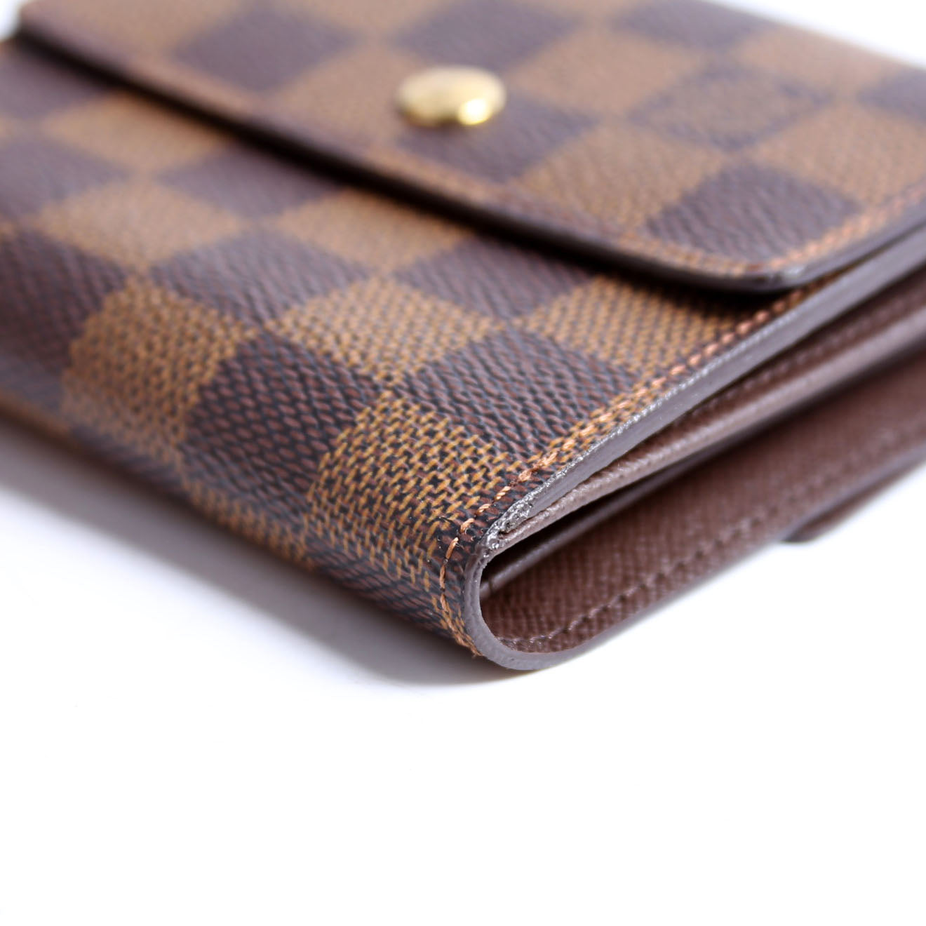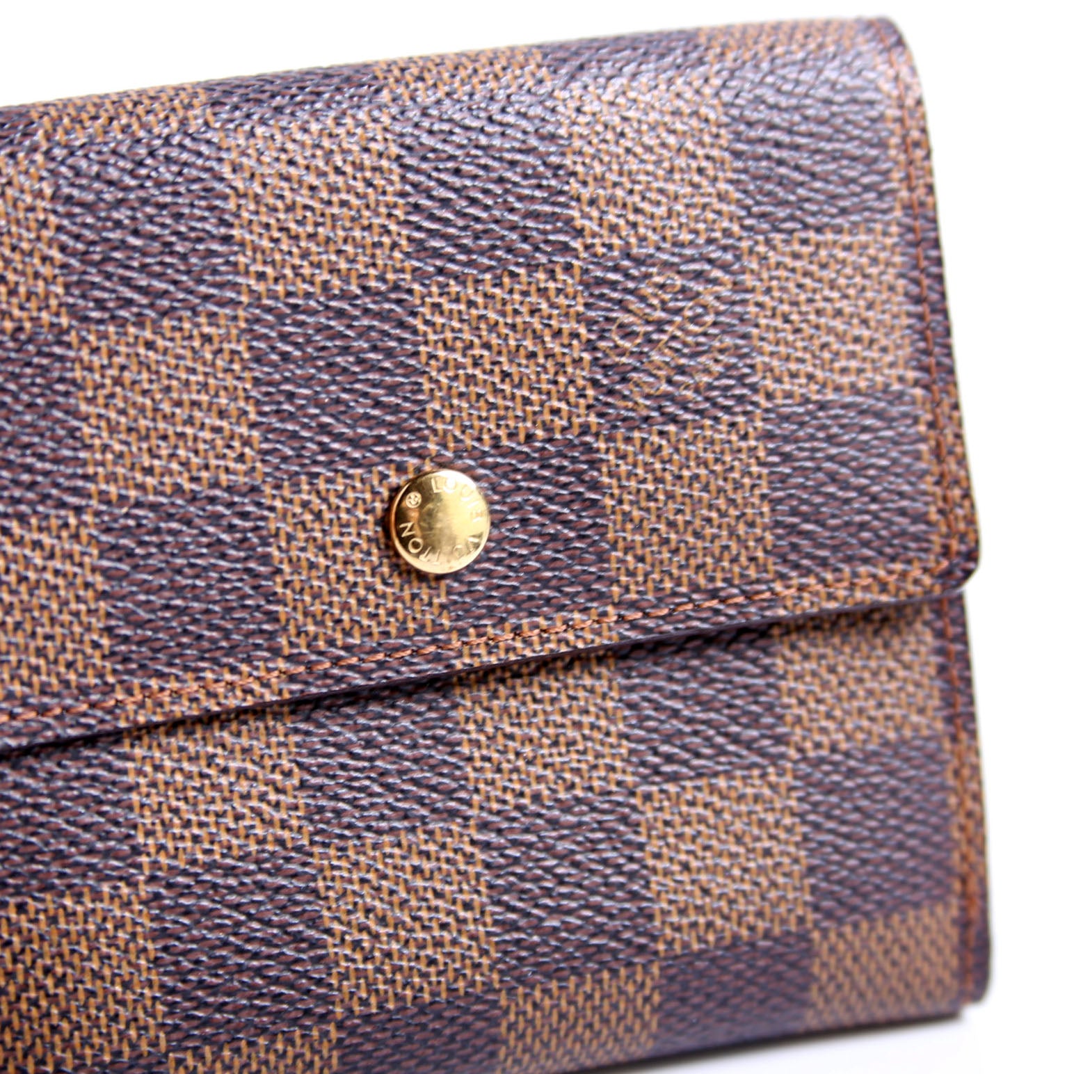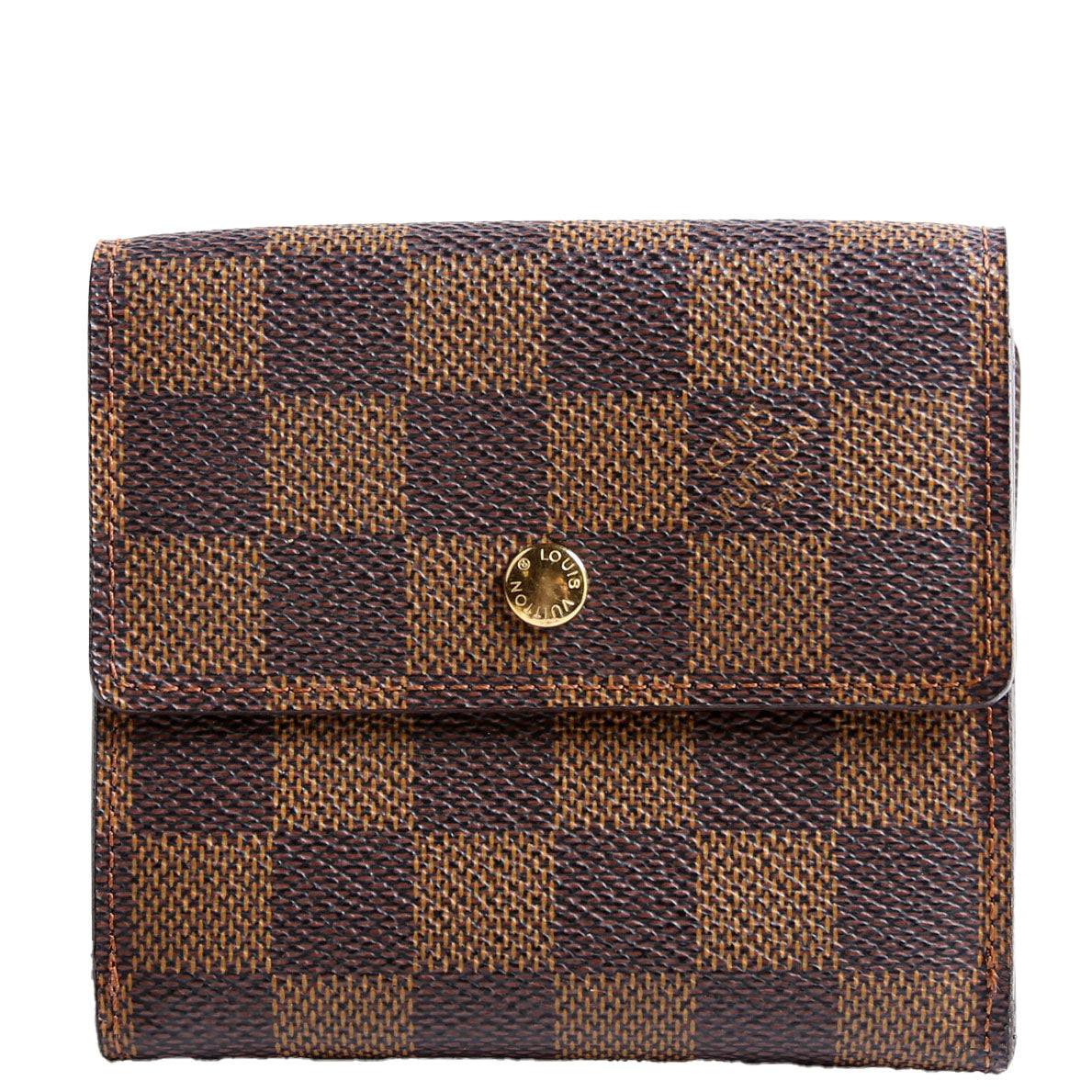 This pre-owned Louis Vuitton Elise Wallet is guaranteed 100% authentic. The exterior is in the classic Louis Vuitton Damier Ebene coated canvas.