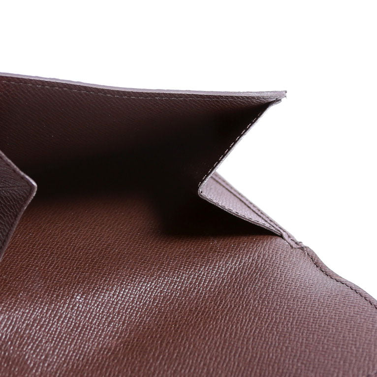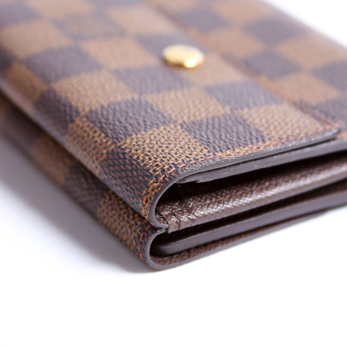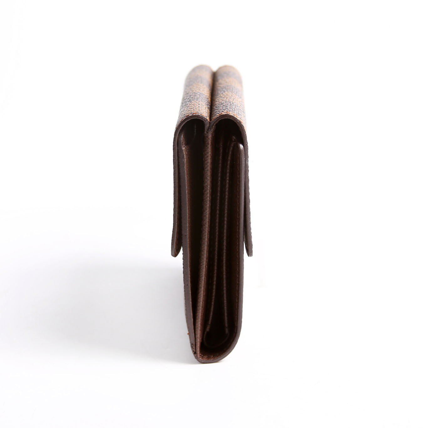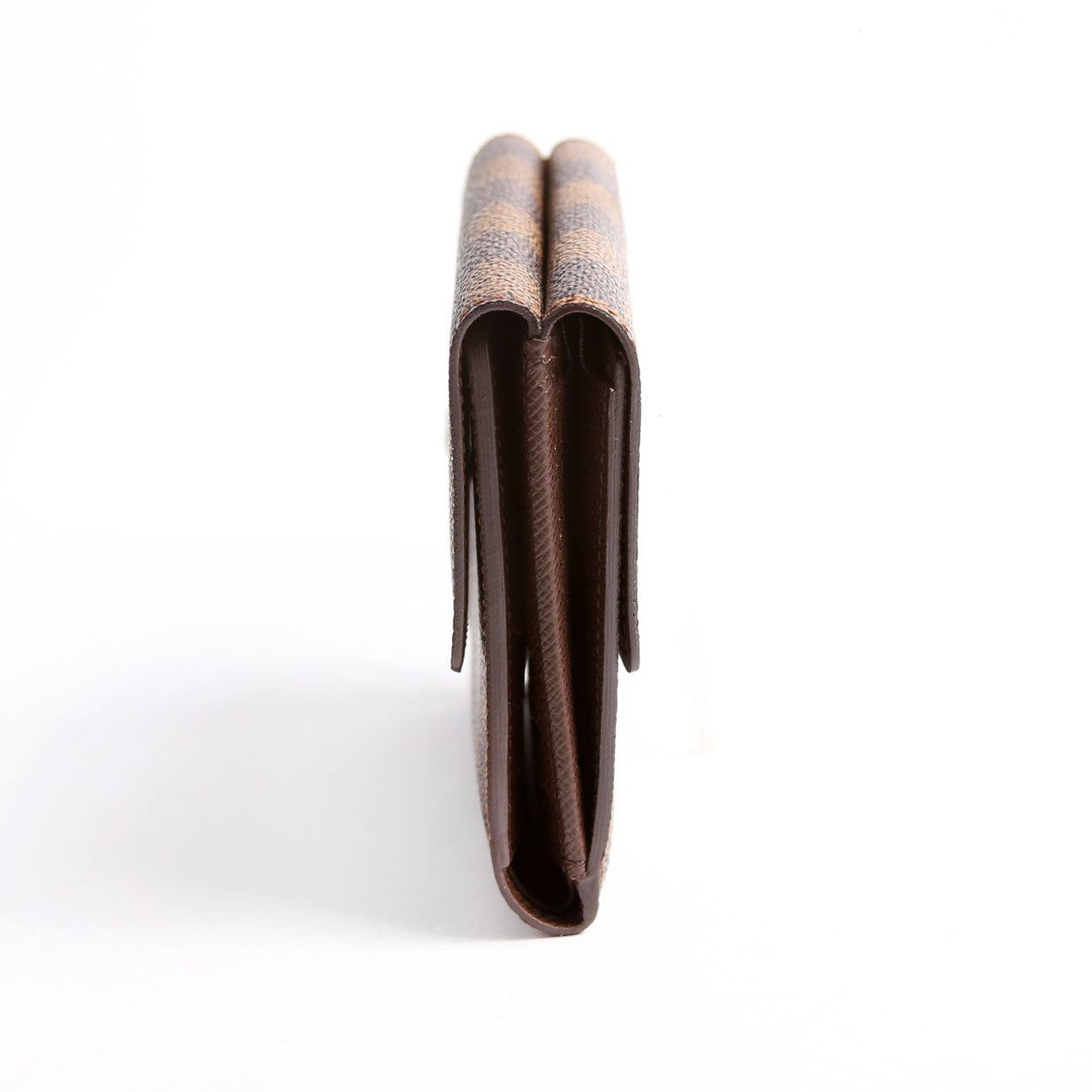 This pre-owned Louis Vuitton Elise Wallet is guaranteed 100% authentic. The exterior is in the classic Louis Vuitton Damier Ebene coated canvas.