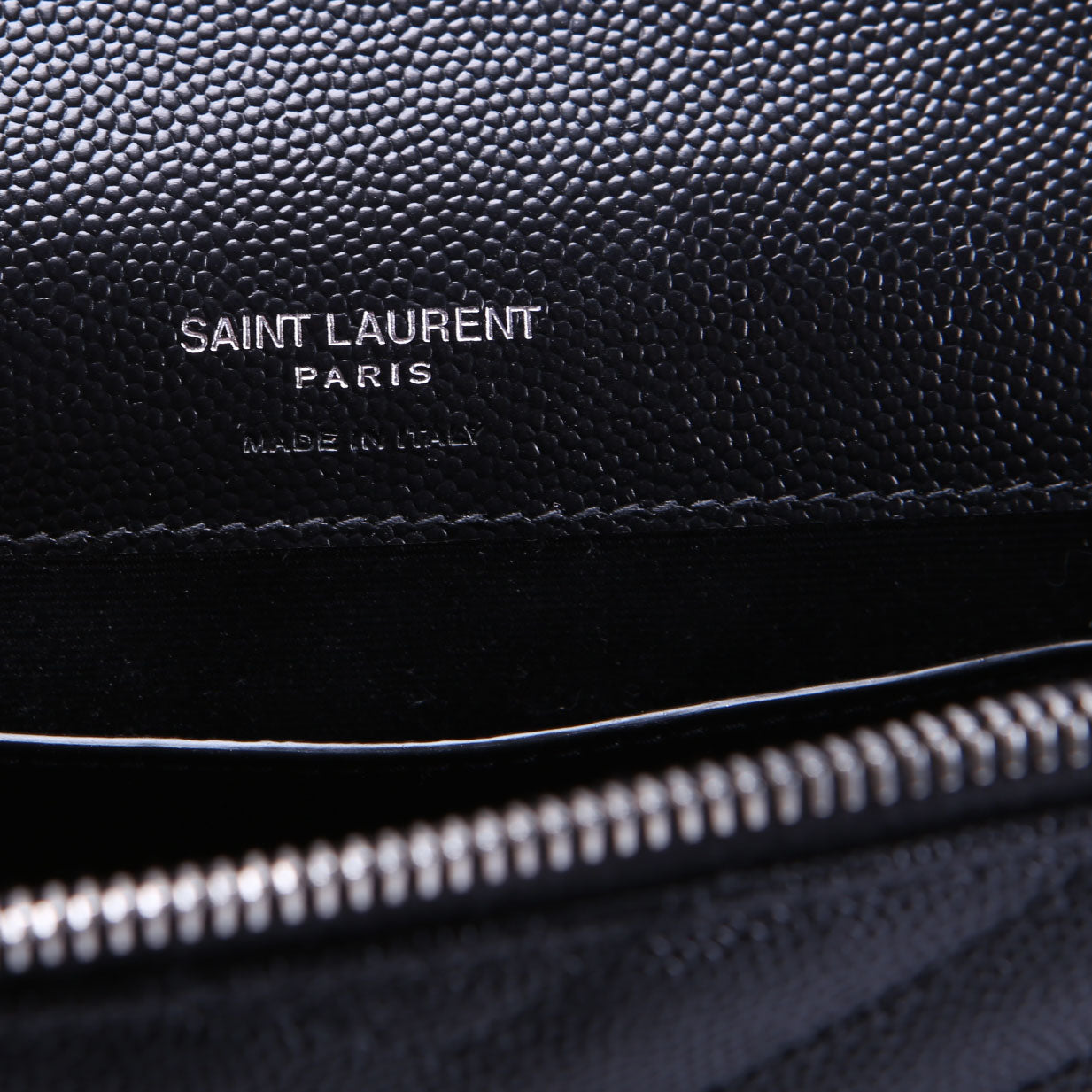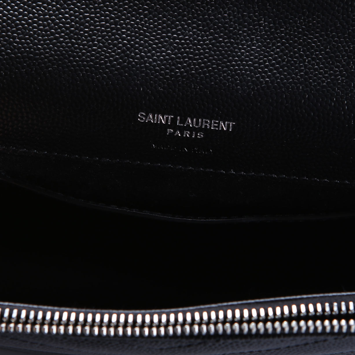 Interior: The interior shows light scuffs and marks throughout. It features one open pocket, and one zip closure pocket.