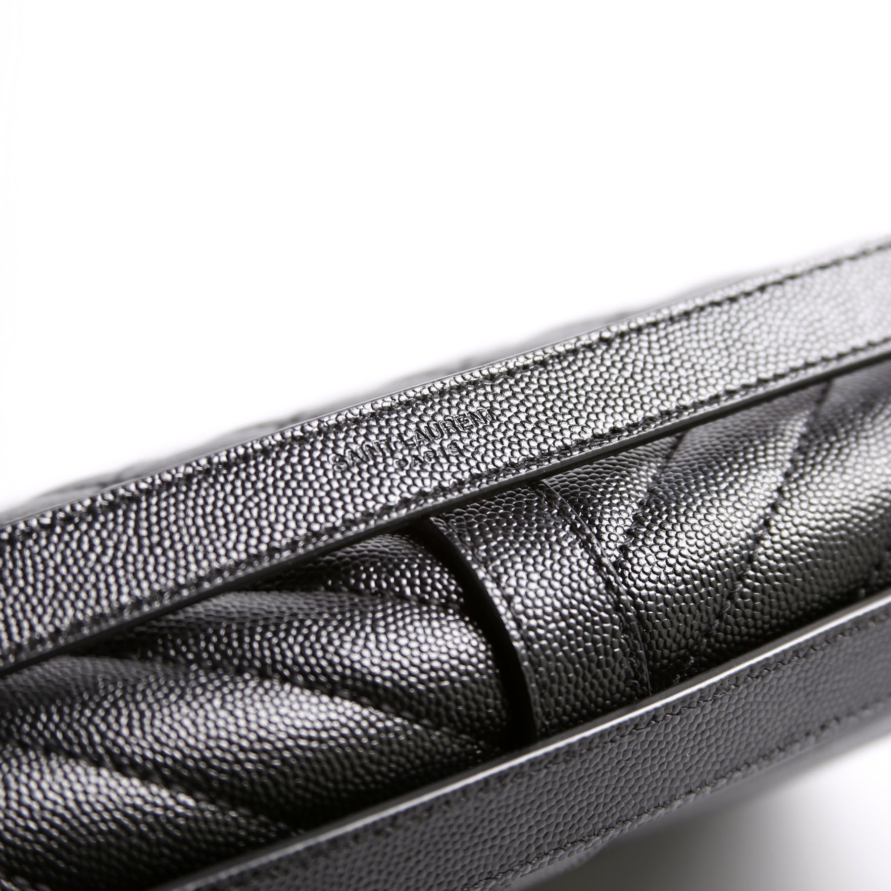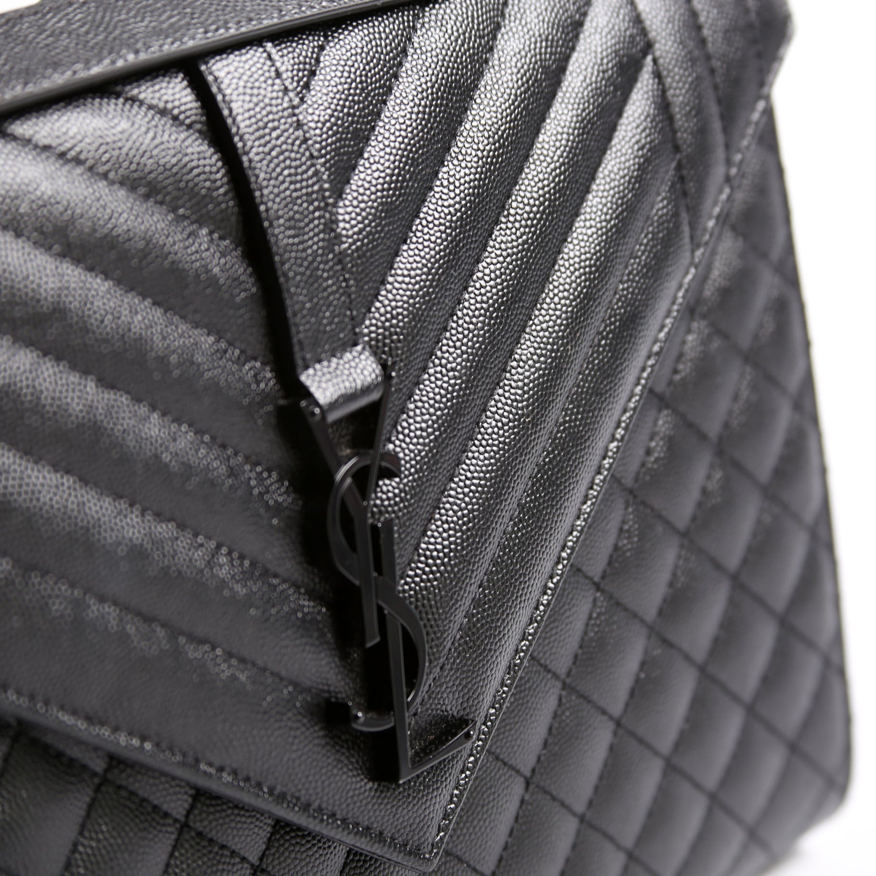 This pre-owned Saint Laurent Envelope Large Triquilt is guaranteed 100% authentic. The exterior is in the classic Yves Saint Laurent grained leather.