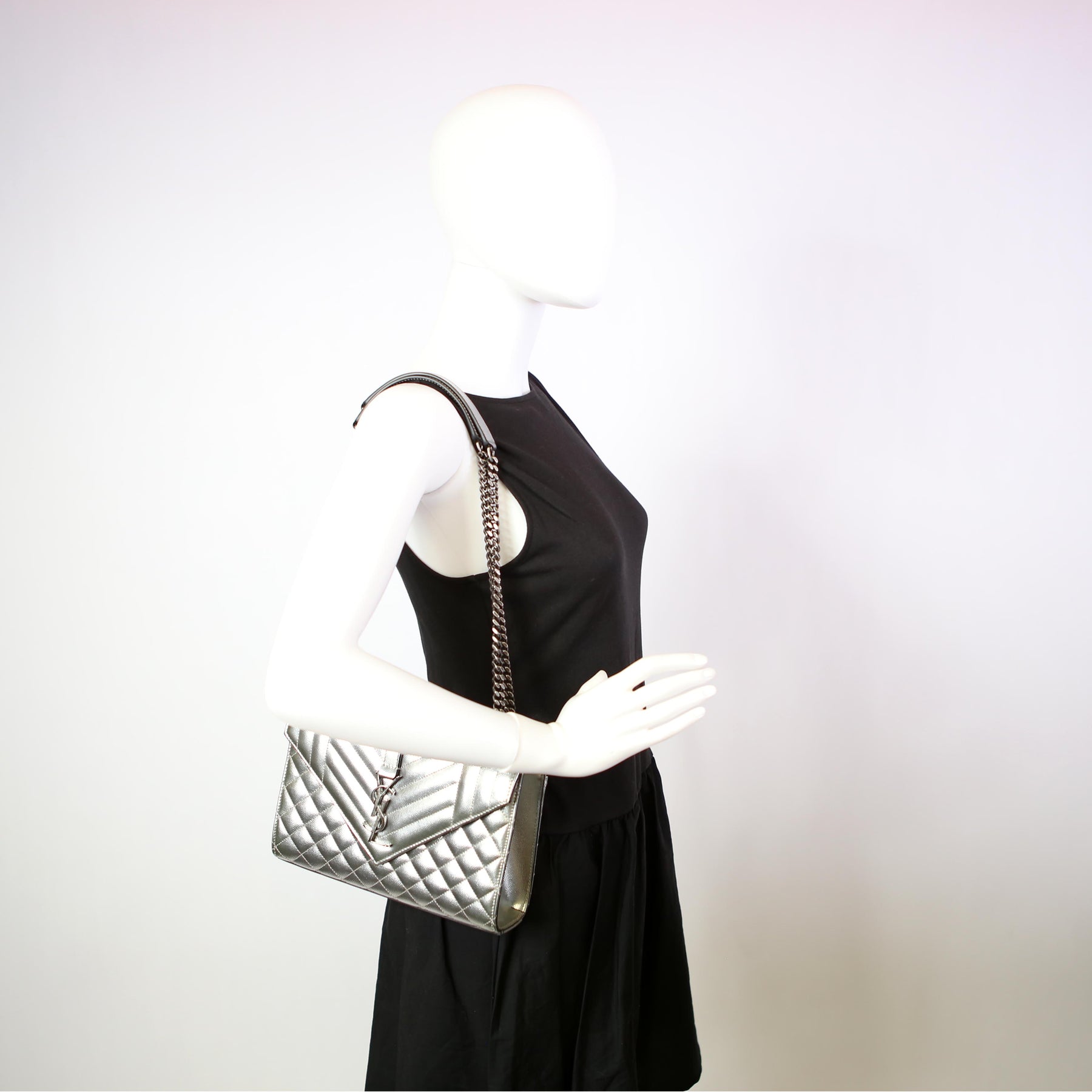 This pre-owned Saint Laurent Envelope Medium Tri-Quilt is guaranteed 100% authentic.