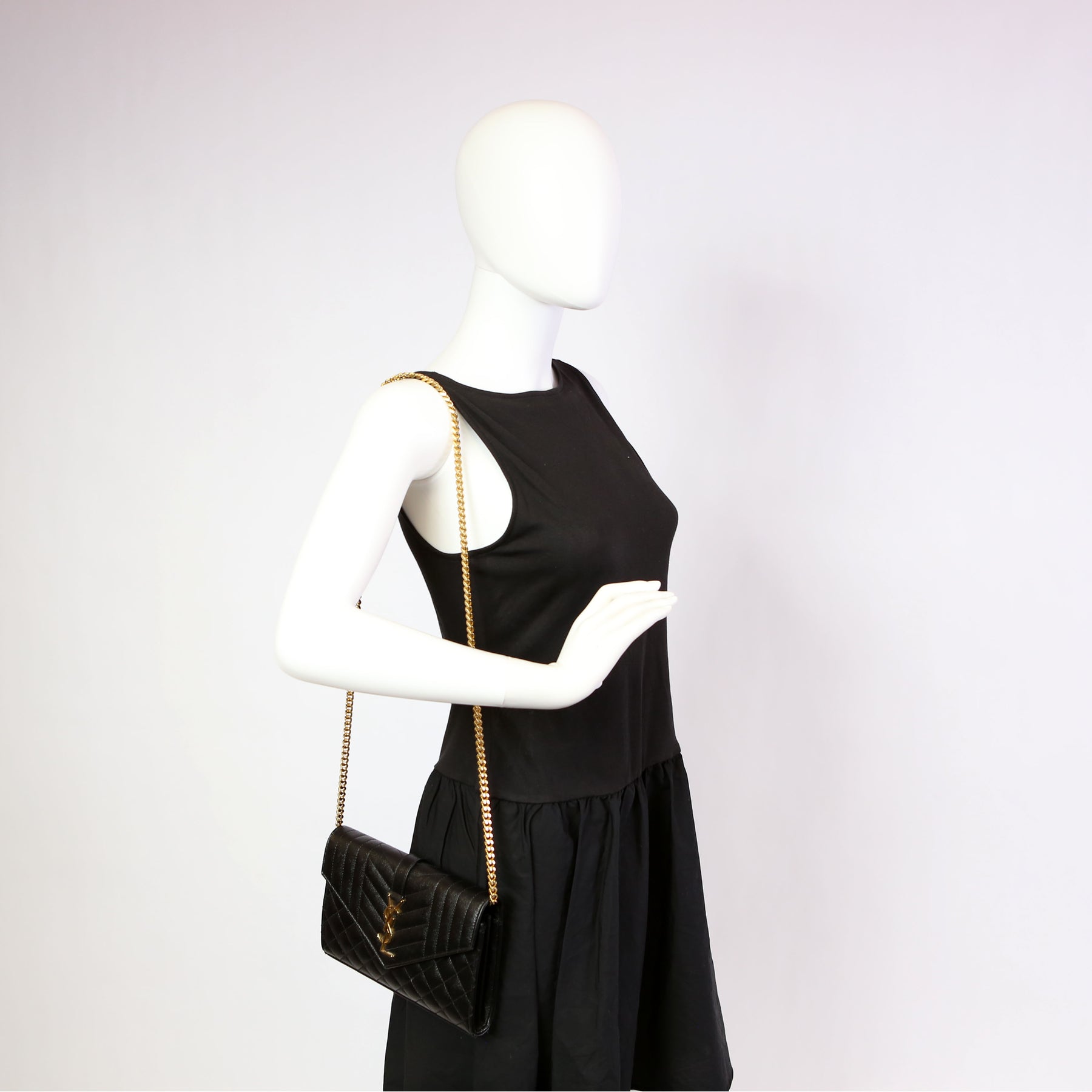 This pre-owned Saint Laurent Envelope Medium Tri-Quilt is guaranteed 100% authentic.