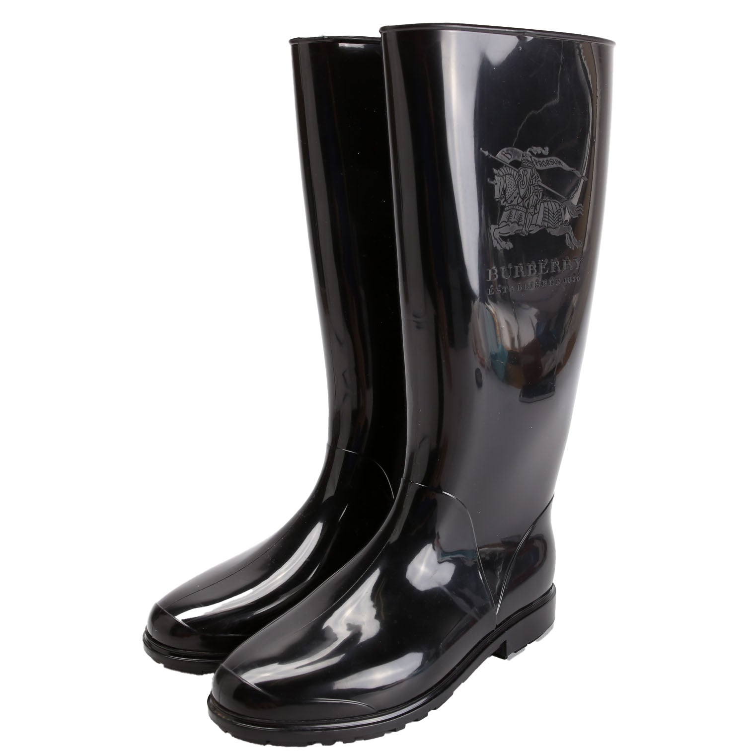 This pre-owned Burberry Equestrian Knight Rubber Rain Boots is guaranteed 100% authentic.