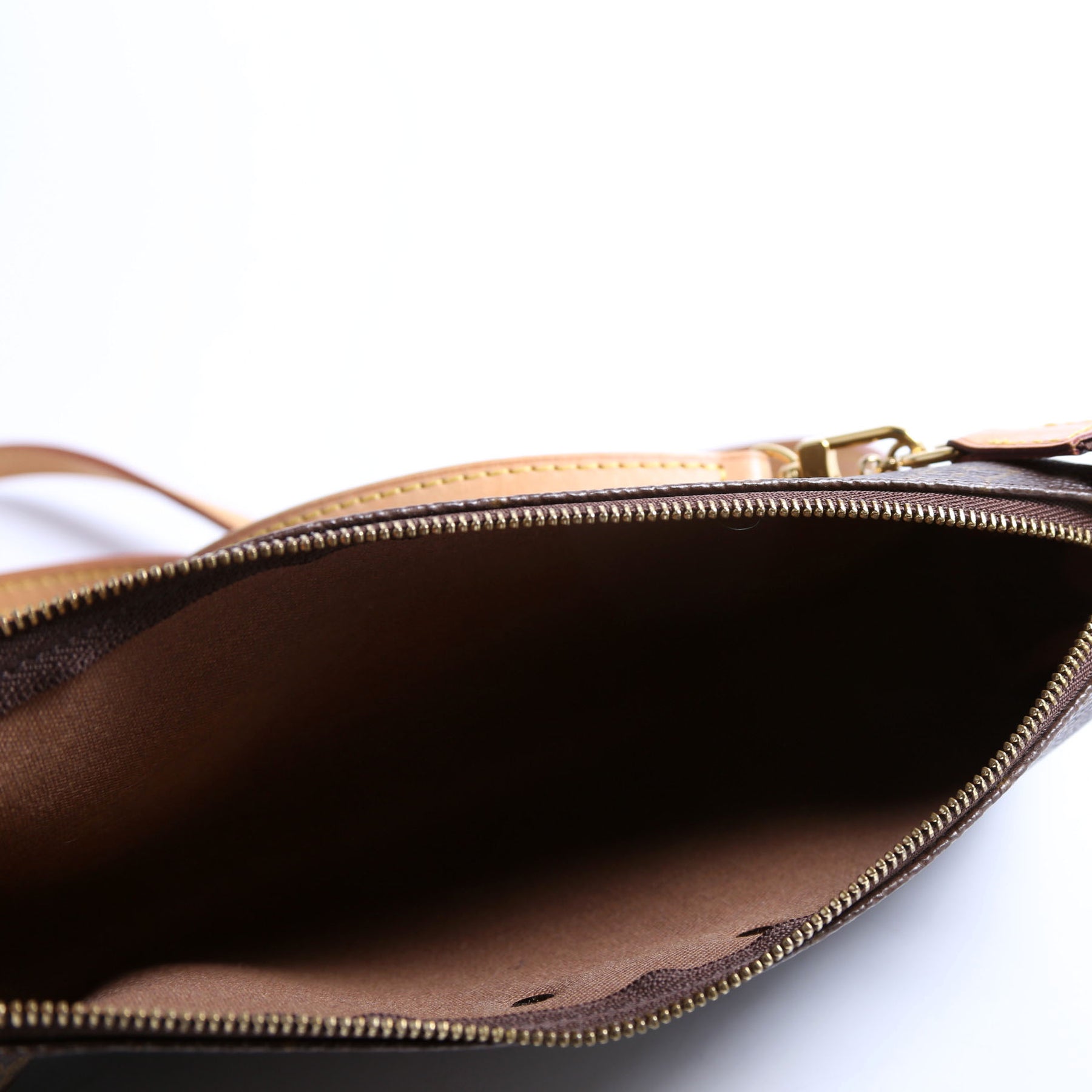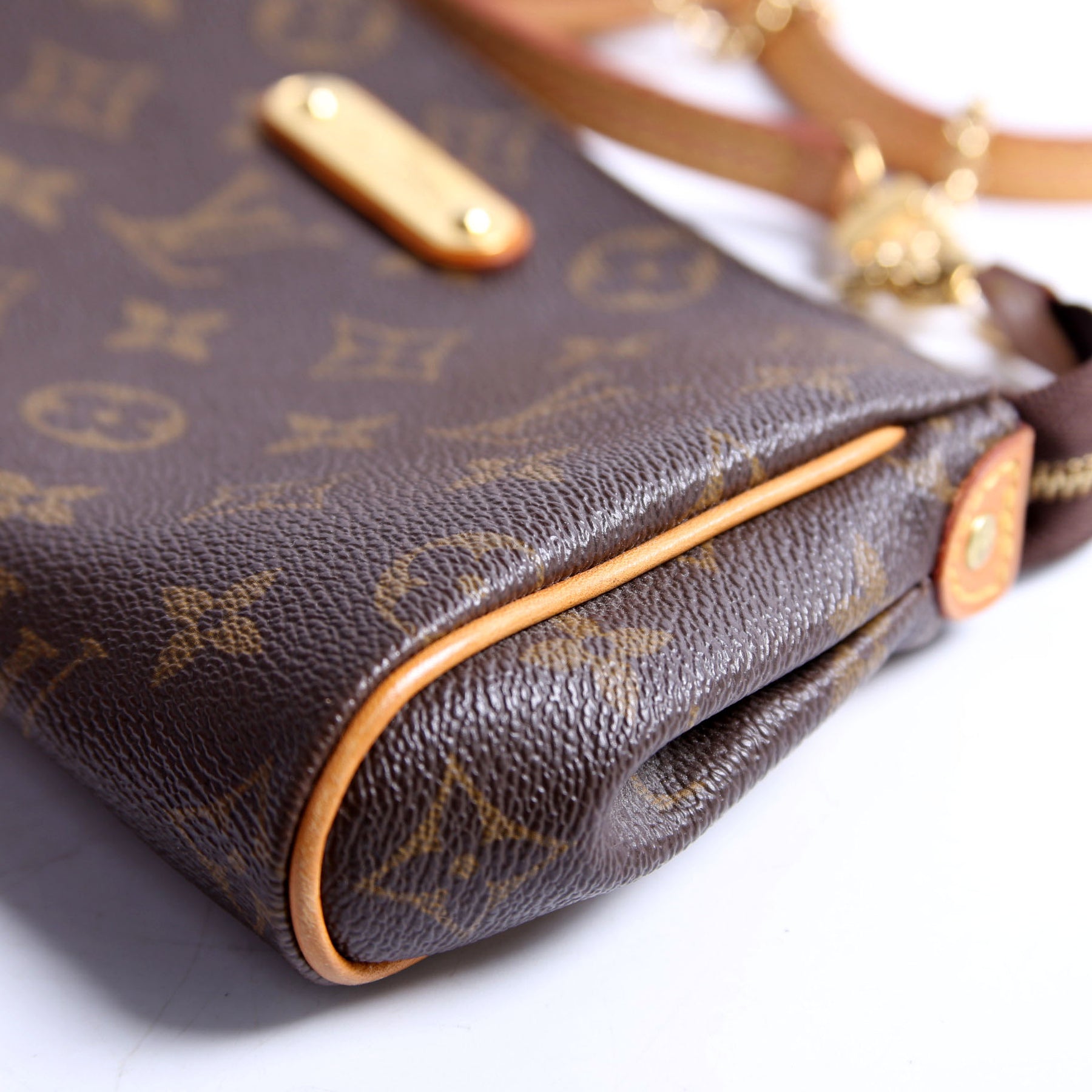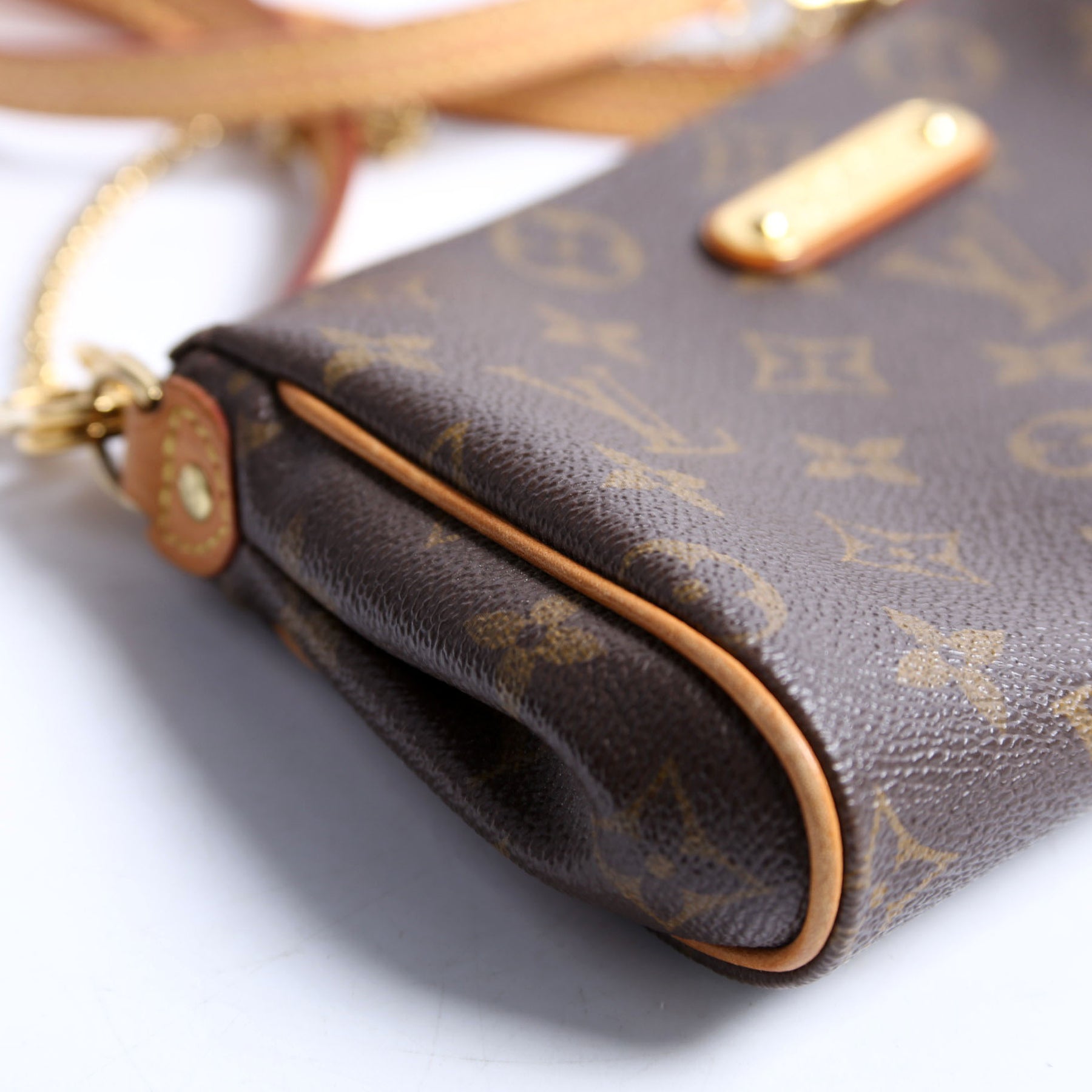This pre-owned Louis Vuitton Eva Clutch is guaranteed 100% authentic. The exterior is in the classic monogram coated canvas.